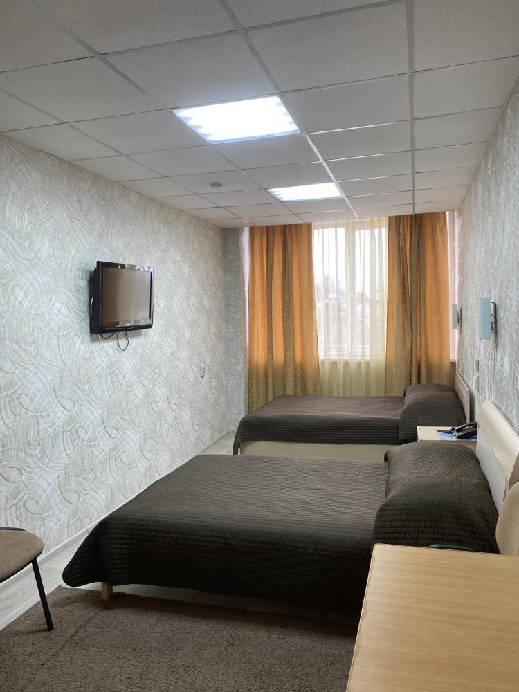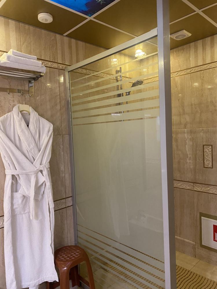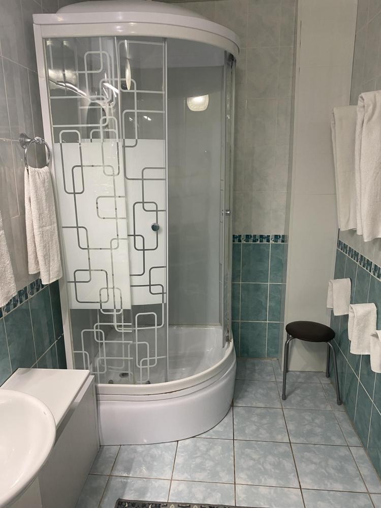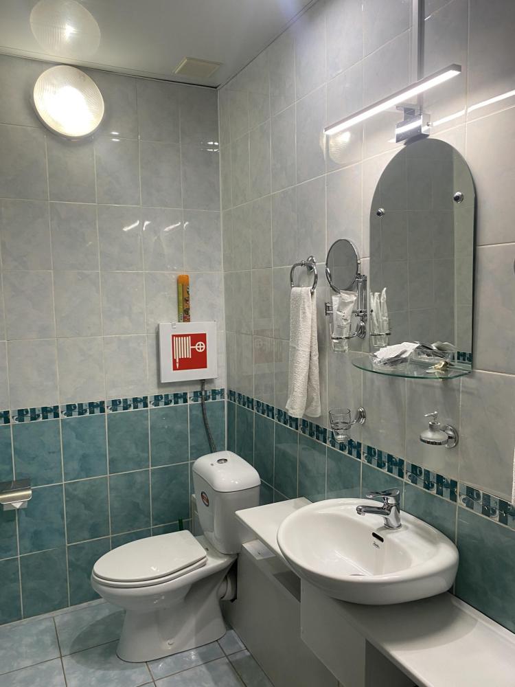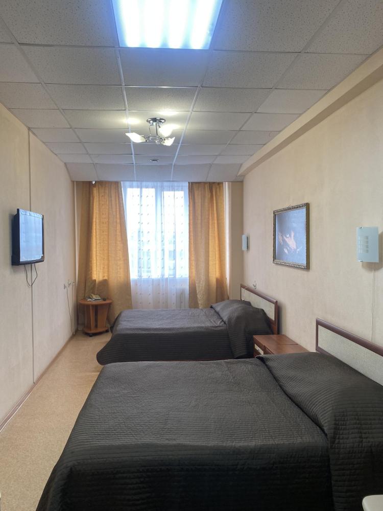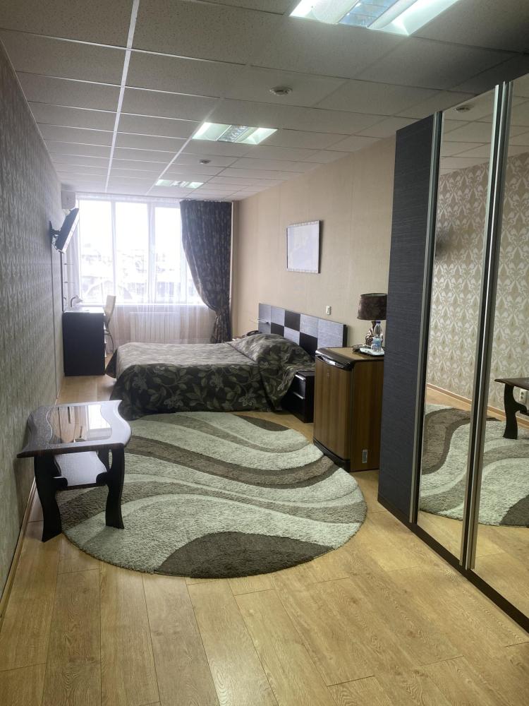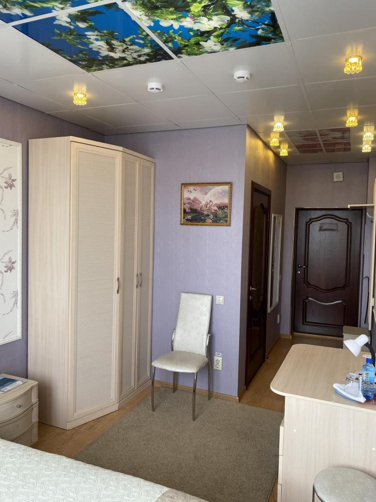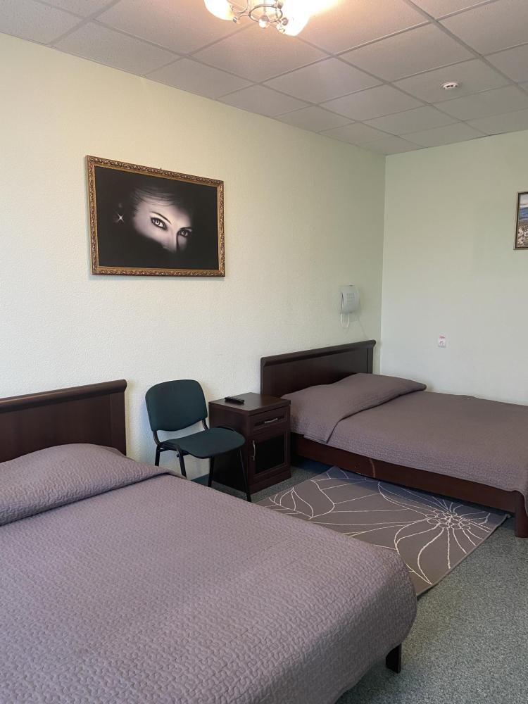 В номере: 2 кровати, 2 Тумбы, платяной шкаф, ЖК Телевизор, рабочий стол, журнальный столик, холодильник, санитарный узел с душевой кабиной, средства гигиены, набор полотенец, фен.