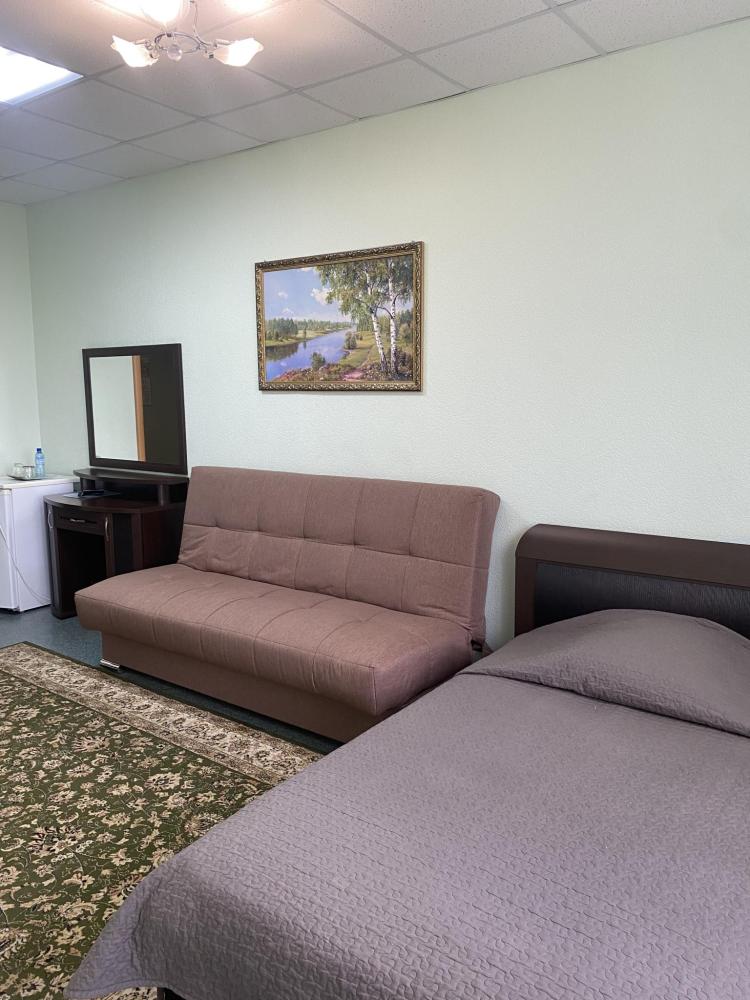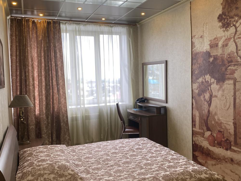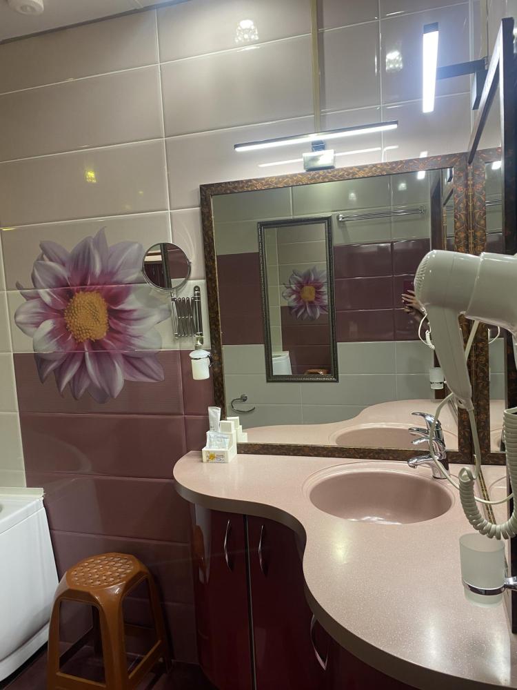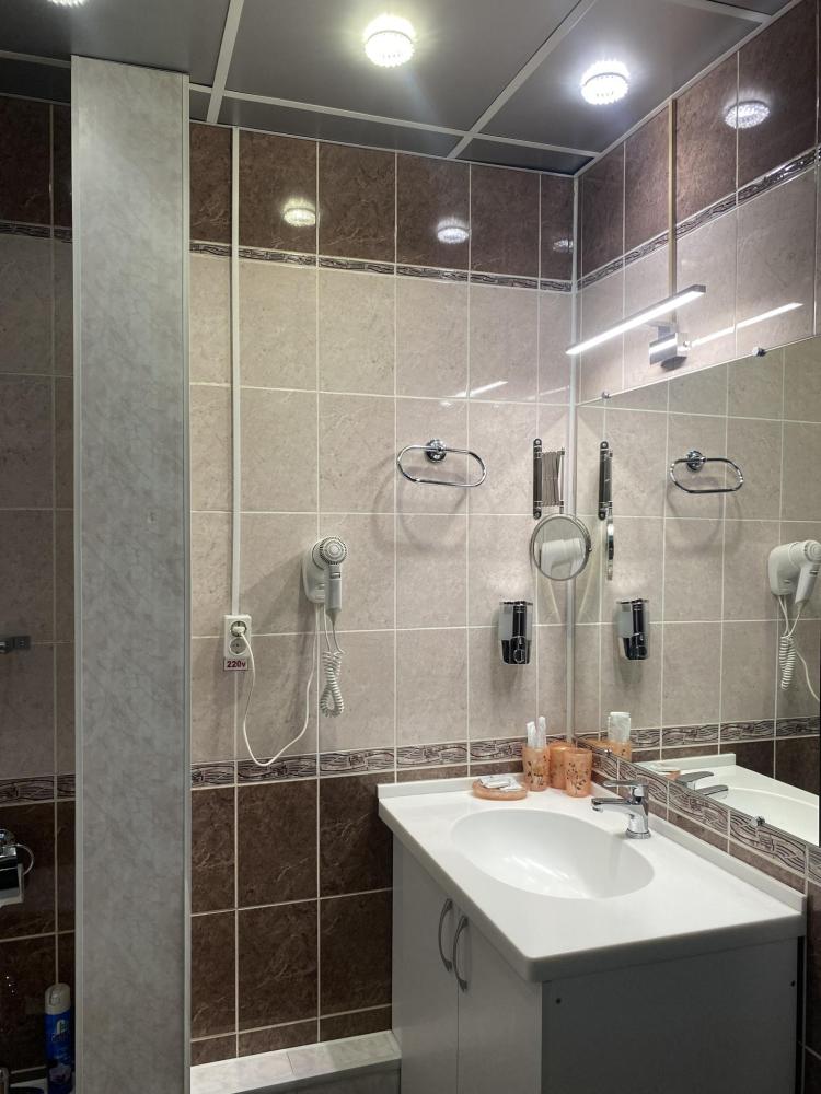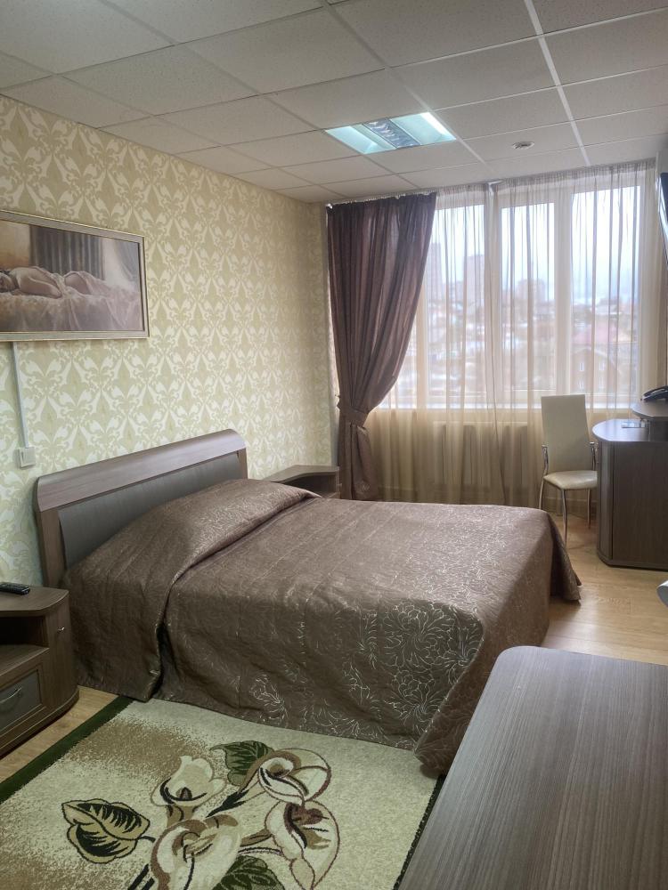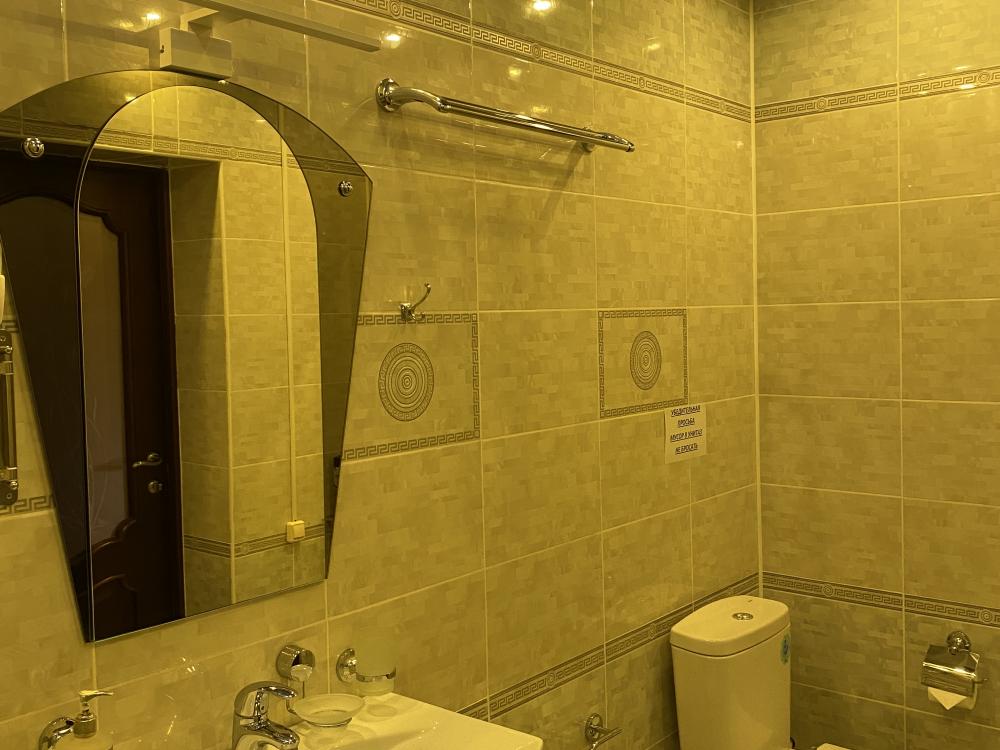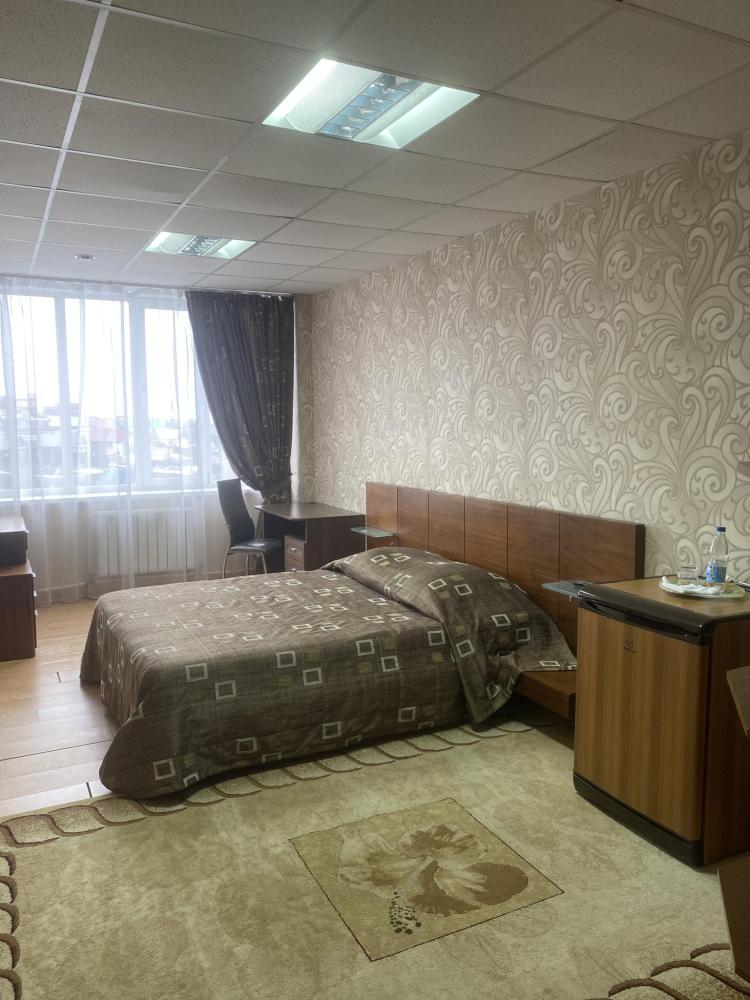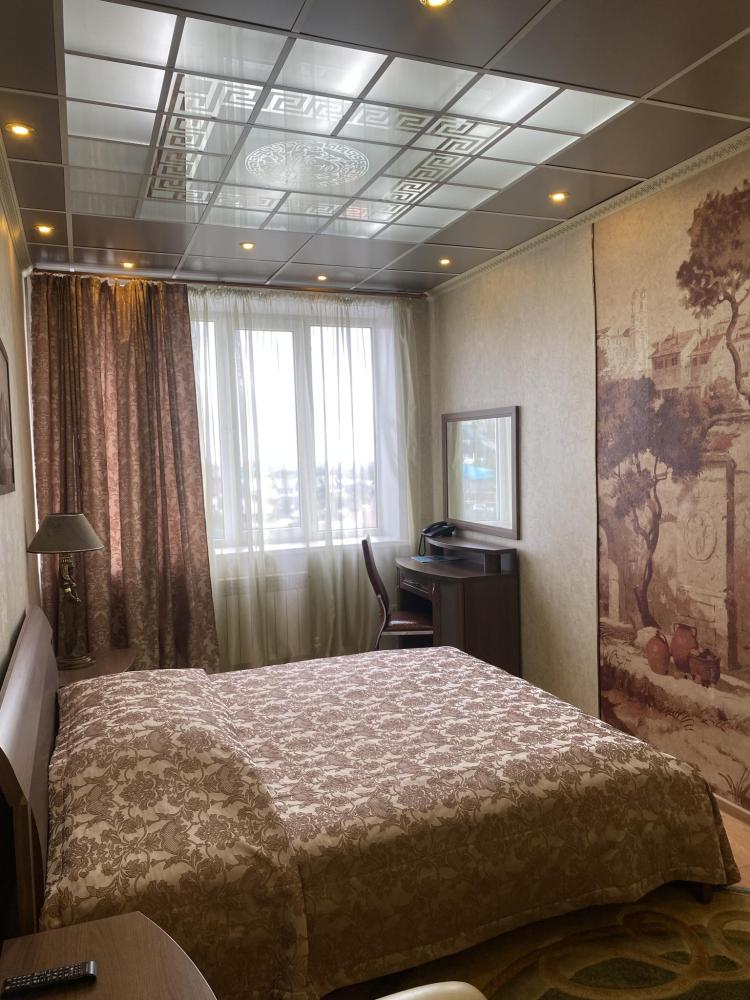 В номере: 2 кровати, 2 Тумбы, платяной шкаф, ЖК Телевизор, рабочий стол, журнальный столик, холодильник, санитарный узел с душевой кабиной, средства гигиены, набор полотенец, фен.