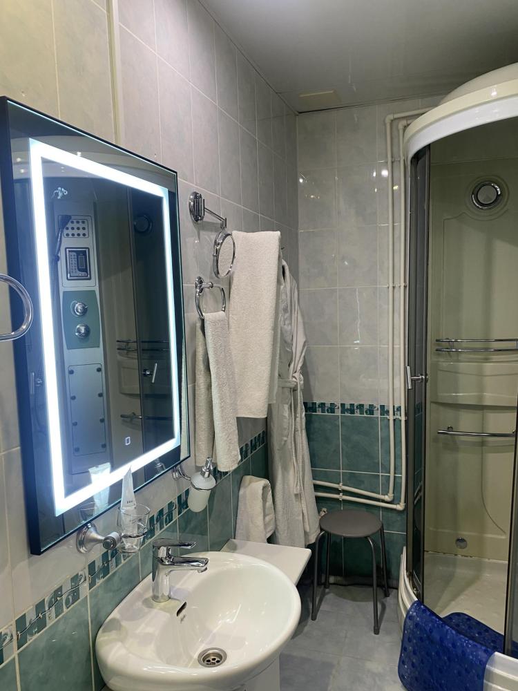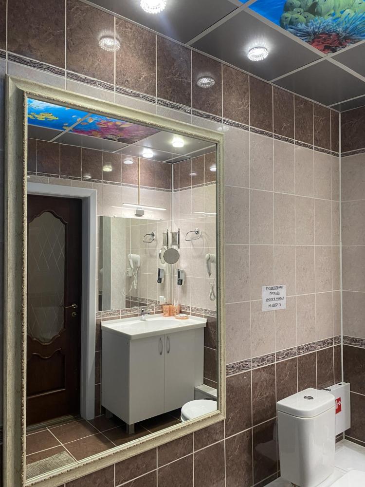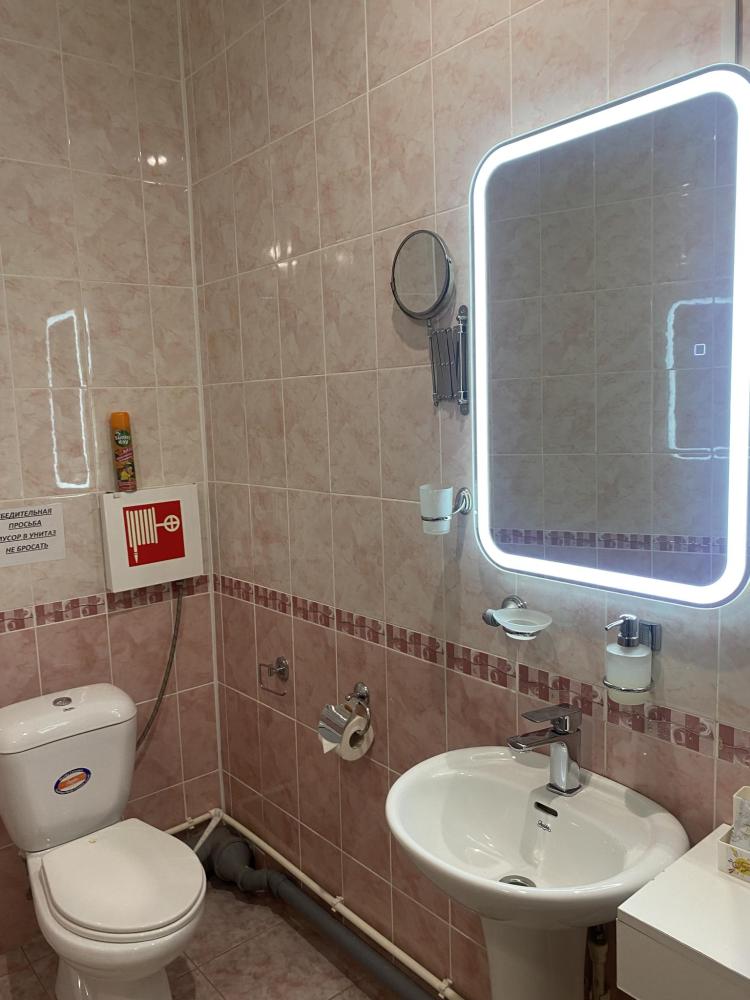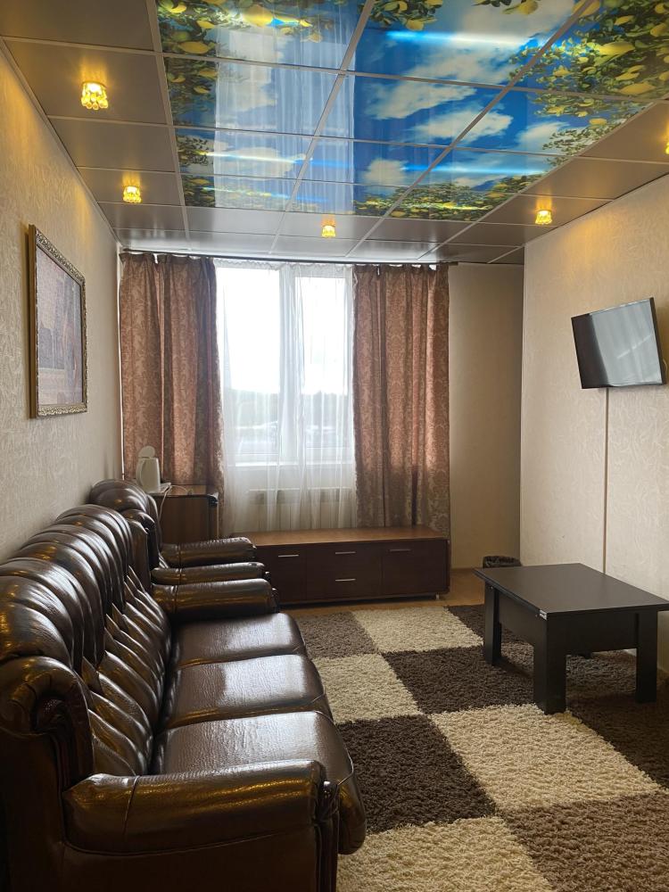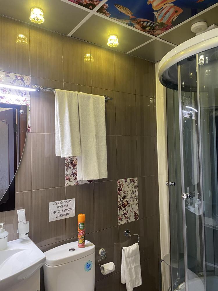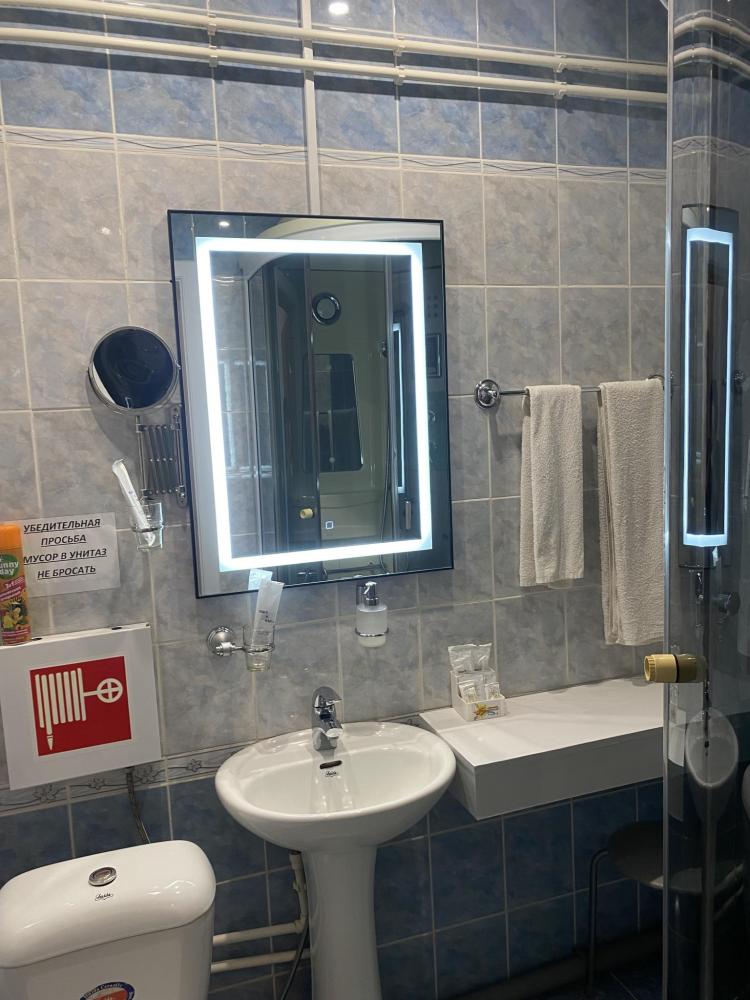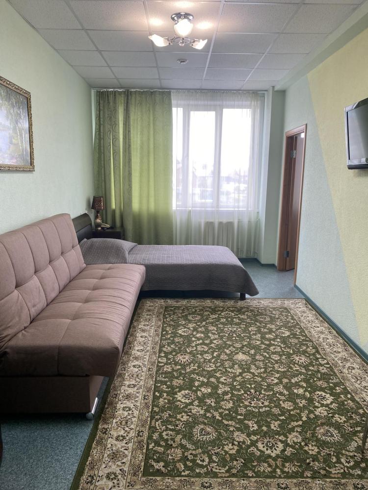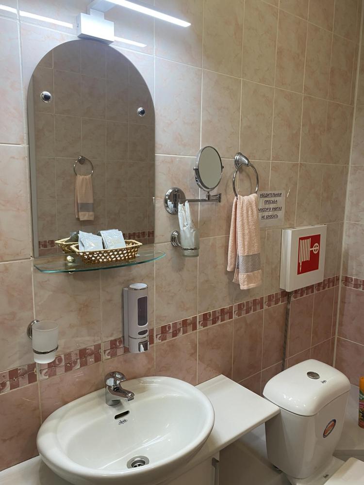 В номере: 2 кровати, 2 Тумбы, платяной шкаф, ЖК Телевизор, рабочий стол, журнальный столик, холодильник, санитарный узел с душевой кабиной, средства гигиены, набор полотенец, фен.