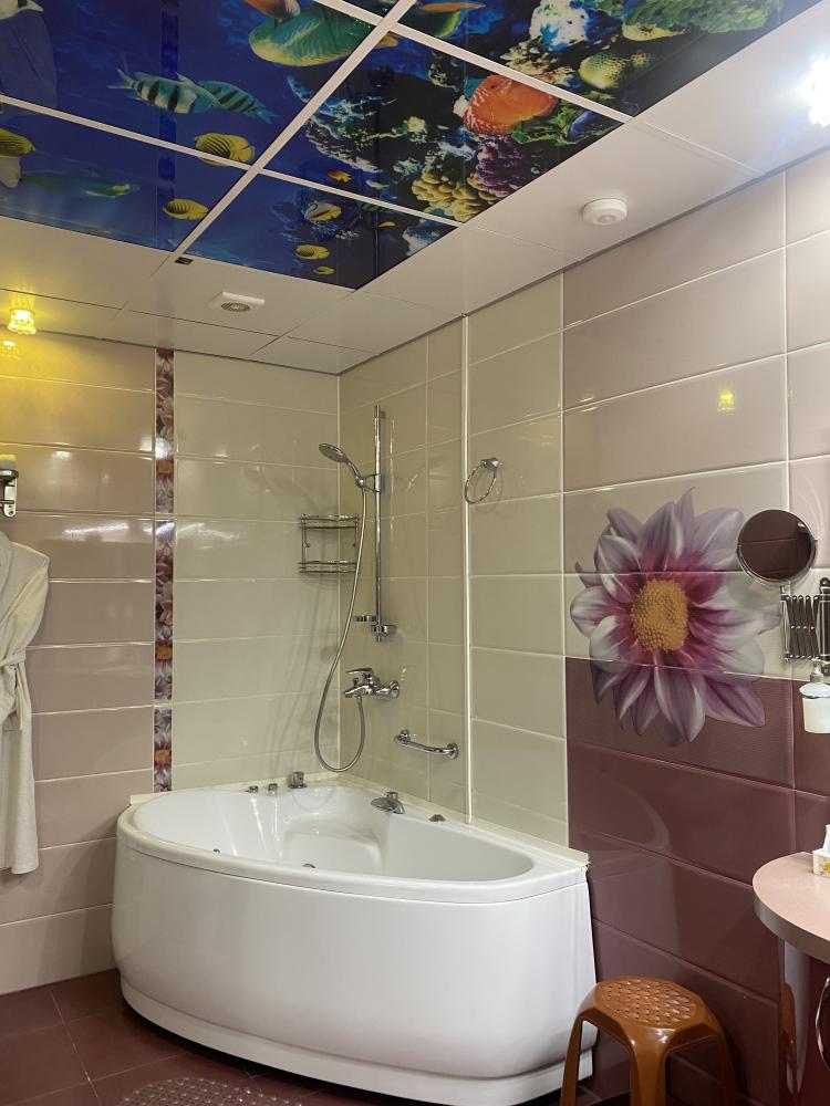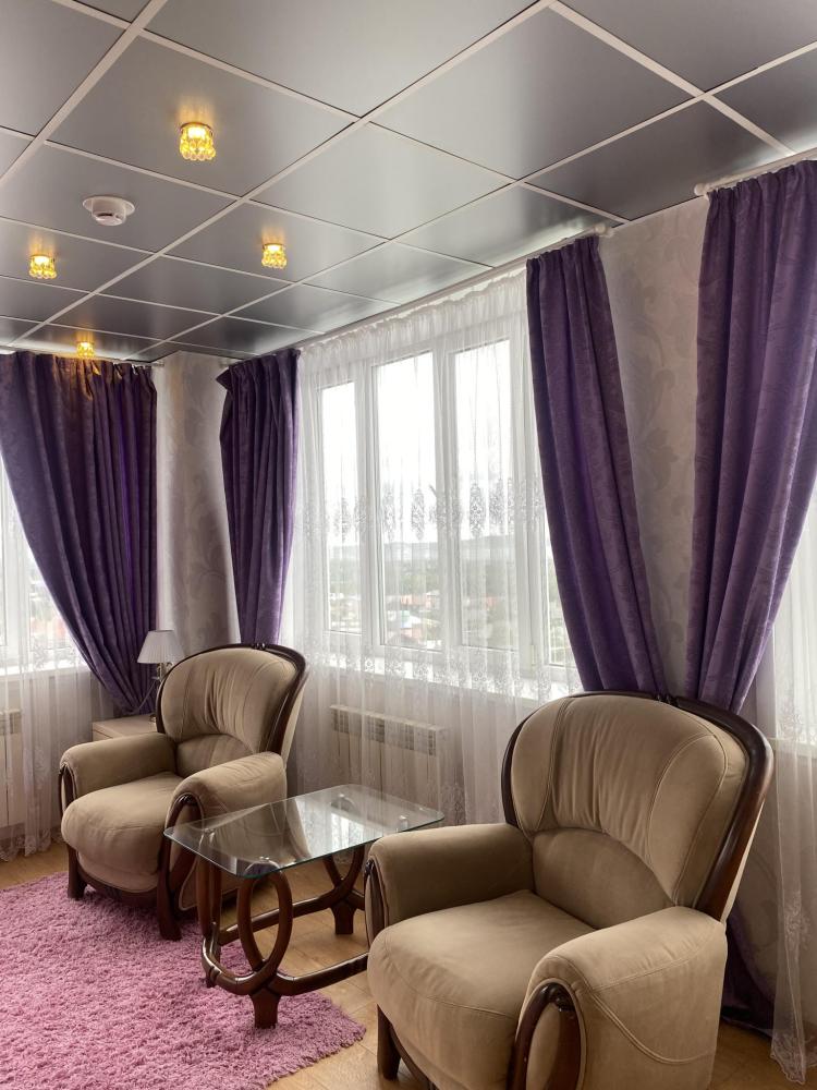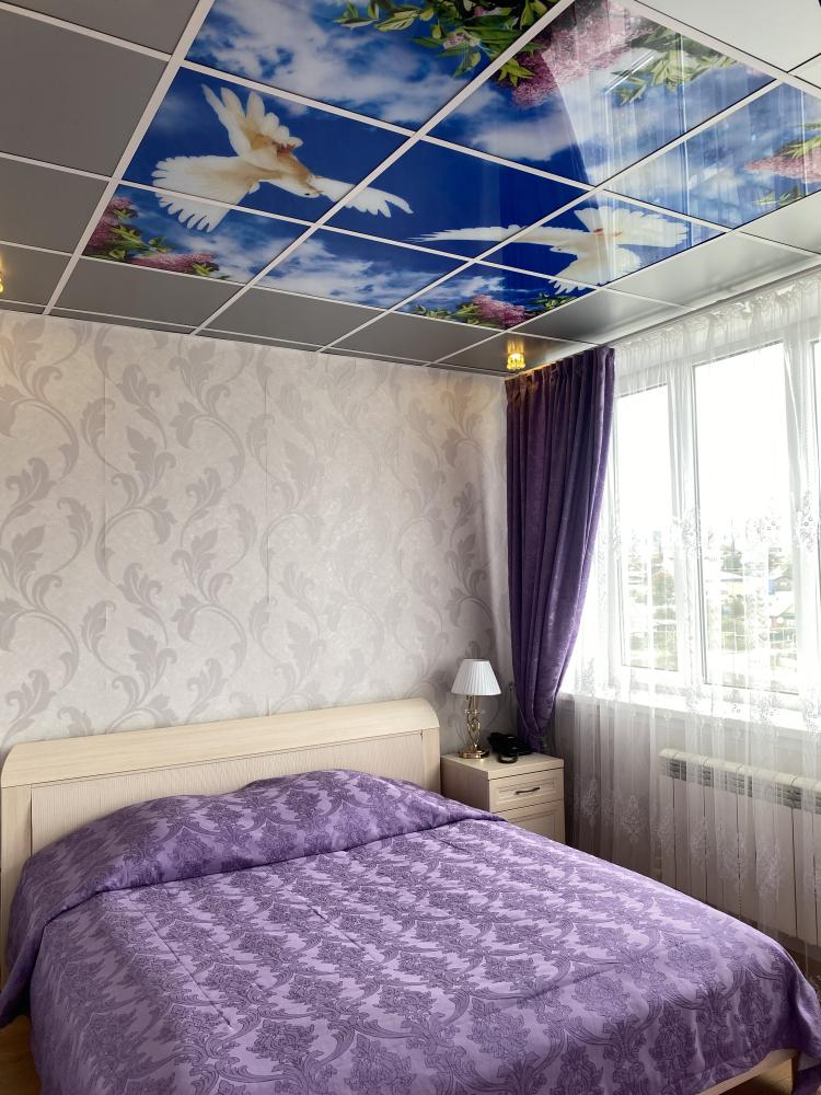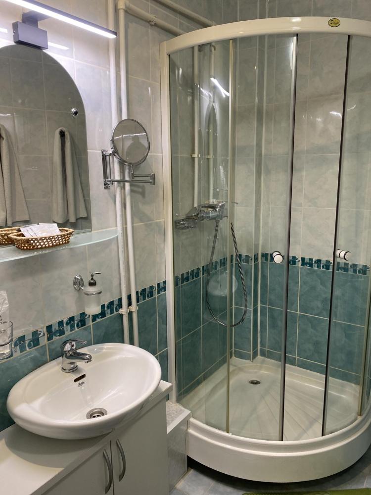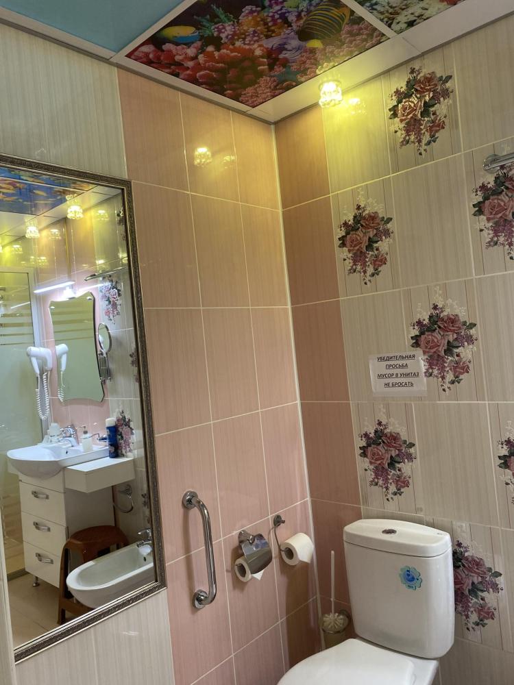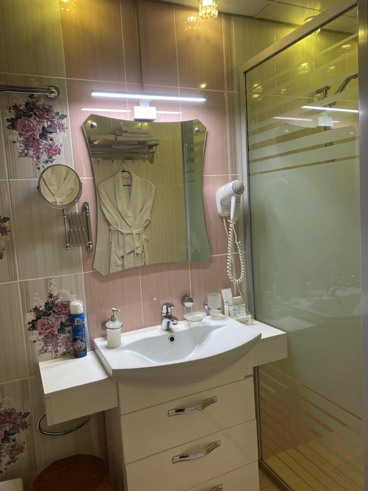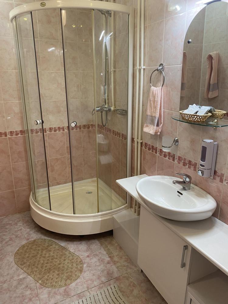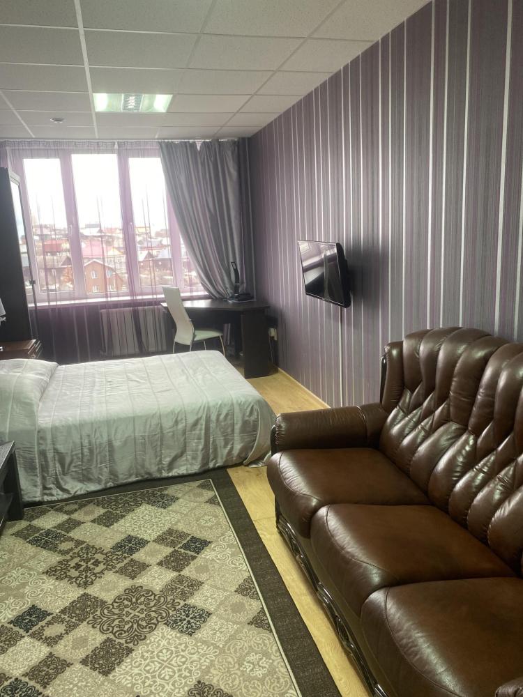 В номере: 2 кровати, 2 Тумбы, платяной шкаф, ЖК Телевизор, рабочий стол, журнальный столик, холодильник, санитарный узел с душевой кабиной, средства гигиены, набор полотенец, фен.