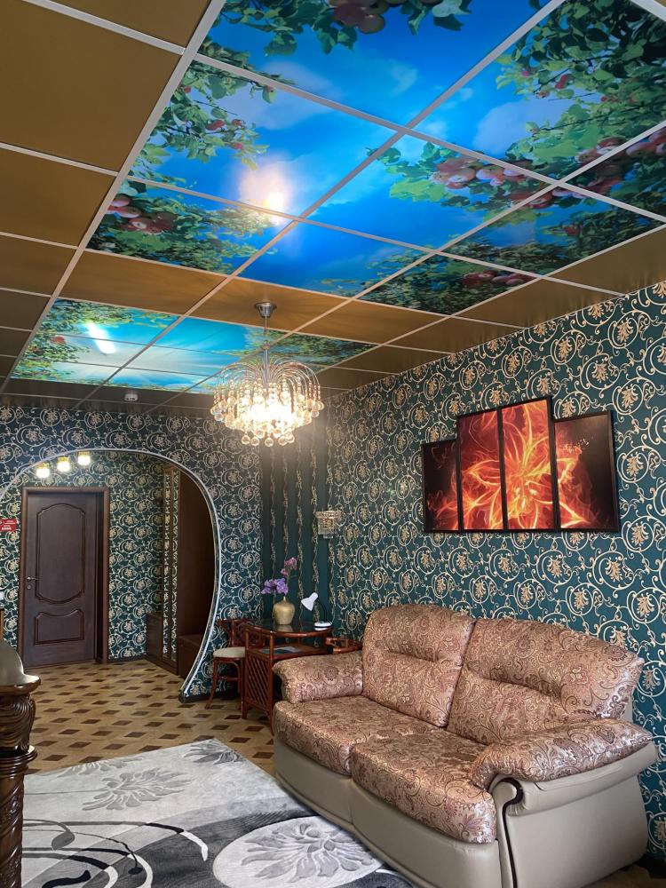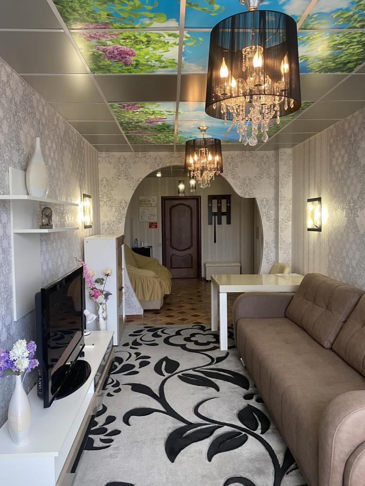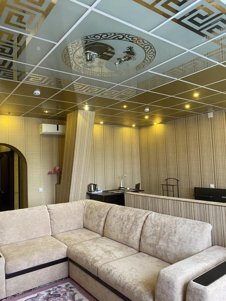 В номере:1 двуспальная и 1 односпальная кровати, 3 Тумбы, 2 Светильника, рабочий стол, платяной шкаф, туалетный столик, 2 Стула, диван, прихожая, 2 ЖК Телевизора, санитарный узел с душевой кабиной, холодильник, средства гигиены, набор полотенец, фен. Завтрак включен в стоимость номера.