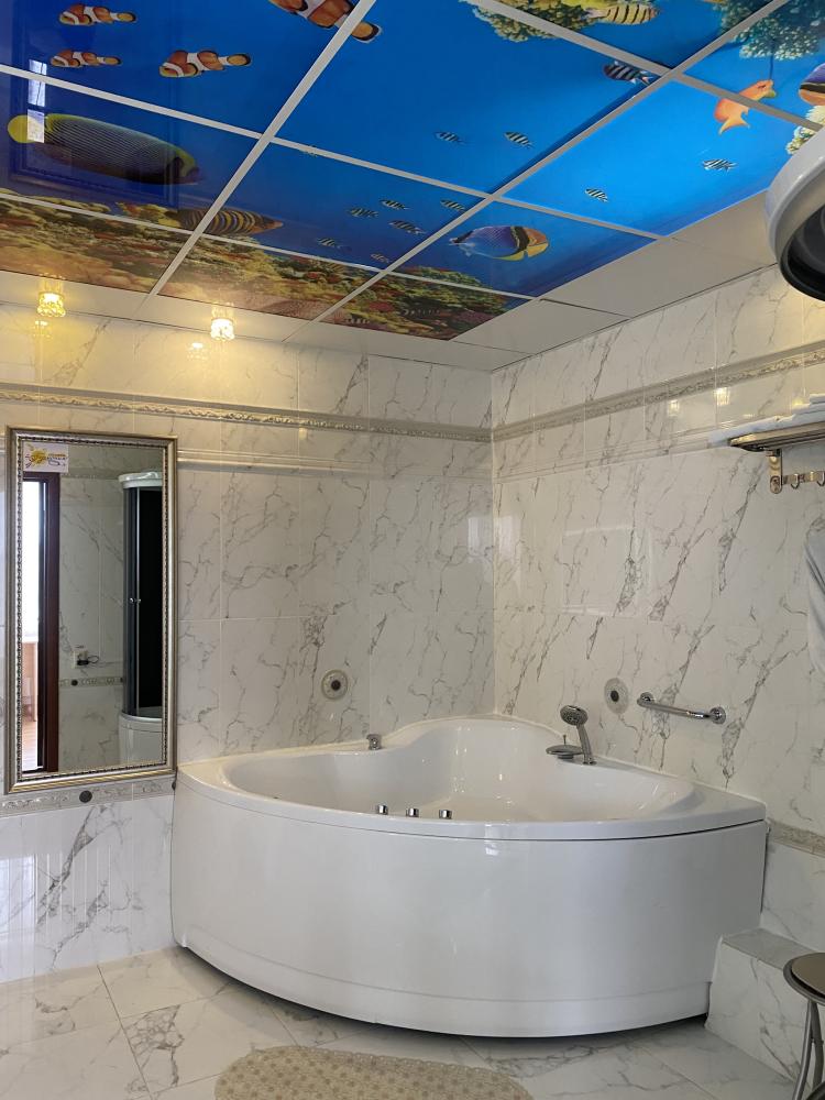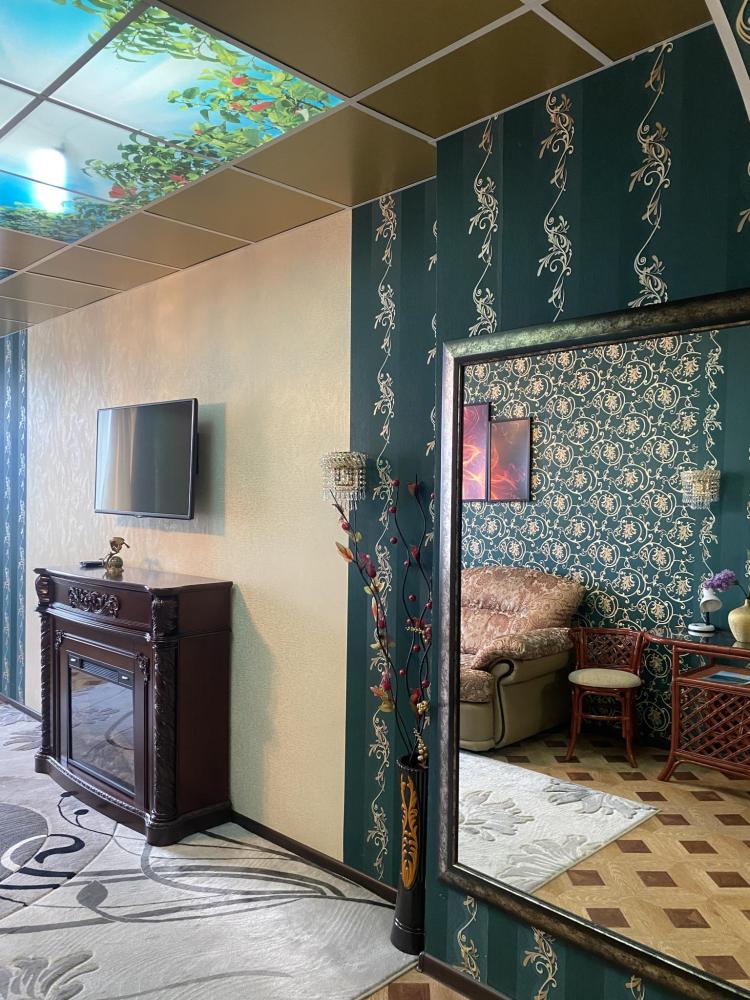 В номере: 2 кровати, 2 ЖК Телевизора, шкаф, кресло, диван, 2 Кондиционера, камин, холодильник, санитарный узел с душевой кабиной, средства гигиены, набор полотенец, фен, халат, тапочки.