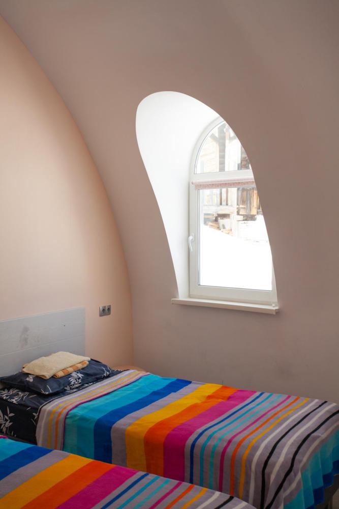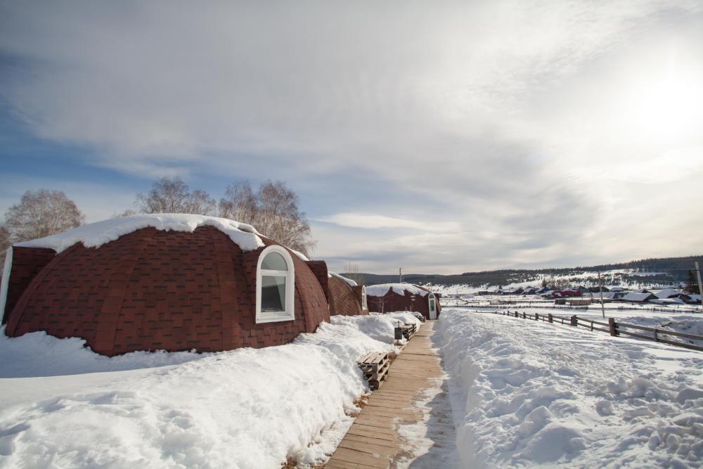 2-местный номер в купольном доме. Комната в сказочном уютном домике с двумя общими санузлами и душем с горячей водой. В номере двуспальная кровать, постельное белье выдается. В домике есть электрочайник и посуда. В стоимость включен завтрак и ужин. Есть отопление и Wi-Fi.