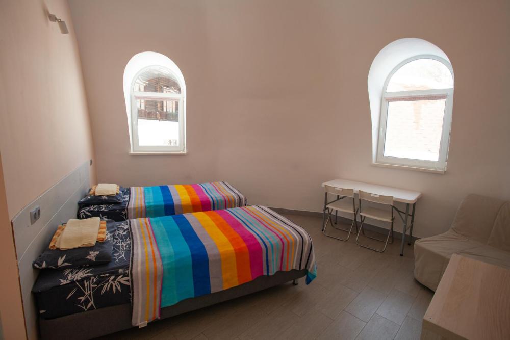 Номер стандарт с 1 двуспальной или 2 односпальными кроватями,удобства для гостей общие,есть место для хранения вещей.