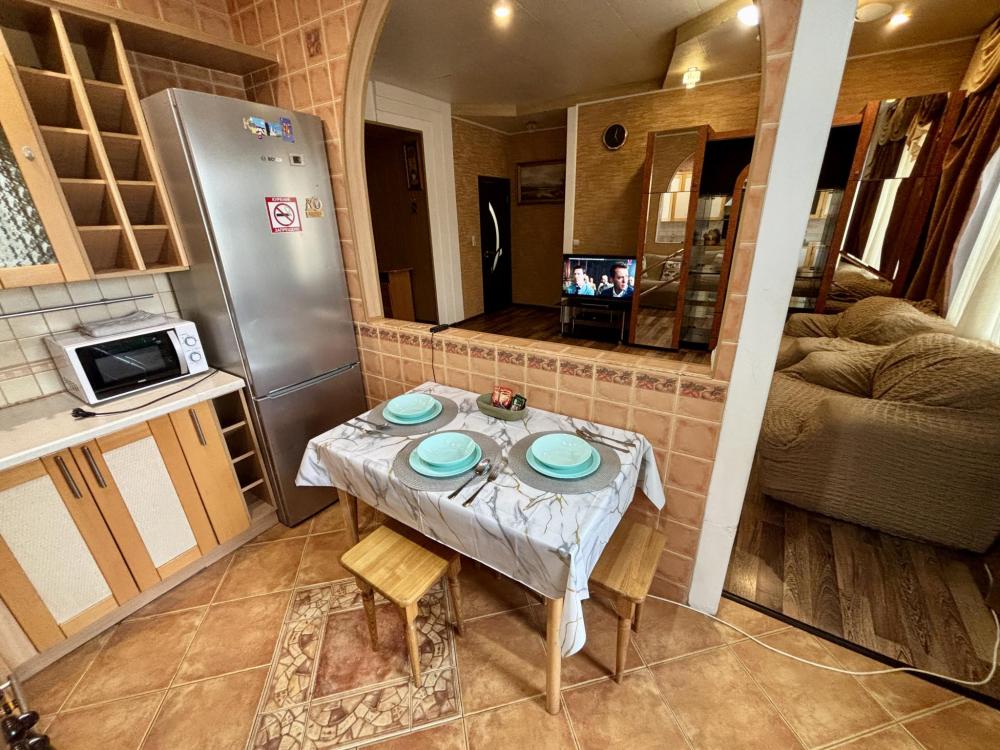 Сдаём большую квартиру с шикарным ремонтом в посёлке Калининец. ВНИМАНИЕ! Квартира сдаётся только адекватным и спокойным жильцам! Возможно размещение максимум до 4 гостей. Курить в квартире категорически ЗАПРЕЩЕНО Для командировочных и юр. лиц возможна оплата по безналу, отчётные документы и чеки с QR-кодом Квартира укомплектована всем необходимым для комфортного проживания: + Плазменный Телевизор и Wi-Fi + Двуспальная кровать 160 на 200 + Раскладной диван + Есть возможность поставить раскладушку по предворительному согласованию + Одеяла и подушки + Постельное бельё и полотенца + Микроволновка и чайник + Холодильник + Газовая плита + Посуда и техника для приготовления разных блюд + Стиральная машина и сушилка + Гладильная доска, утюг и фен А также шаговая доступность до военной части В наших квартирах есть правила, которые не сложно соблюдать: - У нас не курят внутри (любые виды курения) - Не больше 4-х человек - Вечеринки и громкий шум запрещен, мы очень любим наших соседей - К сожалению, с питомцами у нас нельзя Стандартный заезд в наши квартиры с 15:00, а стандартный выезд до 12:00, однако по возможности мы постараемся подстроимся под ваши планы, для этого напишите пожалуйста ваши пожелания по времени Наша компания не является отелем, поэтому мы информируем вас, что белье сушится непосредственно в квартире. Бронируя квартиру, вы подтверждаете отсутствие претензий по этому вопросу. Мы ценим ваше понимание и сотрудничество в поддержании уюта и порядка в нашем пространстве Будем рады видеть вас!