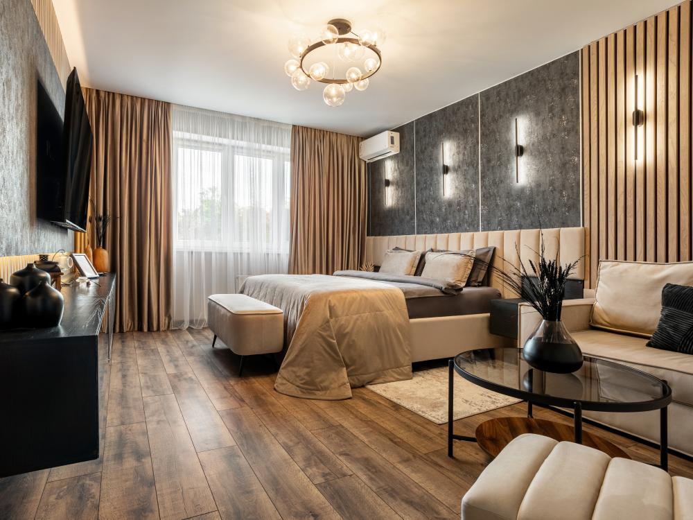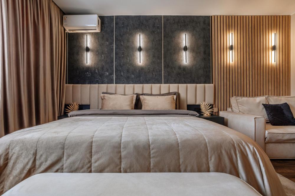 Апартаменты класса люкс «Аmber Luxe» в новом доме с автономным отоплением в самом центре города с панорамными окнами. Вид из панорамных окон в пол будут радовать вас утренними рассветами и вечерними закатами! В апартаментах к вашим услугам: Двуспальная кровать 160/200. Диван-кровать 140х200, кресло-кровать 90х200. Вся бытовая техника: Тв-смарт в гостиной и обеденной зоне, стиральная машина, посудомоечная машина, кофемашина, микроволновая печь, фен, утюг, гладильная доска, камин, Wi-fi. Мини-бар (платно). Постельное белье/полотенца премиум-качества. Все средства личной гигиены, тапочки и халаты предоставляются. Чай/кофе предоставляются. Тапочки, халаты 100% хлопок. Портьеры блэк-аут не пропускают свет. Освещение в разных уровнях. Свечи. Бокалы для различных видов спиртных напитков. Ведро для льда для охлаждения бутылки. Атмосферно 100%.