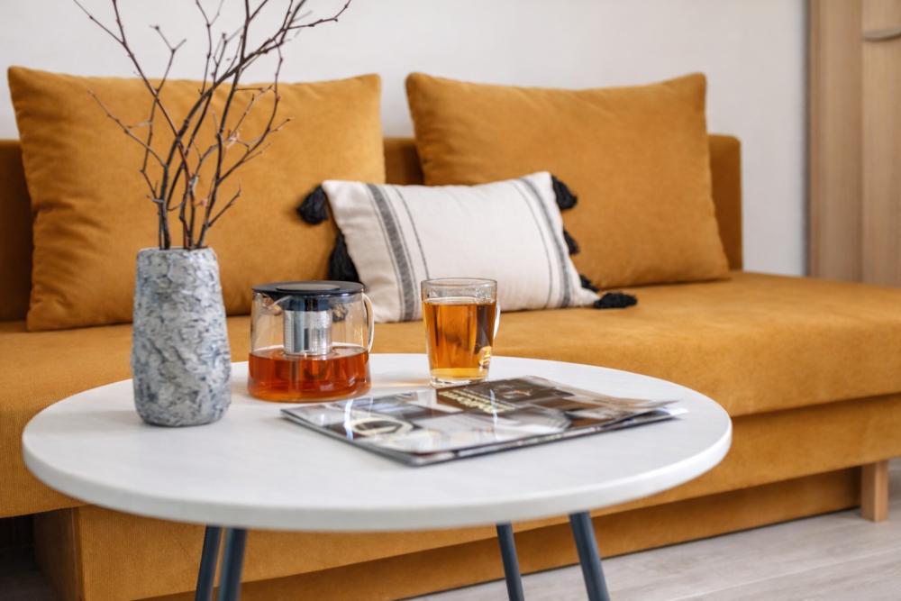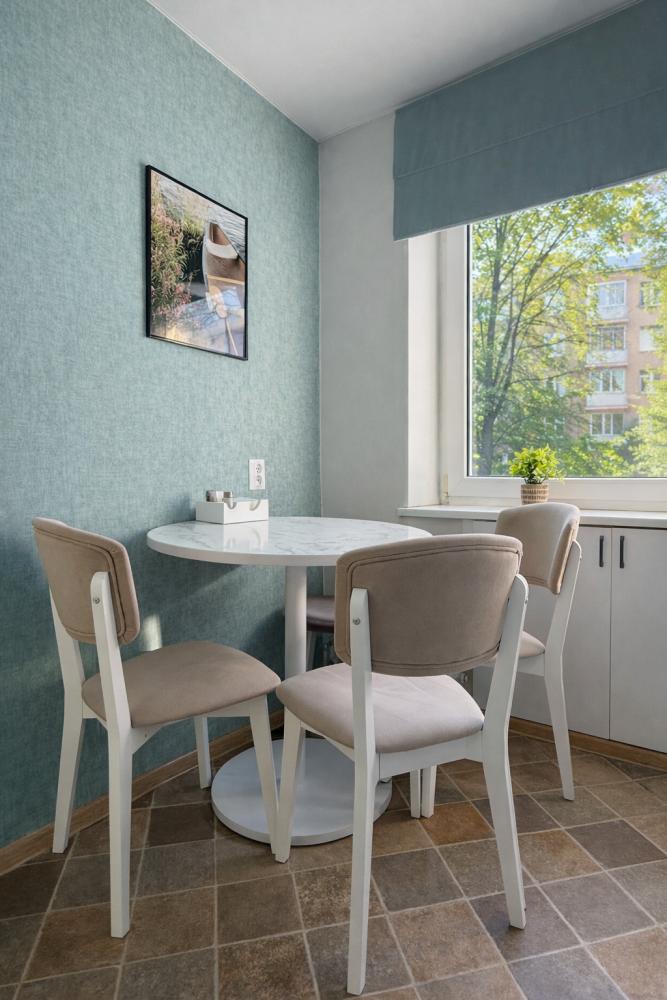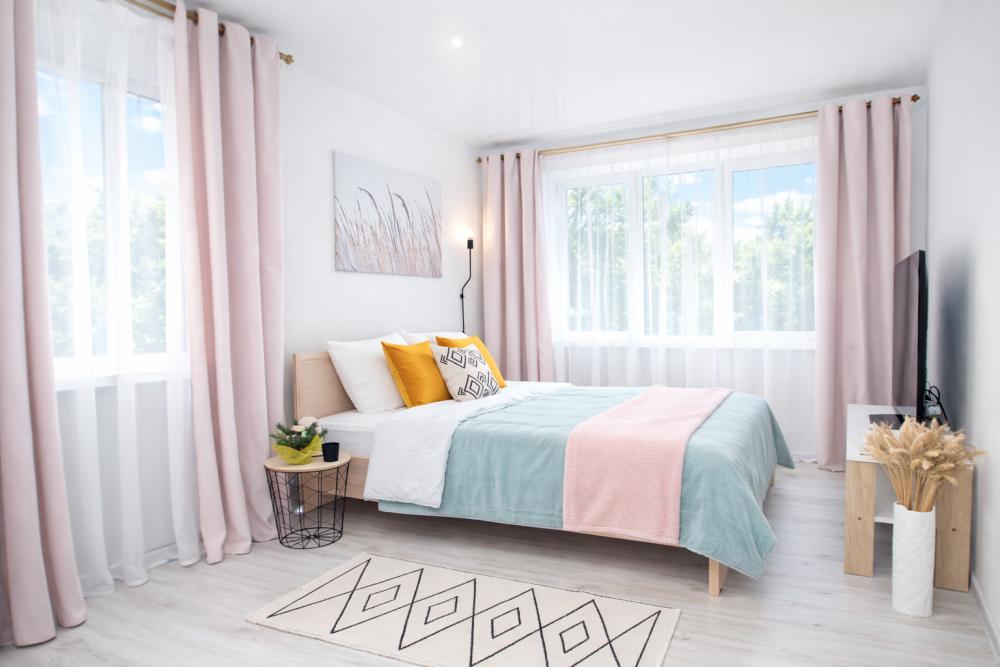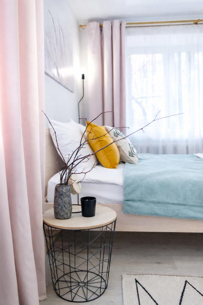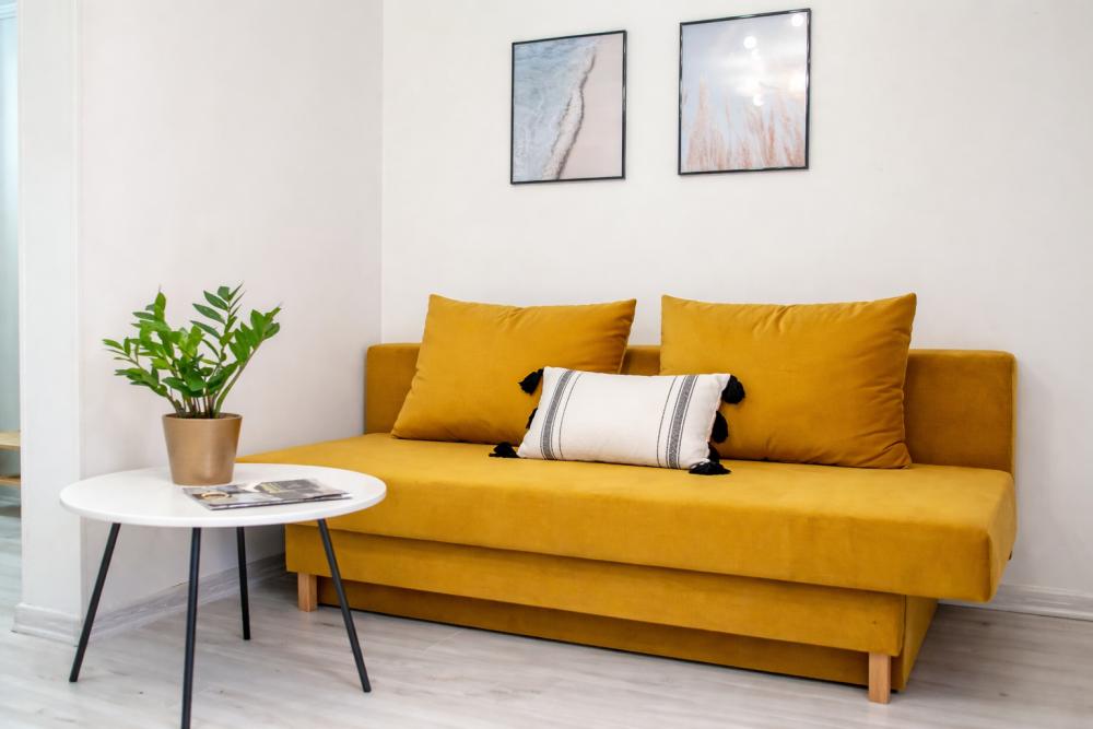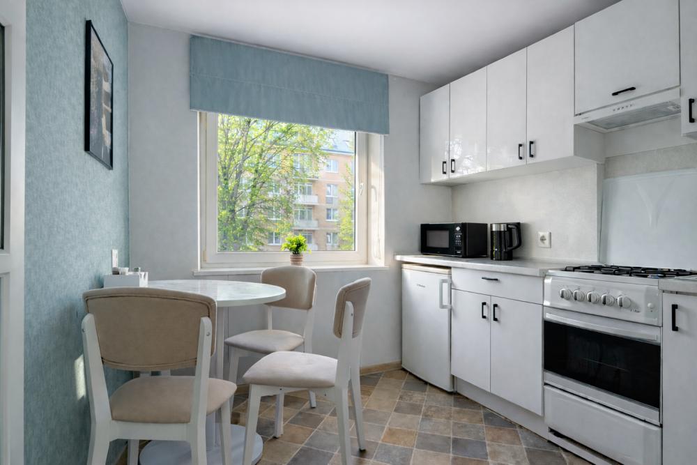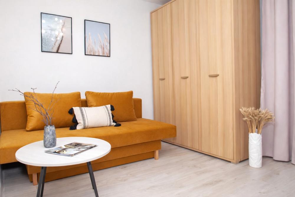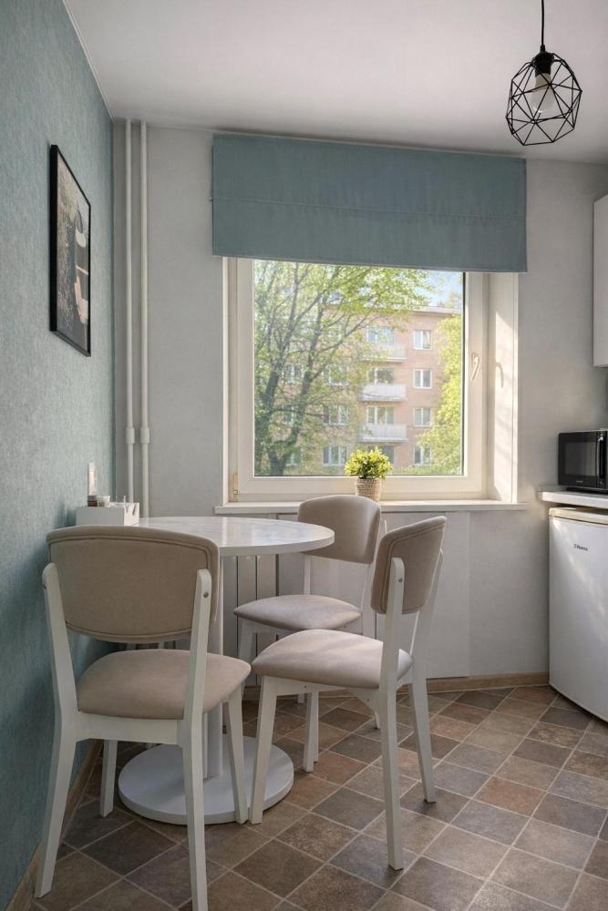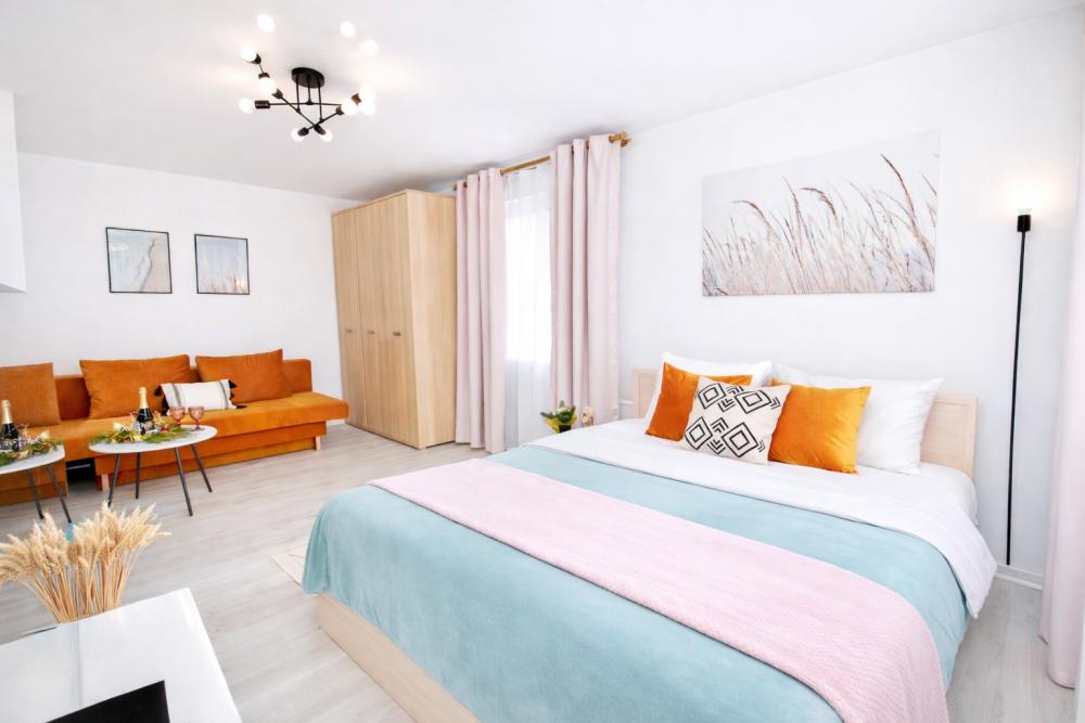 Стильная 1 комнатная, в которой есть всё необходимое для комфортного проживания. Окна выходят во двор. Квартира полностью укомплектована всей необходимой мебелью и техникой. -Большая 2-спальная кровать, двухместный раскладной диван; -Телевизор, стиральная машина, сушилка, фен, утюг, гладильная доска, зонтик -Высокоскоростной WiFi; -На кухне холодильник, микроволновая печь, электрочайник, газовая плита с духовкой. -Вся посуда в достаточном количестве. -Свежее хлопковое белое постельное бельё и белые махровые полотенца. -Тапочки, шампунь, бальзам, гель для душа, мыло для рук, чай, кофе, сливки, специи, масло и прочие приятные мелочи для комфортного проживания Во время длительного проживания Вам предоставляется бесплатная уборка, включающая смену белья и полотенец 1 раз в неделю