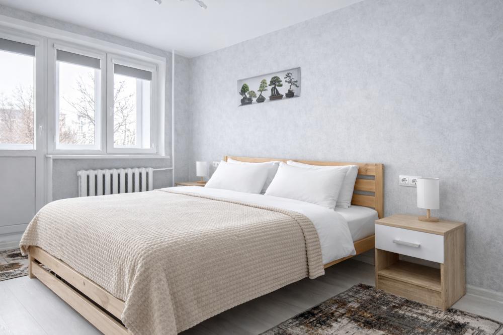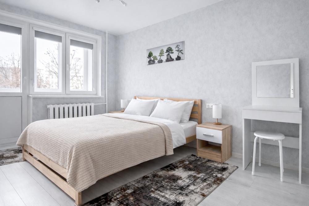 Квартира полностью укомплектована всей необходимой мебелью и техникой. Две 2-спальные кровати, раскладной диван. Телевизор, стиральная машина, сушилка, фен, утюг, гладильная доска, зонтик. Высокоскоростной WiFi. На кухне холодильник, микроволновая печь, электрочайник, плита. Вся посуда в достаточном количестве. Свежее хлопковое белое постельное бельё и белые махровые полотенца. Тапочки, шампунь, гель для душа, мыло для рук, чай, кофе, специи, масло и прочие приятные мелочи для комфортного проживания. Во время длительного проживания Вам предоставляется бесплатная уборка, включающая смену белья и полотенец 1 раз в неделю