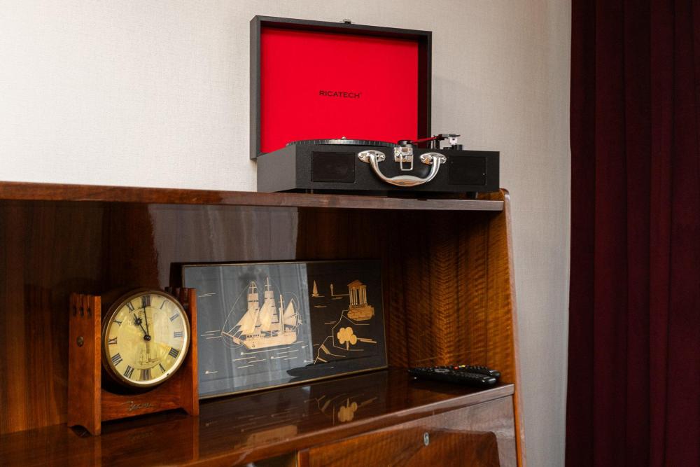 Идеально место для всех, кто хочет перенестись в атмосферу СССР, оставаясь в комфорте современности. Уникальная квартира наполнена деталями того времени, которые создают неповторимый антураж. В квартире вы найдёте: Мебель, характерную для советских времён. Оригинальные детали интерьера, которые перенесут вас в эпоху 60-80-х годов. Граммофон с коллекцией пластинок, который создаёт ностальгическую и уютную атмосферу. Комфортные условия для проживания, включая все необходимые, но уже современные удобства. Белоснежное постельное белье. Белоснежные махровые полотенца. Одноразовые тапочки. Гигиенические принадлежности Отличное расположение позволит вам легко добраться до главных достопримечательностей города. Спальные места: Двуспальная кровать в спальне, Односпальный диван в гостиной По запросу можем предоставить раскладушку При бронировании от 7 суток производится бесплатная замена белья и полотенец.
