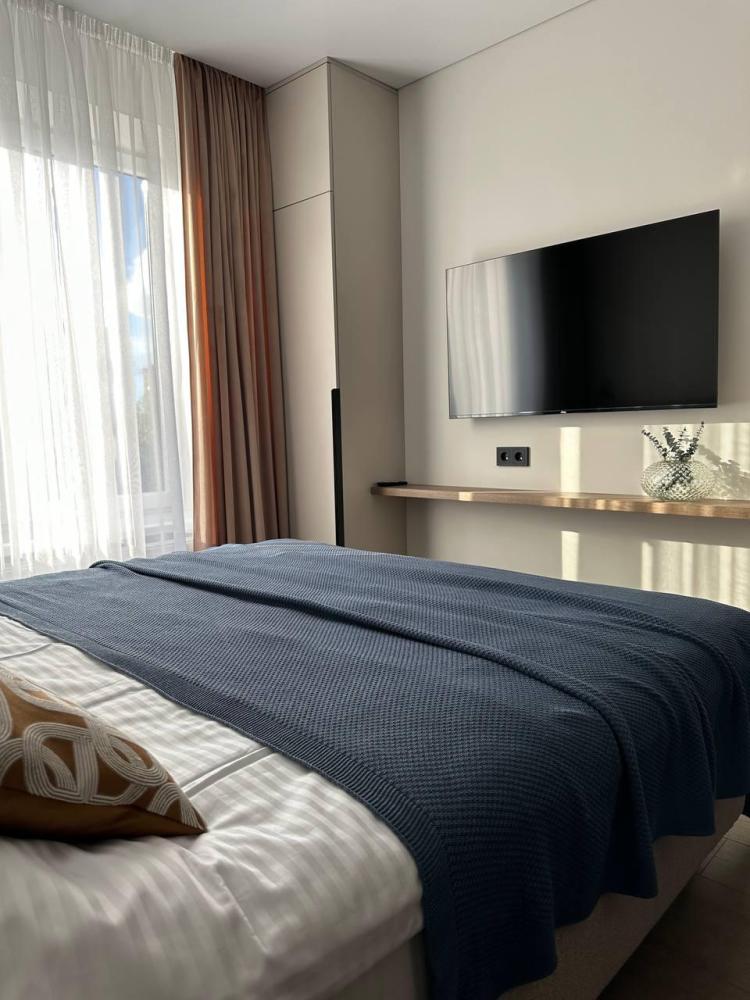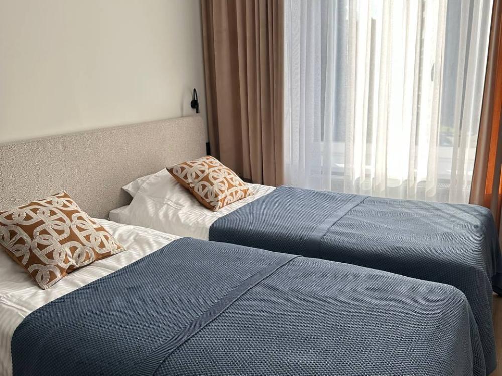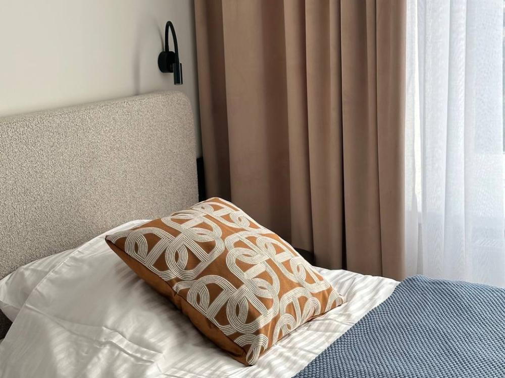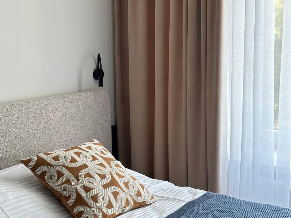 Уютная новая квартира расположена рядом с Королевскими воротами и Музеем янтаря, до Верхнего пруда 15 минут пешком по красивой территории БФУ им. И. Канта. Тихий двор. Третий этаж. Есть лифт. В квартире есть все необходимое для комфортного проживания. В двух раздельных спальнях: кровать 160 см, а также кровать 180 см, которая при необходимости раздвигается на 2 отдельных спальных места по 90 см. Белое постельное белье. Гостям предоставляются полотенца. В квартире есть стиральная машина, гладильная доска, утюг, посудомоечная машина, холодильник, индукционная плита, духовка, микроволновая печь, электрический чайник. Сушилка для белья. Полный комплект столовых приборов и посуды для приготовления еды, разнообразные тарелки и бокалы. Шкафы для организации хранения одежды. В одной из спален и в гостиной расположены телевизоры с многочисленными каналами и приложениями. Работает беспроводной интернет. При необходимости в двух рабочих местах - за столами, расположенными в двух спальнях, - можно подключиться к проводному интернету. Уютное вечернее освещение в виде трех ротанговых бра. Удобный диван и уютный берберский ковер. В каждой спальне также продуманы варианты освещения, включая прикроватные светильники-ридеры. В санузле предусмотрен гигиенический душ и душевая система с термостатом. Рядом с домом расположены два больших продуктовых магазина, кафе и пиццерия. Во дворе оборудована стоянка для автомобилей с двумя шлагбаумами. В 100 метрах от дома находится автобусная остановка, от которой при необходимости можно легко добраться до любой точки города.