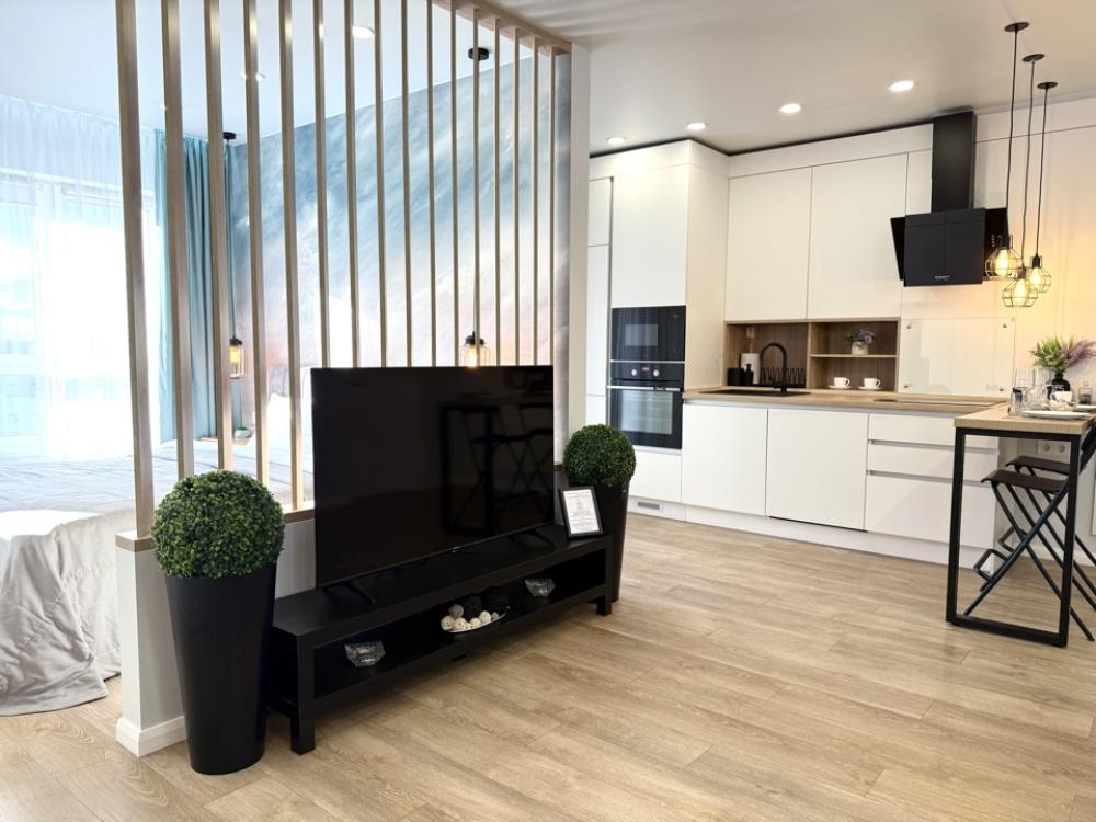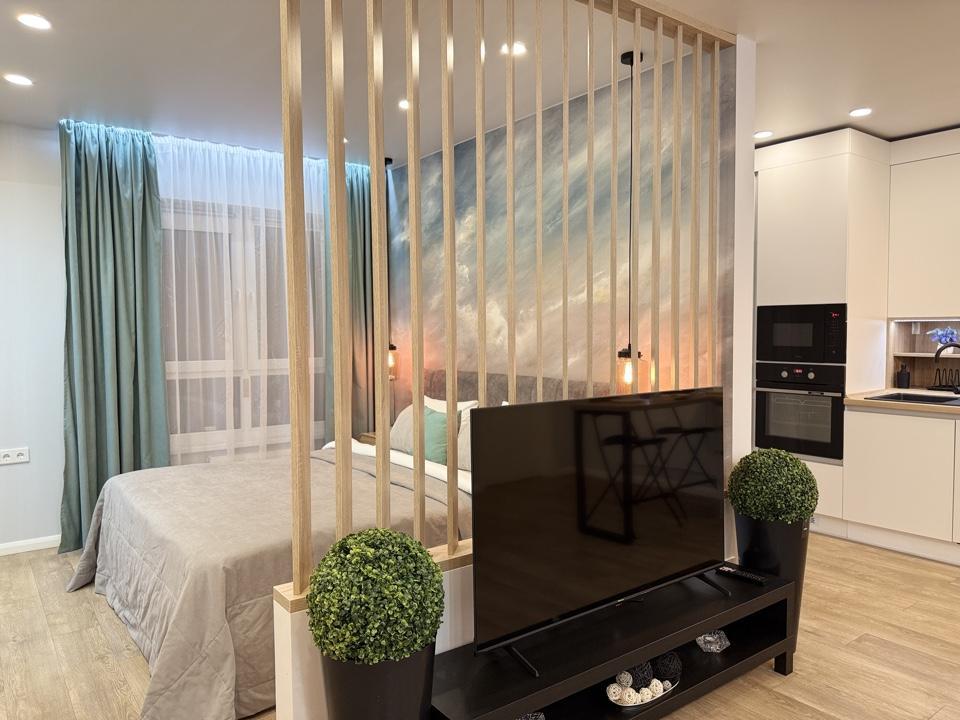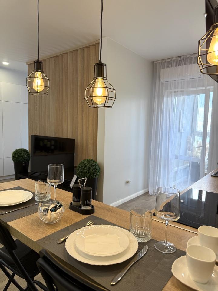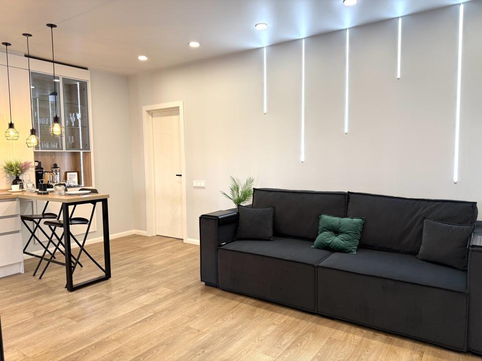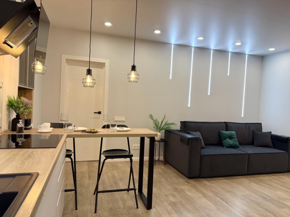 Апартаменты класса люкс «Flagman De Luxe» в самом туристическом центре города Калининград. Для комфортного проживания гостей апартаменты оснащены всем необходимым: большая двуспальная кровать 180х200 с высоким мягким ортопедическим матрасом серии luxury; диван мягкий большой, в разложенном виде размер 180х200; белье премиум-класса страйп-сатин; полотенца премиум-класса (хлопок 100%) на каждого гостя комплект из 3-х шт. Бытовая техника: кондиционер (сплитсистема); смарт-тв диагональ 56 дюймов; интернет, кабельное тв, wi-fi; стиральная машина автомат; утюг, гладильная доска; фен; холодильник; микроволновая печь; кофемашина с 3 видами кофе (капсулы: nespresso/dolce gusto, молотый кофе); растворимый кофе, чаи черный/зеленый, сахар входят в стоимость аренды.