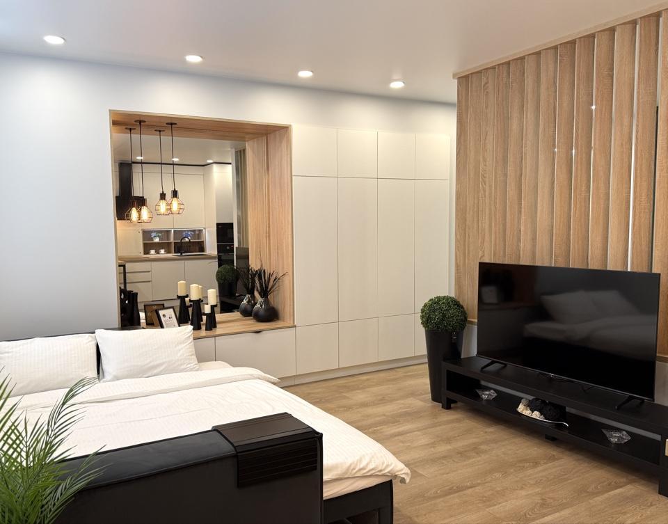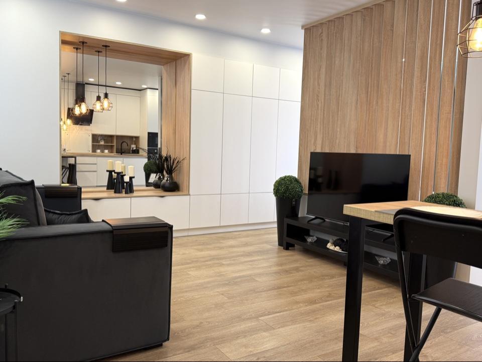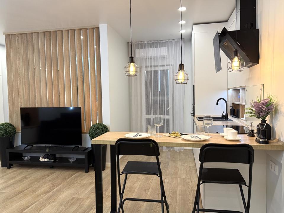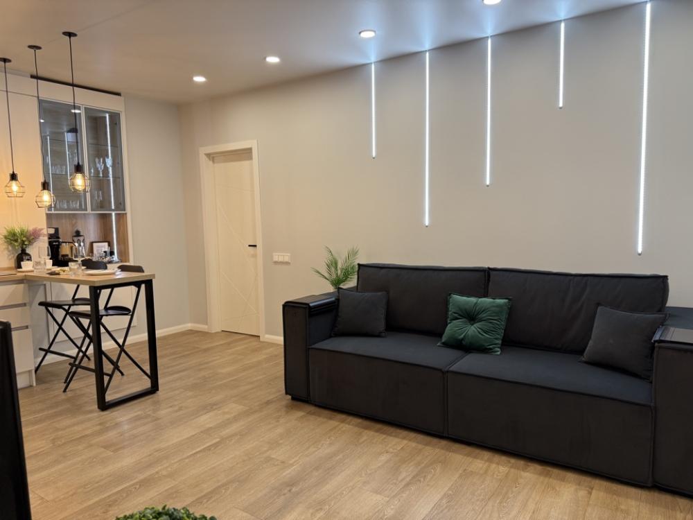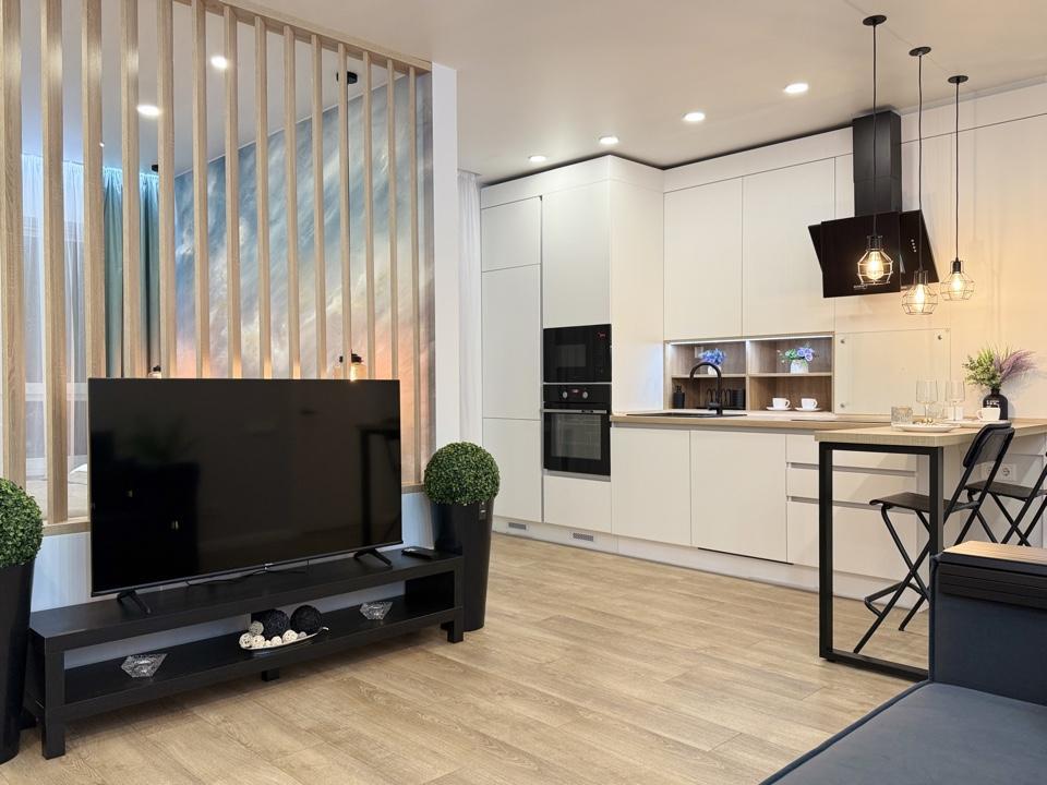 Апартаменты класса люкс «Flagman De Luxe» в самом туристическом центре города Калининград. Для комфортного проживания гостей апартаменты оснащены всем необходимым: большая двуспальная кровать 180х200 с высоким мягким ортопедическим матрасом серии luxury; диван мягкий большой, в разложенном виде размер 180х200; белье премиум-класса страйп-сатин; полотенца премиум-класса (хлопок 100%) на каждого гостя комплект из 3-х шт. Бытовая техника: кондиционер (сплитсистема); смарт-тв диагональ 56 дюймов; интернет, кабельное тв, wi-fi; стиральная машина автомат; утюг, гладильная доска; фен; холодильник; микроволновая печь; кофемашина с 3 видами кофе (капсулы: nespresso/dolce gusto, молотый кофе); растворимый кофе, чаи черный/зеленый, сахар входят в стоимость аренды.