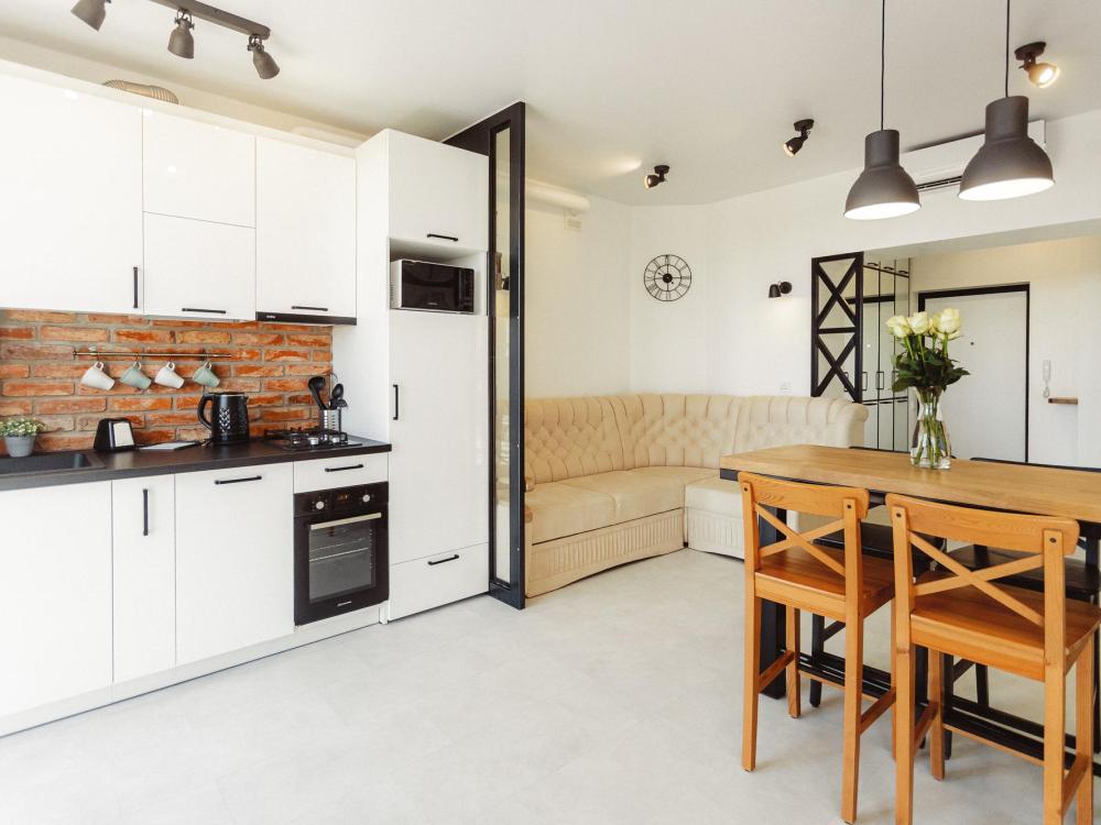 Уютная однокомнатная квартира-студия с панорамным остеклением. Подходит для размещения до 4х гостей В шаговой доступности много магазинов, аптеки, кафе, остановки общественного транспорта. B квapтиpe ecть все необходимое для комфортного проживания: двуспальная кровать, диван на 2 спальных места, телевизор, wi fi, кондиционер, постельное белье, полотенца, гигиенические средства, оборудованная кухня, холодильник, электрический чайник, посуда для приготовления и сервировки, санузел, стиральная машина.