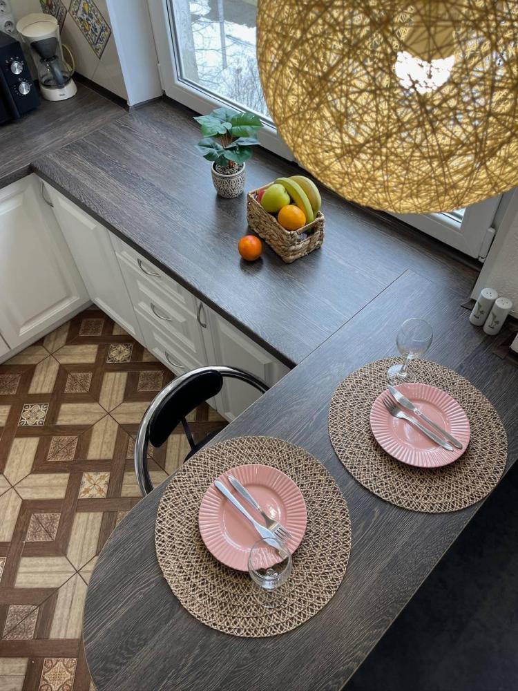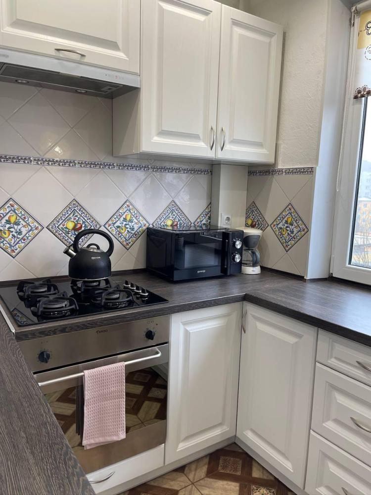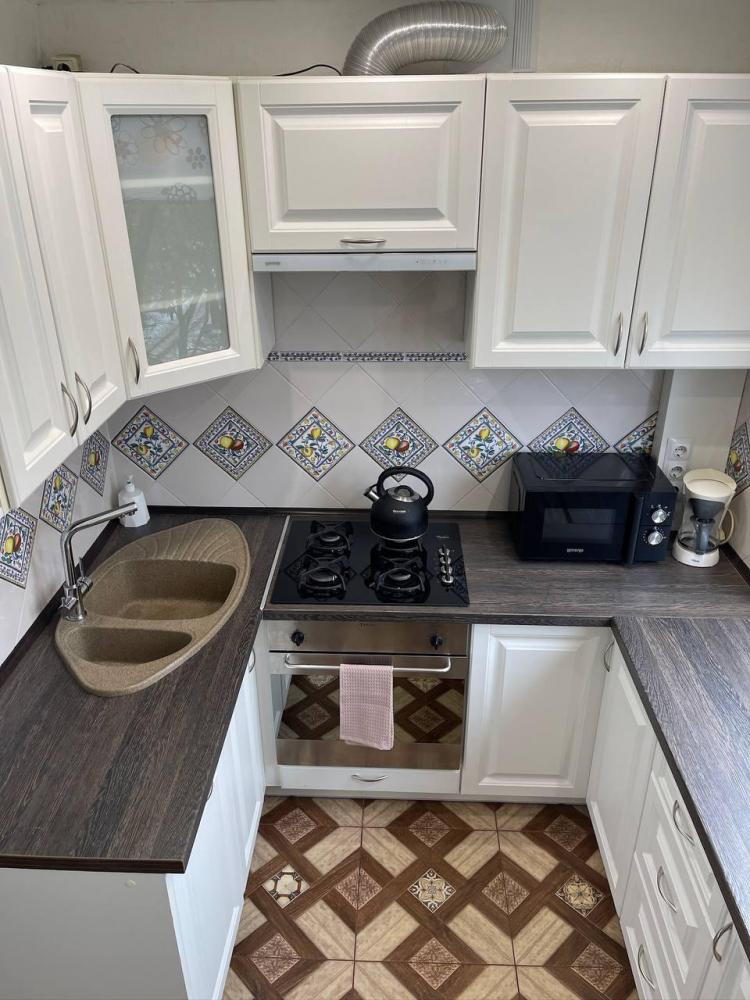 Кухня оснащена: кофеварка, холодильник, микроволновка, установлен фильтр для воды. Чай,кофе, соль,сахар всегда в наличии.