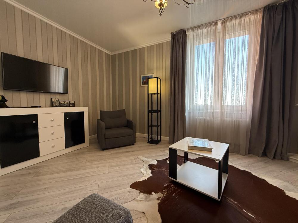 Апартаменты у Росгартенских ворот находятся в 15 минутах пешком от центра Калининграда. Расположение апартаментов примечательно близостью к Верхнему и Нижнему озерам, музею Янтаря. Это просторная 2-х комнатная квартира, общая площадь 75 кв.м., созданная для комфортного проживания семьи или компании до 4-5 человек. Апартаменты полностью оснащены всем необходимым для комфортного проживания. Большой зал с камином, раскладными диваном и креслом. Отдельная спальня с большой кроватью для двоих с ортопедическим матрасом. Кухня-столовая с выходом на лоджию, откуда можно любоваться нашим удивительным городом. Интерьер квартиры выполнен в расслабляющих светлых тонах, а приятные детали создают по-настоящему домашнюю обстановку: картины на стенах, панно, декоративные цветы, свечи и искусные светильники. Шторы блэк-аут дадут возможность вам дольше насладиться отдыхом. Покрывало и подушка контрастирует с бежевыми оттенками, придавая комнате особую атмосферу тепла и уюта. Кухня оборудована всей необходимой техникой для приготовления ваших любимых блюд: есть холодильник, жарочный шкаф, микроволновка и чайник. В шкафчиках вы найдете нужную кухонную утварь: посуду и столовые приборы. Также мы подготовили для вас бесплатные чай, кофе, сахар и соль. В ванной комнате есть туалет, биде, душ, фен, свежие полотенца и гигиенические принадлежности в удобных дозаторах: жидкое мыло, гель для душа и шампунь.