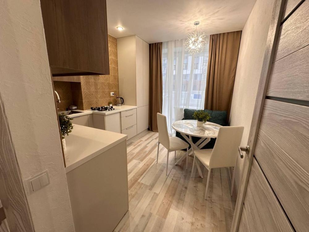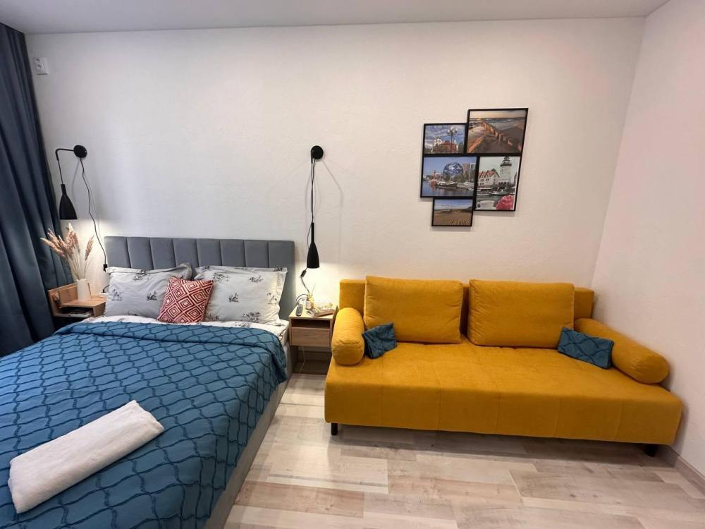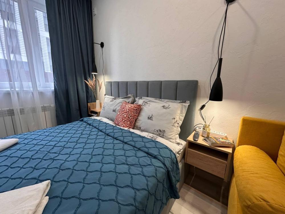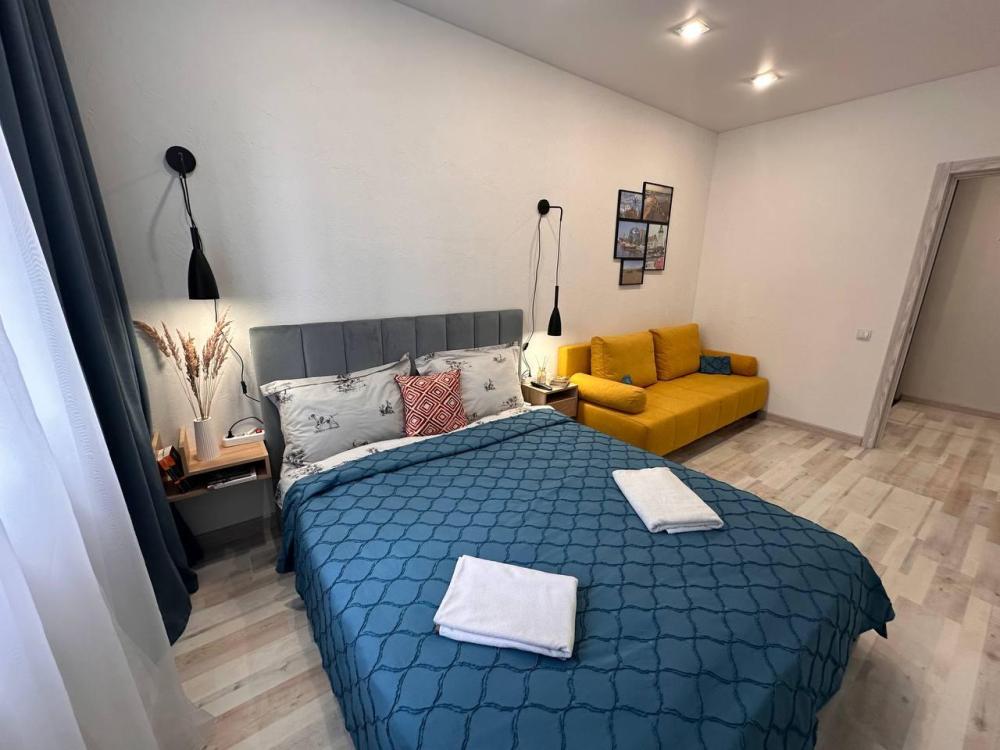 Уютные апартаменты для 4 гостей, оборудованные всем необходимым для комфортного проживания. В апартаментах: двуспальная кровать, диван, кухня с обеденной зоной, оборудованная всей необходимой техникой и посудой, санузел с душем.