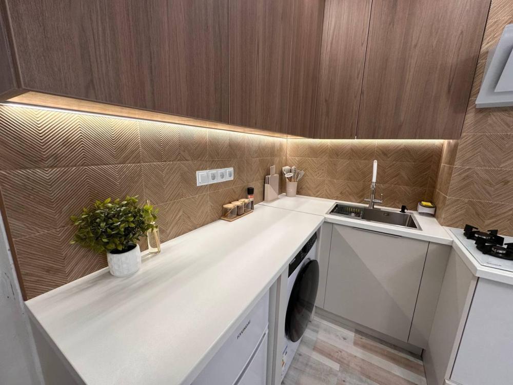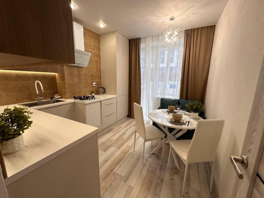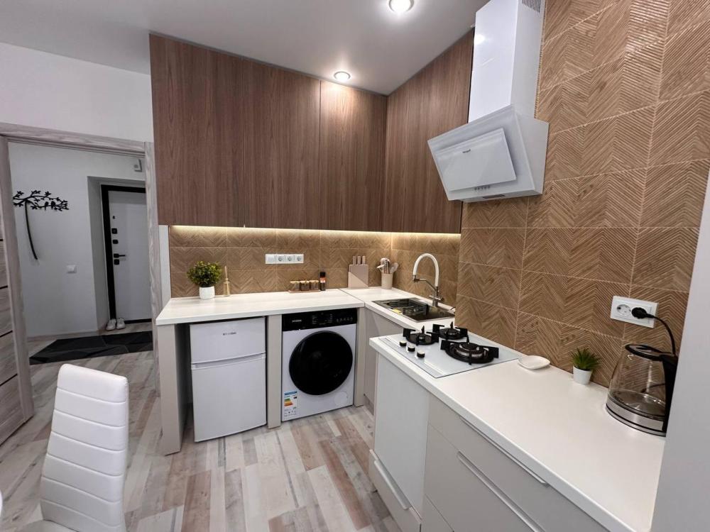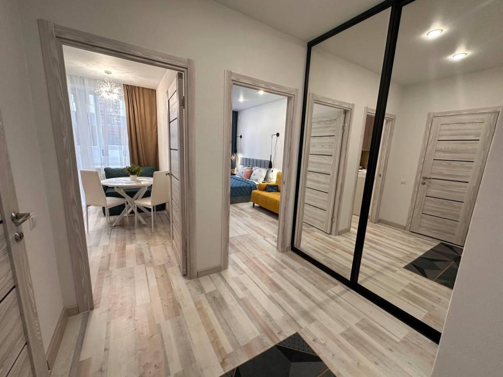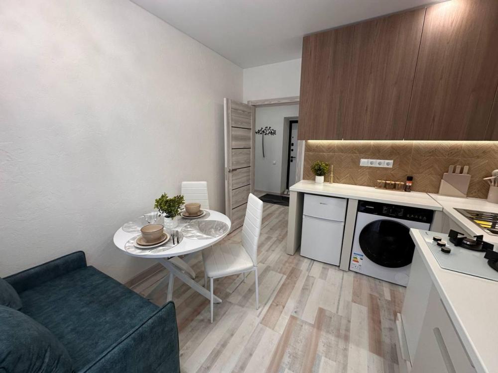 Уютные апартаменты для 4 гостей, оборудованные всем необходимым для комфортного проживания. В апартаментах: двуспальная кровать, диван, кухня с обеденной зоной, оборудованная всей необходимой техникой и посудой, санузел с душем.
