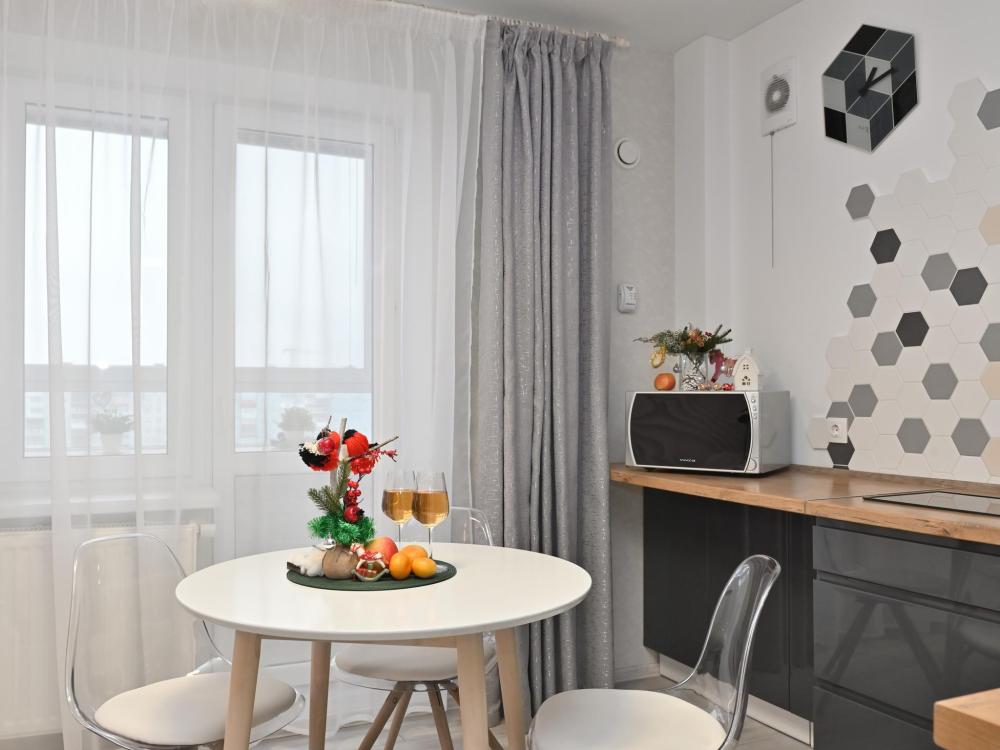 Однокомнатные апартаменты "Kenig Holidays" для 3 гостей, спальные места: двуспальная кровать и кресло-кровать. В квартире функциональная кухня и просторная лоджия для уютных вечеров. Высокоскоростной WI-Fi и техника (КОНДИЦИОНЕР, телевизор, стиральная машина, холодильник, плита, микроволновая печь, электрочайник, фен, утюг). К услугам гостей посуда и кухонные принадлежности для приготовления и приема пищи.