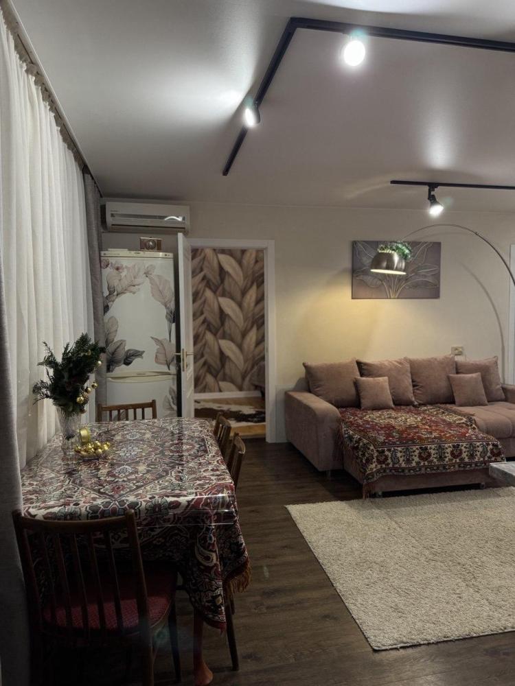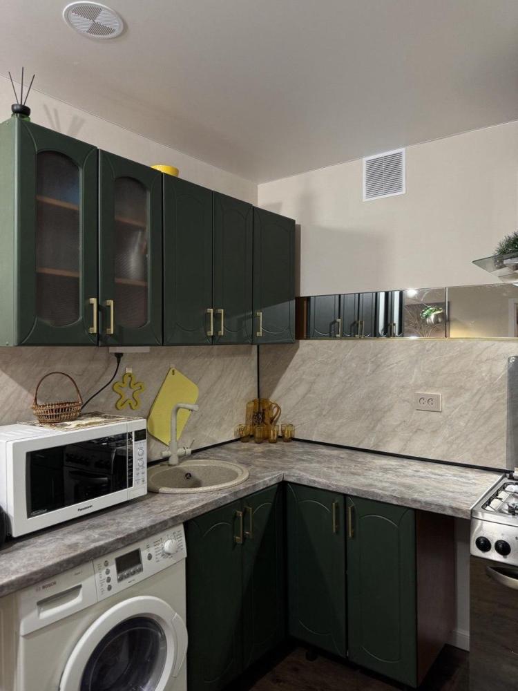 Уютные евродвухкомнатные апартаменты. Квартира оборудована и укомплектована всем необходимым: кондиционер, Wi-Fi, холодильник, плита газовая с духовкой, стиральная машина с сушкой, микроволновка, чайник, фен, чистое белье, полотенца. Можно разместить до 6 гостей, двуспальная кровать, диван двуспальный на 160 см и диван на 140 см.
