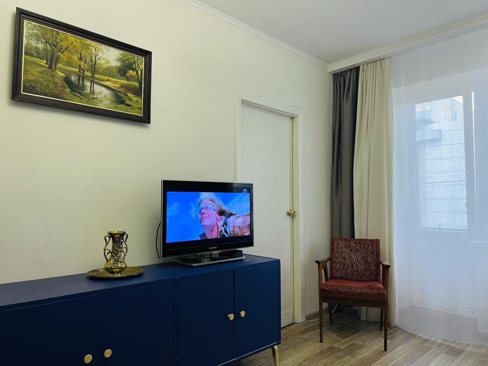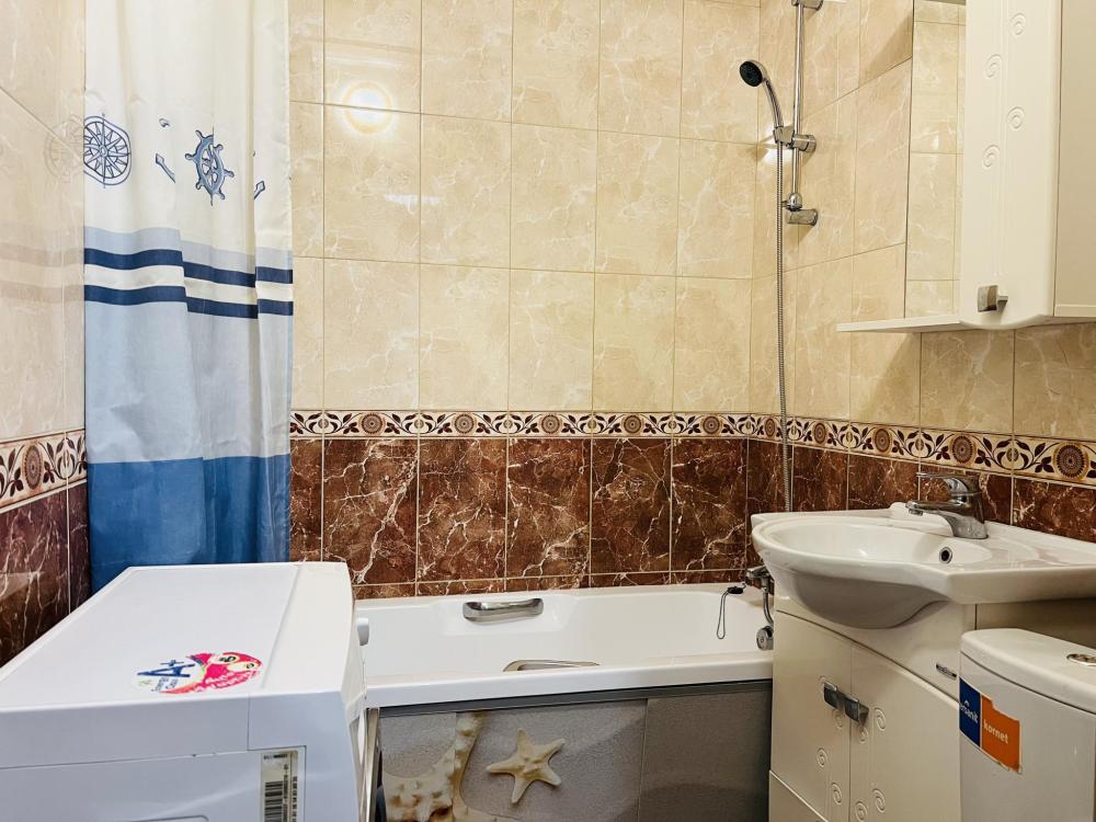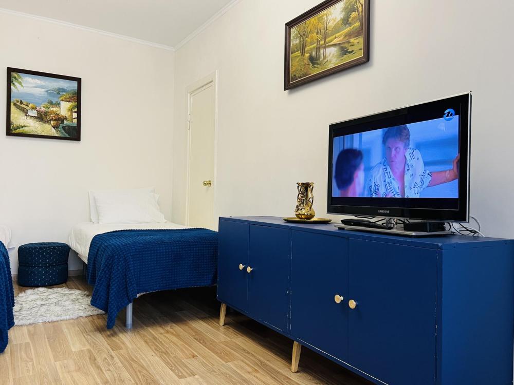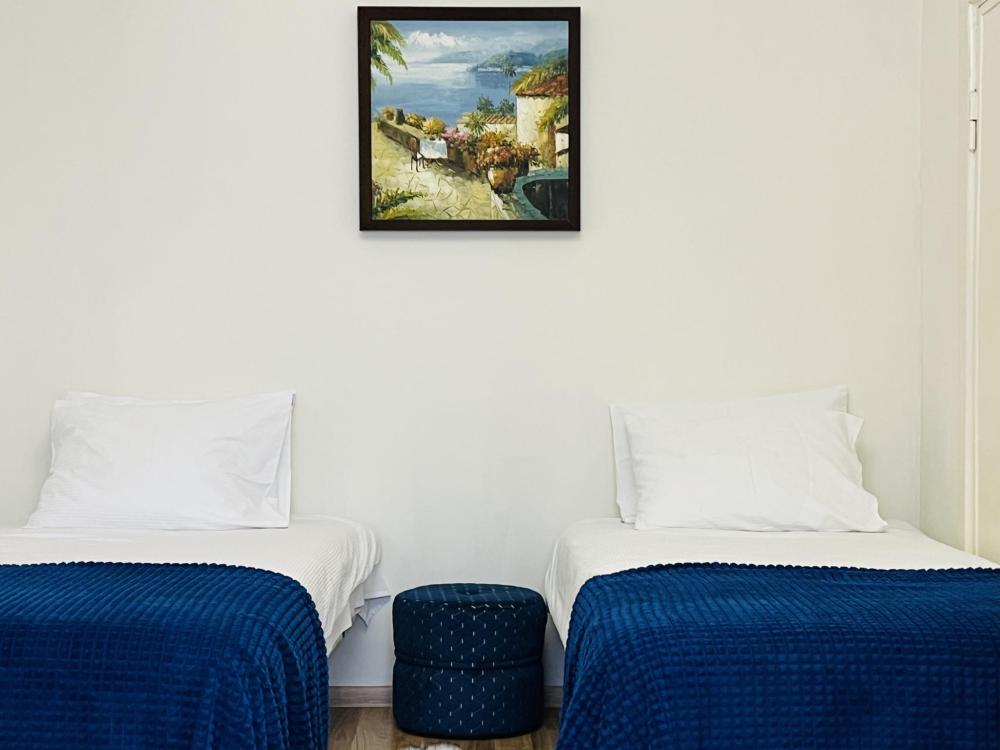 Две односпальные кровати сдвинуты. Можно раздвинуть. +диван, возможно разместиться 4 чел. Есть все необходимое для жизни. Посуда, чай, кофе, постель, утюг, стир. машина, сушилка для белья, телевизор, ТВ приставка Билайн.