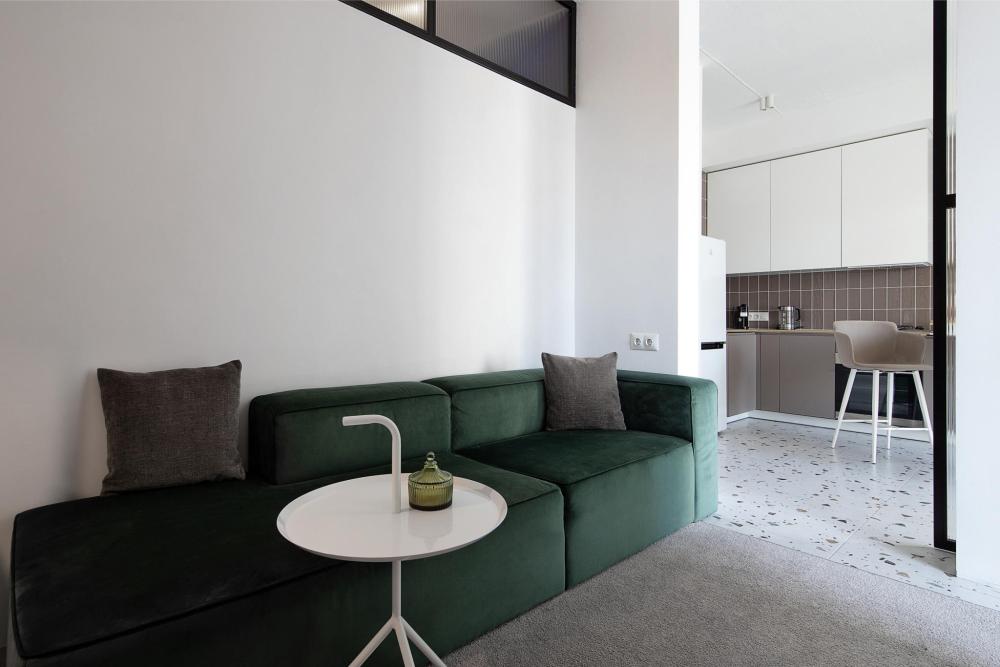1-комнатные апартаменты люкс Оснащение и удобства: спальня с просторной двуспальной кроватью (160×200; гостиная с удобным диваном и телевизором; полностью оборудованная кухня включает плиту, духовой шкаф, микроволновку, посудомоечную машину, холодильник, кофемашину и фильтр для воды; ванная комната с удобной ванной.