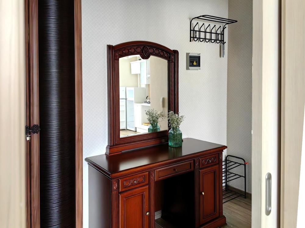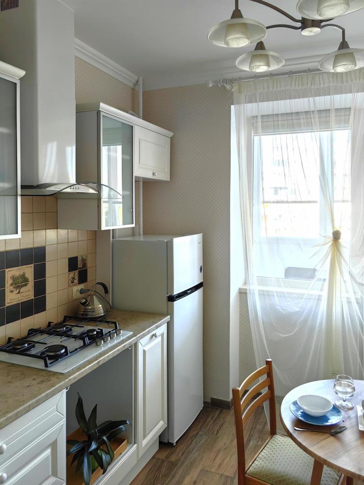 Однокомнатная квартира в современном доме с лифтом и автономным отоплением. Рассчитана на 3 гостей. Большая лоджия-кабинет, телевизор, стиральная машина, фен, утюг, фильтр питьевой воды.