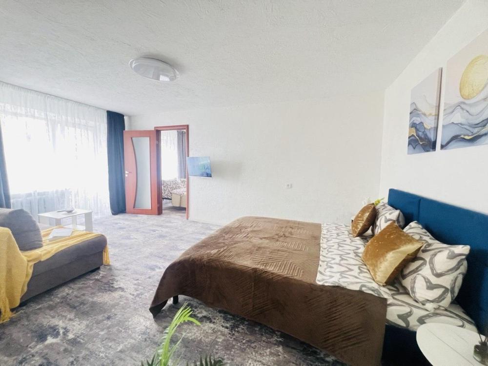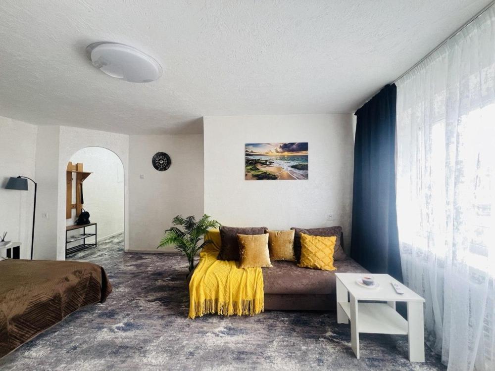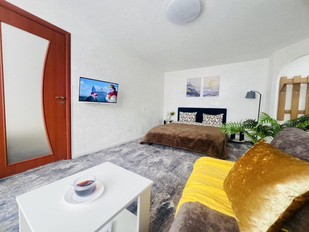 В квартире есть две двуспальные кровати, раскладной диван, цифровой телевизор, быстрый Wi-Fi, балкон для курения, кухонный уголок с техникой и посудой, стиральная машина, утюг с гладильной доской, сушилка, а также ванная комната с туалетными принадлежностями, полотенцами и феном для волос.