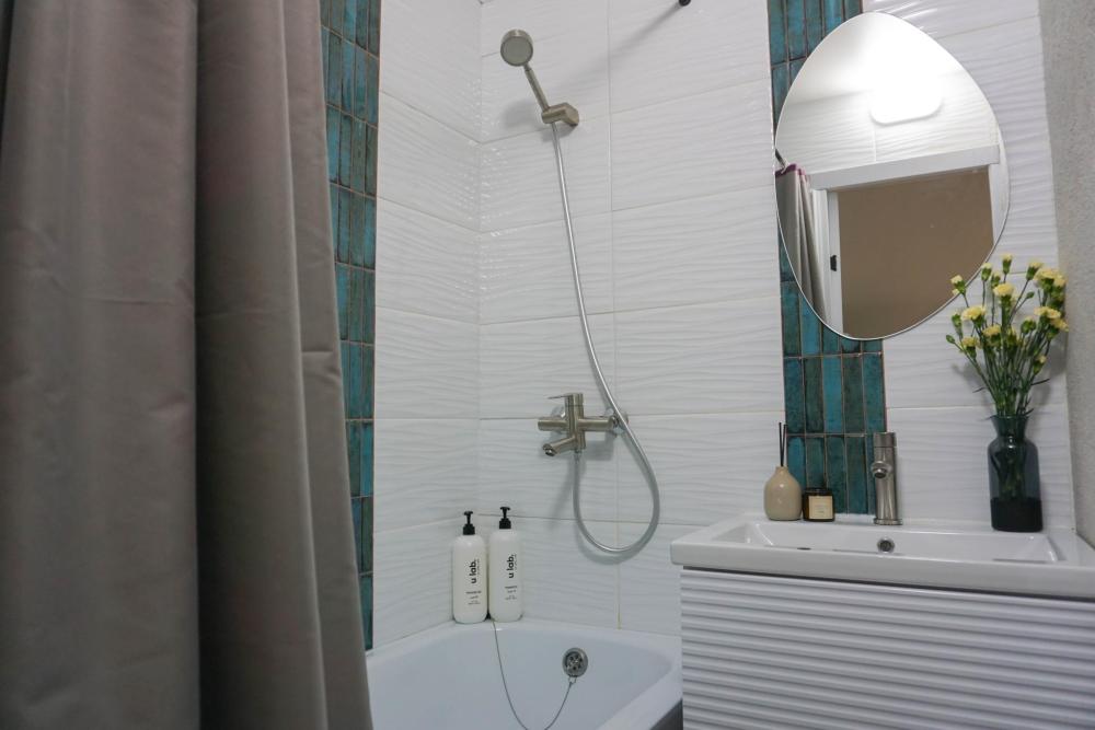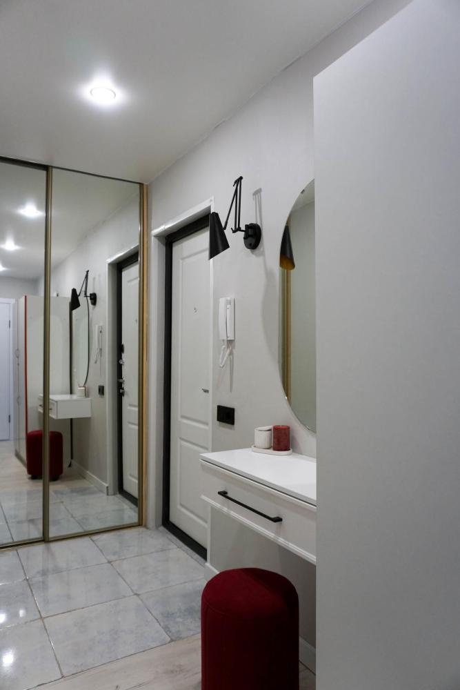 Квартира оснащена кондиционером. Так же из техники утюг, фен и телевизор смарт.
