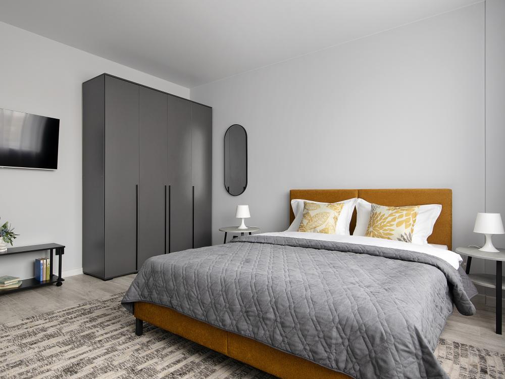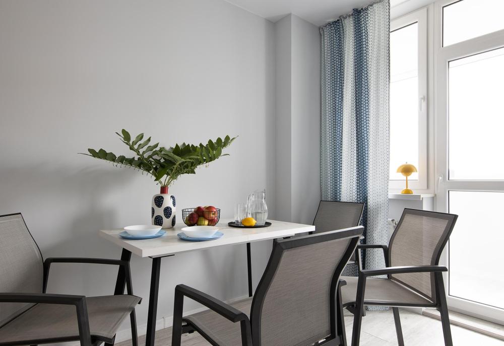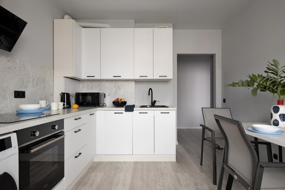 Апартаменты идеально подходят для семейного отдыха и расположены всего в нескольких минутах от выезда на море, что делает их отличным выбором для тех, кто хочет совмещать комфорт и активный отдых. В квартире выполнен современный и ухоженный ремонт, создающий атмосферу уюта и стиля. Просторные комнаты, светлые тона и продуманная планировка обеспечивают ощущение простора и гармонии. На балконе вы сможете наслаждаться видом на окрестности. Это идеальное место для утреннего кофе или вечернего отдыха с семьёй. В каждой комнате предусмотрены удобства: возле кроватей установлены мягкие ночники, а в одной из комнат — торшер, создающий уютное освещение для вечернего отдыха. В апартаментах также установлен кондиционер, обеспечивающий комфортную температуру в любое время года. Кухонная зона полностью укомплектована техникой: микроволновая печь, чайник, духовка, плита, холодильник и кофемашина — всё, что нужно для приготовления вкусных блюд и комфортного проживания. Здесь вы сможете легко организовать семейные завтраки, ужины или просто наслаждаться любимым напитком в кругу близких.