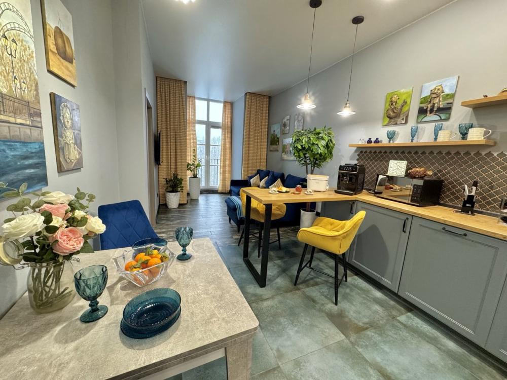 Квартира с кухней-гостиной и отдельной спальней с уютным ремонтом в светлых тонах, с яркими элементами современной мебели. Размещение возможно до 4 человек, двуспальная кровать 160х200 и раскладной двуспальный диван 150х200. Для каждого гостя подготовлено по 2 полотенца (для душа и рук) + 1 полотенце для ног. Крытая лоджия с видом на реку. На кухне есть все необходимое для приготовления еды: посуда, столовые приборы, кастрюли и сковородки, микроволновка, холодильник, чайник, духовка и индукционная плита. Для комфортного пребывания дополнительно предоставляются тапочки, махровые халаты, гигиенический набор (шампунь, гель для душа, зубная щетка с пастой), фен, утюг, стиральную машину. Полы с подогревом. Автономное отопление. Предоставляется бесплатный высокоскоростной Wi-Fi и кабельное телевидение.