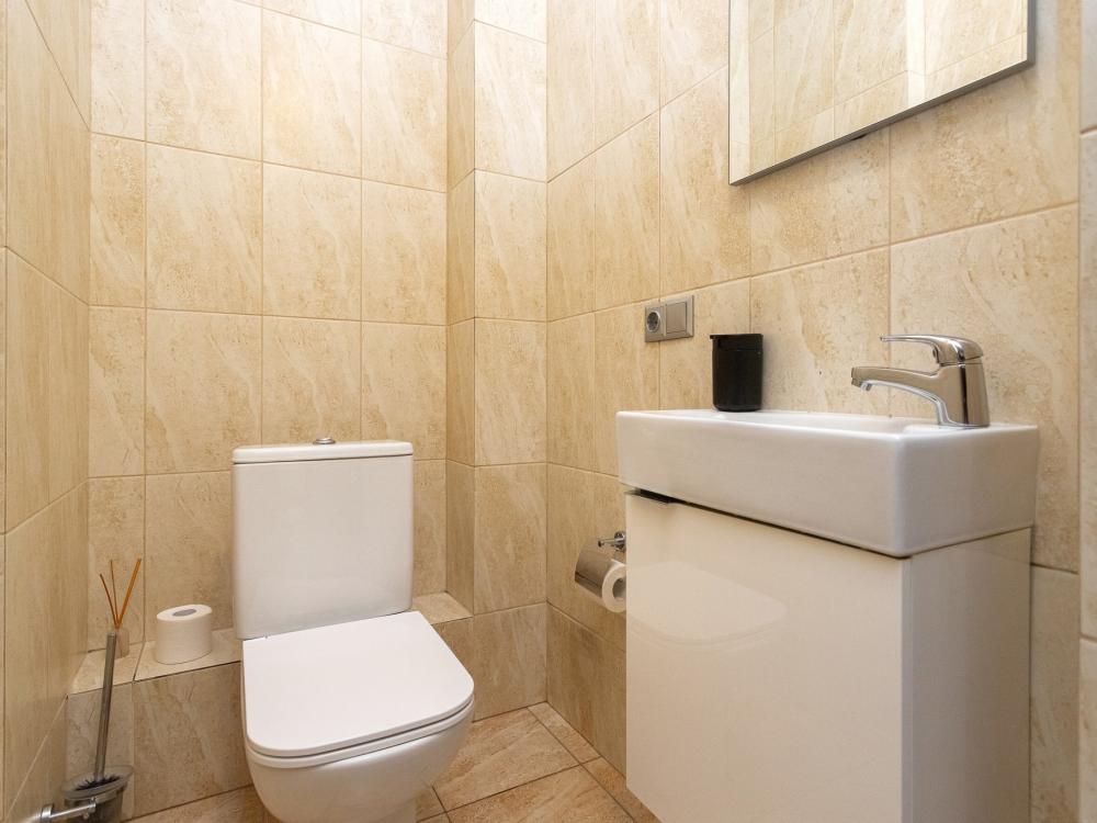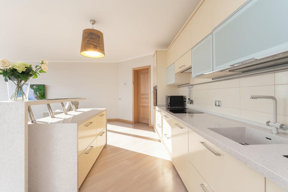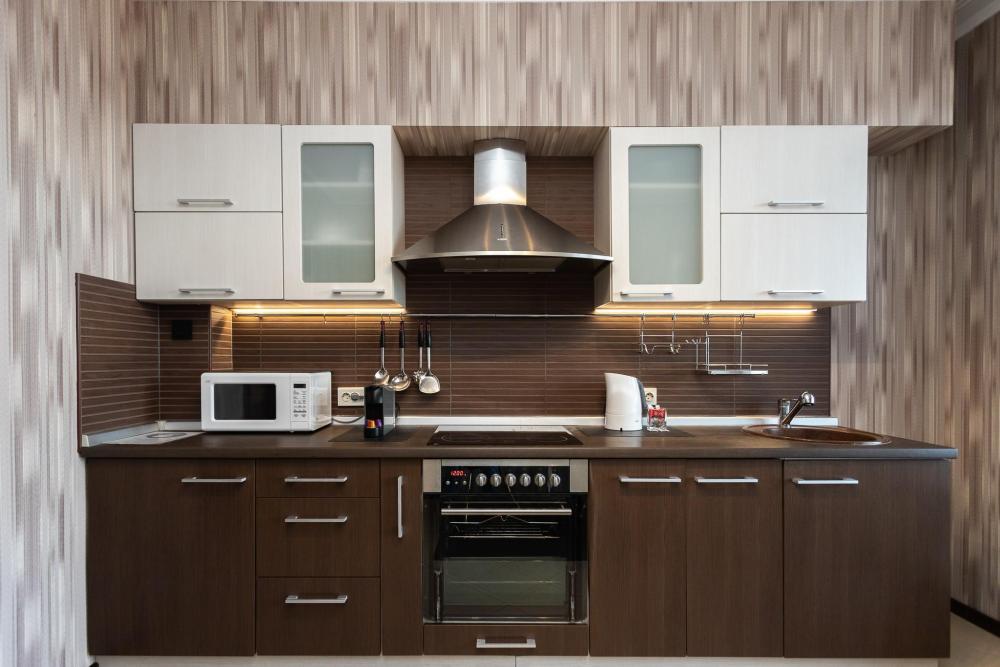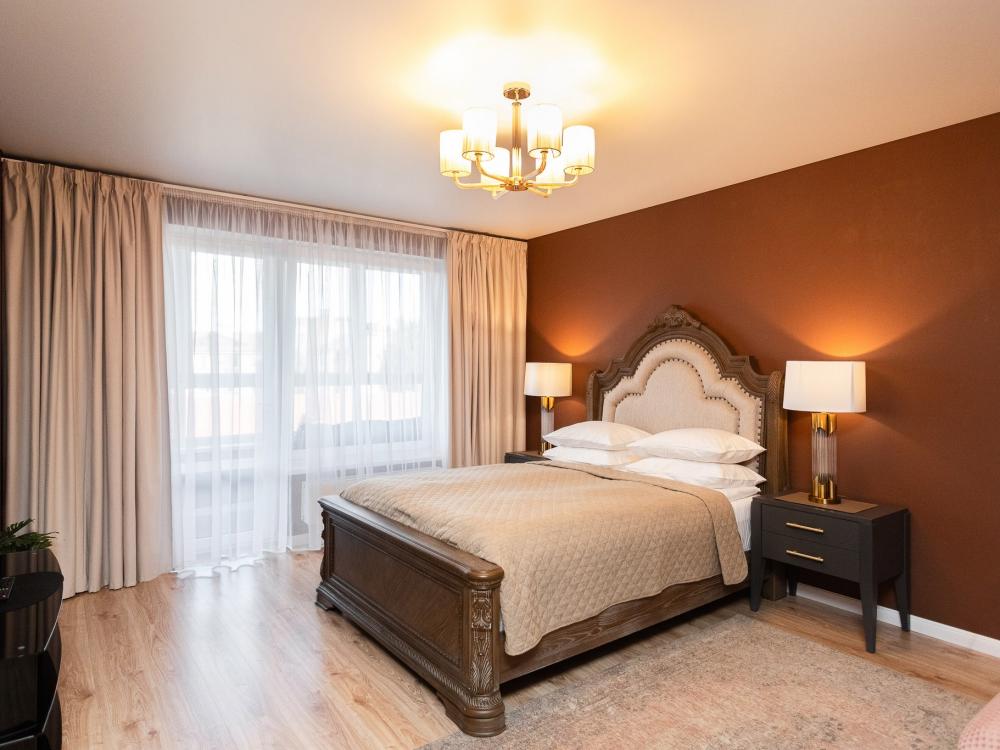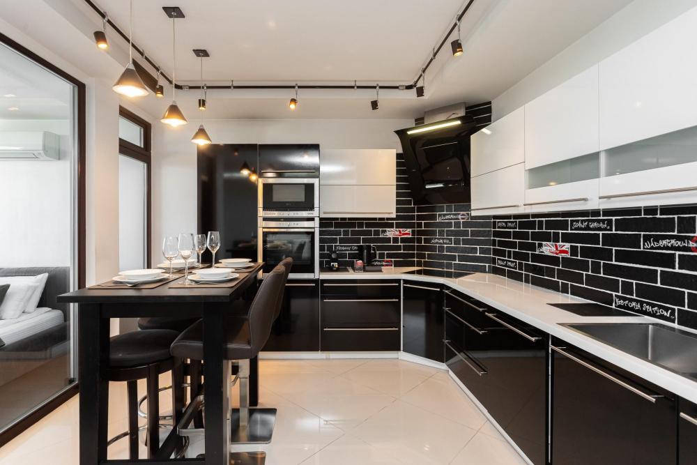 Апартаменты удовлетворят даже самый взыскательный вкус. При ремонте и декорировании использовались материалы известных европейских марок таких как: Boen, Villeroy and Boch, Schuller, Maytoni и др. Деревянный паркетный пол, посудомоечная машина, кондиционер, просторный кабинет с компьютером и терраса сделают ваш отдых комфортным и незабываемым. В квартире имеются: фен, утюг, гладильная доска, пылесос, полотенца (одно большое, одно среднее на каждого проживающего), шампуни, гель для душа, жидкое мыло, постельное белье, чай, сладкий презент, кухонное полотенце, моющие средства для посуды, средства индивидуальной гигиены, столовые приборы, посуда, электрический чайник, микроволновка, кабельное ТВ, высокоскоростной Wi-fi, стиральная машина, тапочки, холодильник.