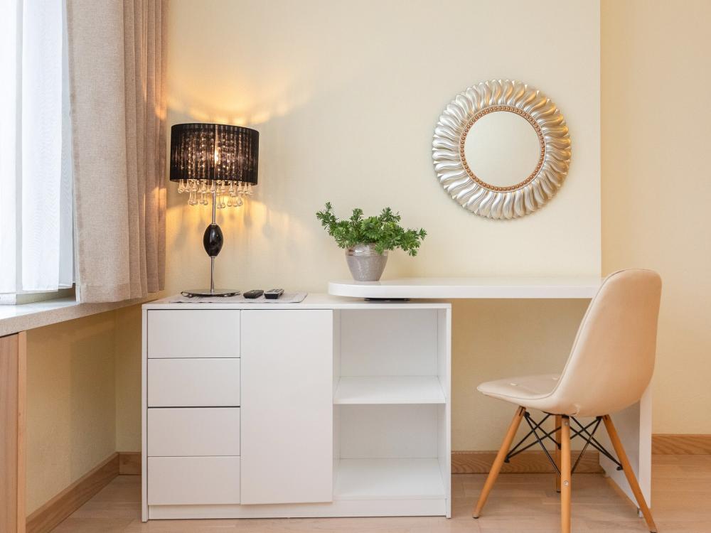 Эти апартаменты оптимальное соотношение цена/качество. В апартаментах имеется кондиционер. Кровать со спальным местом 180х200 и удобным матросом - то что надо после прогулок по городу. Для третьего человека предусмотрена односпальная кровать 90х200. В квартире имеются: фен, утюг, гладильная доска, пылесос, полотенца (одно большое, одно среднее на каждого проживающего), шампуни, гель для душа, жидкое мыло, постельное белье, чай, сладкий презент, кухонное полотенце, моющие средства для посуды, средства индивидуальной гигиены, столовые приборы, посуда, электрический чайник, микроволновка, кабельное ТВ, высокоскоростной Wi-fi, стиральная машина, тапочки, холодильник.