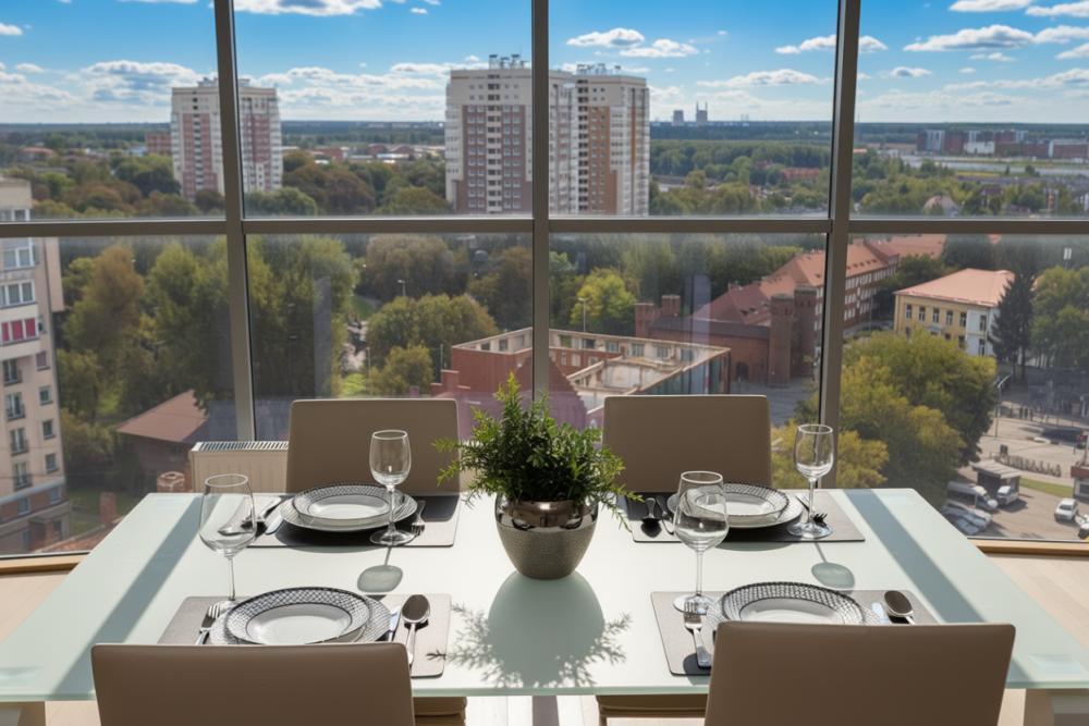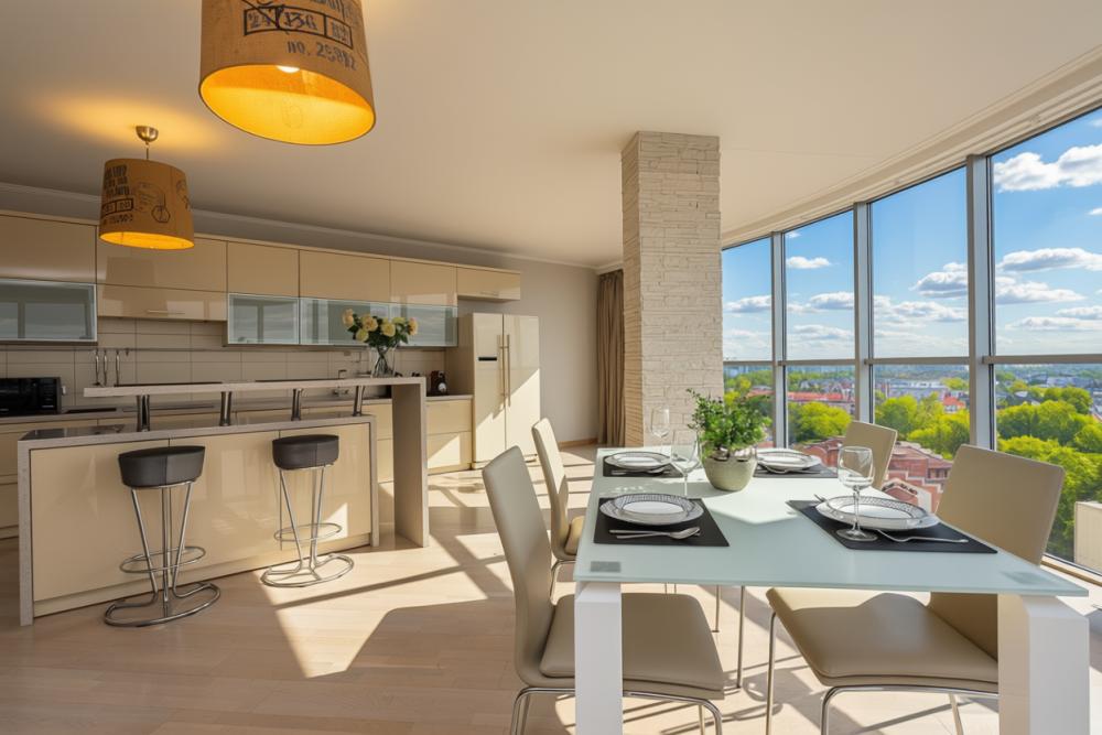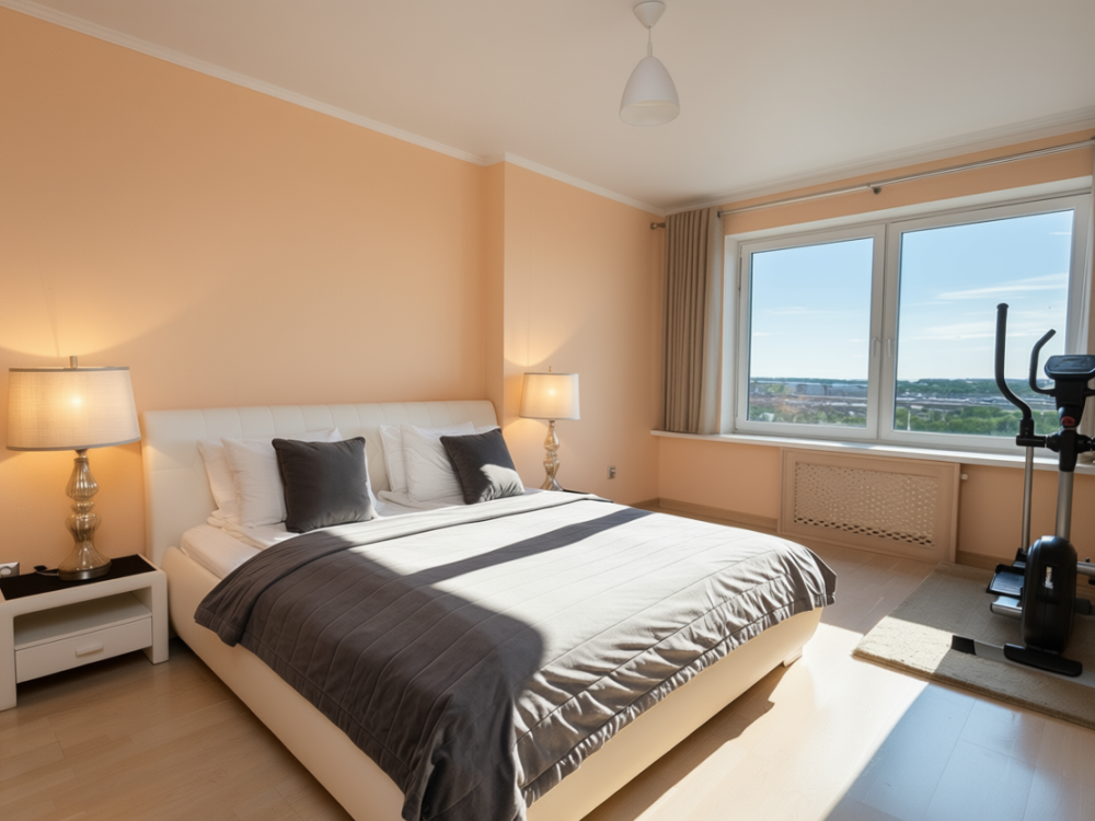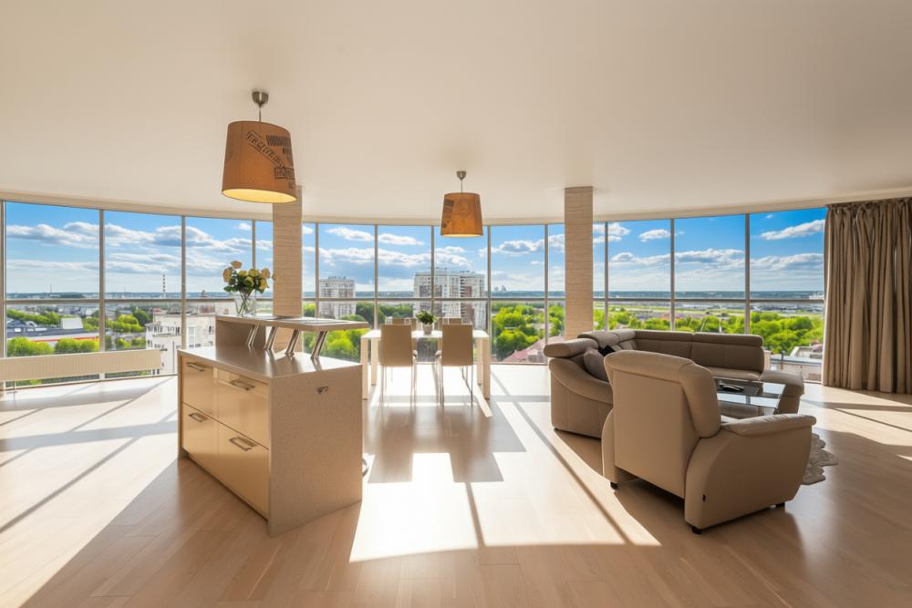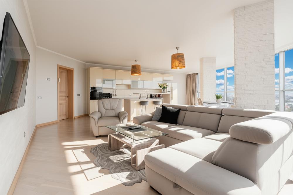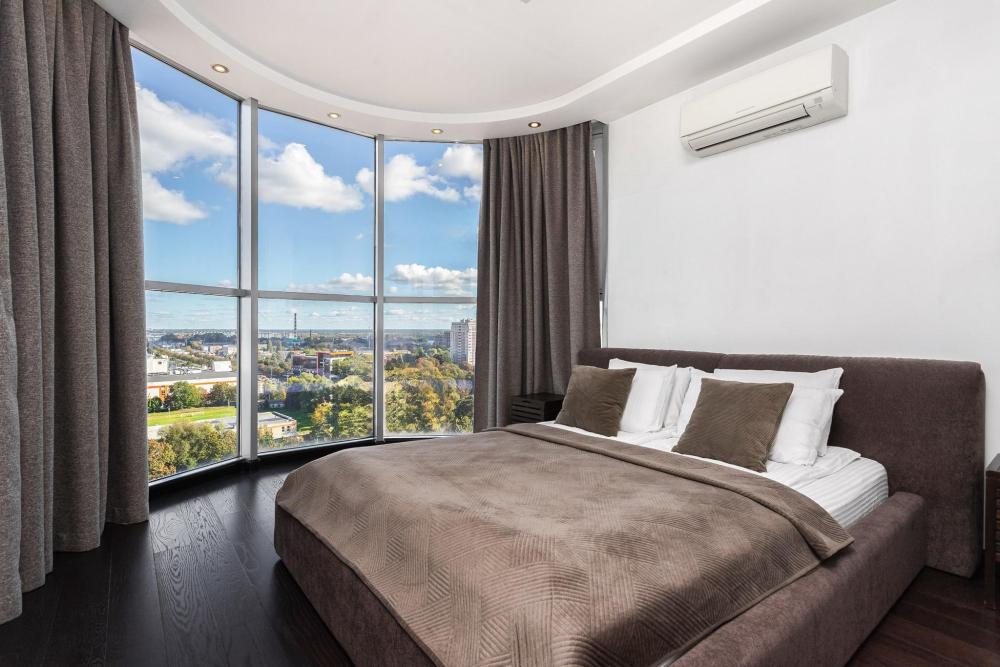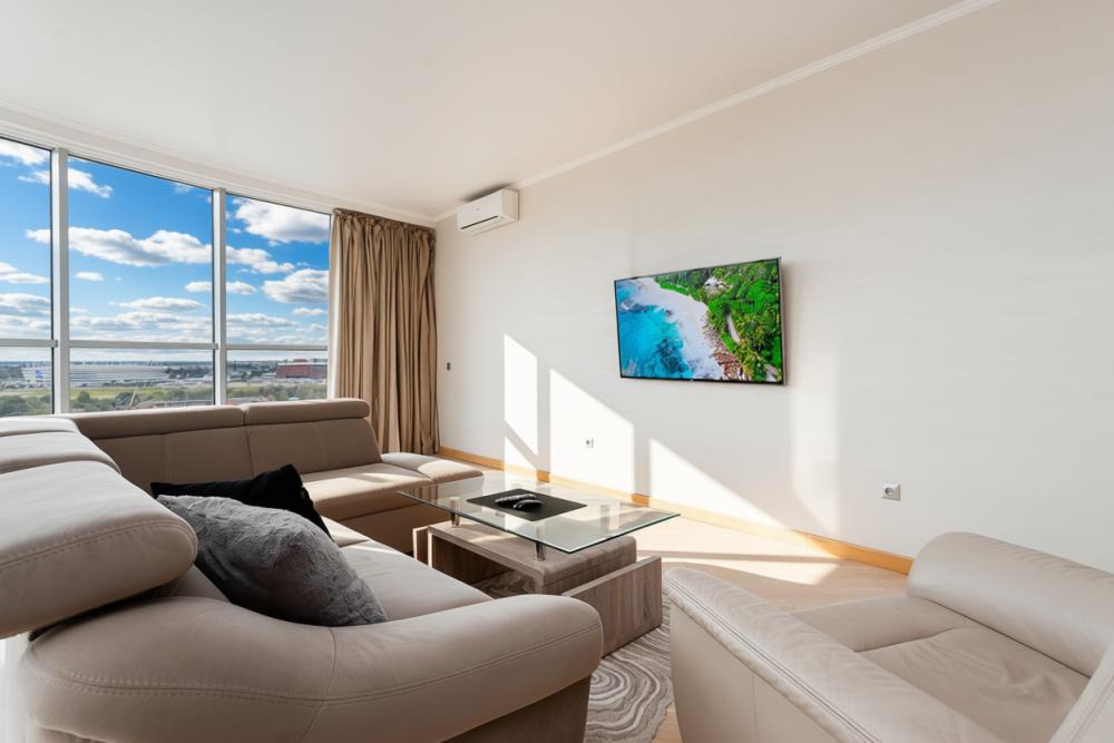 Апартаменты оснащены кондиционером, 2 двуспальных кровати расположены в разных комнатах. Украшением квартиры являются великолепные кровати, стол, ковер немецкой фабрики KARE, светильники и торшер голландской фабрики Eichholtz. Благодаря перепланировке обеденная зона обладает прекрасным полу панорамным видом на город. В квартире имеются: фен, утюг, гладильная доска, пылесос, полотенца (одно большое, одно среднее на каждого проживающего), шампуни, гель для душа, жидкое мыло, постельное белье, чай, сладкий презент, кухонное полотенце, моющие средства для посуды, средства индивидуальной гигиены, столовые приборы, посуда, электрический чайник, микроволновка, кабельное ТВ, высокоскоростной Wi-fi, стиральная машина, тапочки, холодильник.
