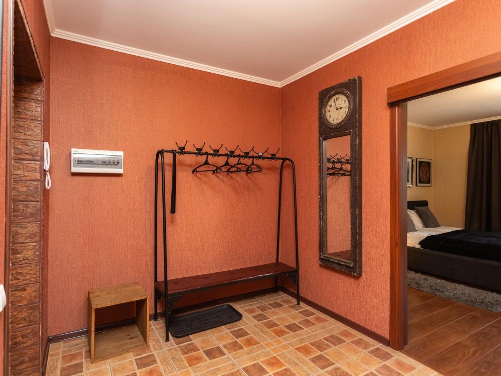 Апартаменты сложно описать словами и передать фотографиями, их нужно видеть. В живую она намного интереснее. Самое главное это шикарная перепланировка, когда заходишь в квартиру сразу попадаешь в единое пространство 45 м2 с полупанорамным остеклением. В квартире 2 двуспальных кровати со спальным местом 180х200, что немаловажно они расположены в разных комнатах. Украшением данной квартиры является 30 летний сумах ручной работы. В квартире имеются: фен, утюг, гладильная доска, пылесос, полотенца (одно большое, одно среднее на каждого проживающего), шампуни, гель для душа, жидкое мыло, постельное белье, чай, сладкий презент, кухонное полотенце, моющие средства для посуды, средства индивидуальной гигиены, столовые приборы, посуда, электрический чайник, микроволновка, кабельное ТВ, высокоскоростной Wi-fi, стиральная машина, тапочки, холодильник.