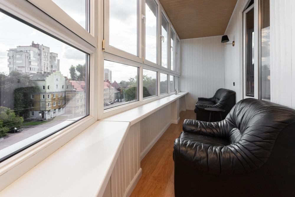 Апартаменты с панорамно остекленным эркером расположены на 11 этаже. На балконе предусмотрена удобная зона для отдыха. Кресла из английского текстиля не только красивы, но и удобны. Квартира идеально подходит для 3, так как для всех проживающих спальное место предусмотрено на кровати. В данных апартаментах 2 удобных кровати со спальными местами 180х200 и 90х200. Что немаловажно кровати расположены в разных помещениях: в спальне и в отапливаемом эркере. В квартире имеются: фен, утюг, гладильная доска, пылесос, полотенца (одно большое, одно среднее на каждого проживающего), шампуни, гель для душа, жидкое мыло, постельное белье, чай, сладкий презент, кухонное полотенце, моющие средства для посуды, средства индивидуальной гигиены, столовые приборы, посуда, электрический чайник, микроволновка, кабельное ТВ, высокоскоростной Wi-fi, стиральная машина, тапочки, холодильник.