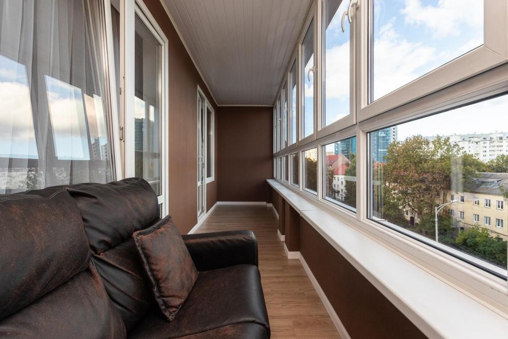 Однокомнатные апартаменты с панорамно остекленным эркером расположены на 11 этаже. На балконе предусмотрена удобная зона для отдыха, кресла из английского текстиля не только красивы, но и удобны. Квартира идеально подходит для 3 человек, т.к. для всех гостей спальное место предусмотрено на кровати. В данных апартаментах 2 удобные кровати со спальными местами 180х200 и 90х200. Кровати расположены в разных помещениях: в спальне и в отапливаемом эркере.