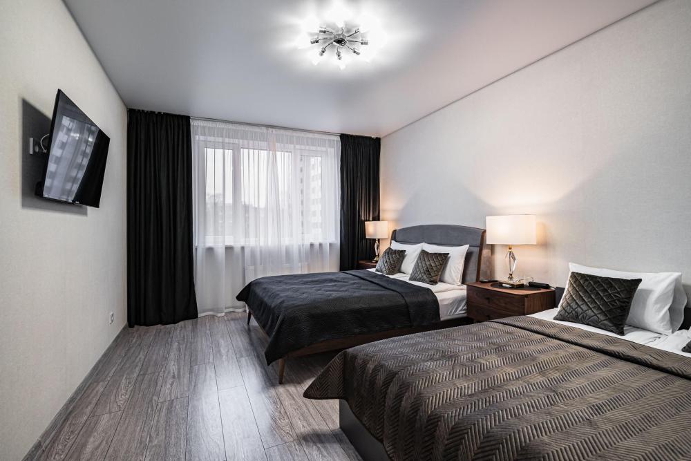 Апартаменты укомплектованы мебелью и предметами интерьера от европейских производителей, в том числе прикроватными лампами, зеркалом, столиком от Eichholtz. Стильное кресло от шведской фабрики SITS с откидывающейся спинкой - идеально для вечернего отдыха с планшетом или телефоном. Две двуспальные кровати с удобными матрасами сделают отдых комфортным и незабываемым. В квартире имеются: фен, утюг, гладильная доска, пылесос, полотенца (одно большое, одно среднее на каждого проживающего), шампуни, гель для душа, жидкое мыло, постельное белье, чай, сладкий презент, кухонное полотенце, моющие средства для посуды, средства индивидуальной гигиены, столовые приборы, посуда, электрический чайник, микроволновка, кабельное ТВ, высокоскоростной Wi-fi, стиральная машина, тапочки, холодильник.