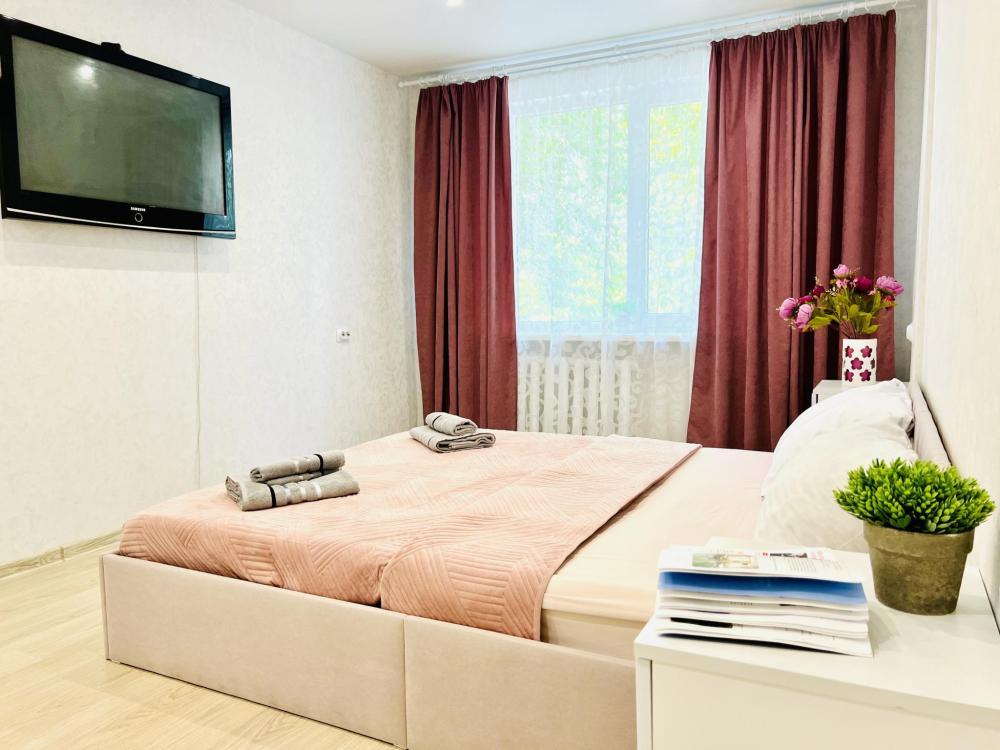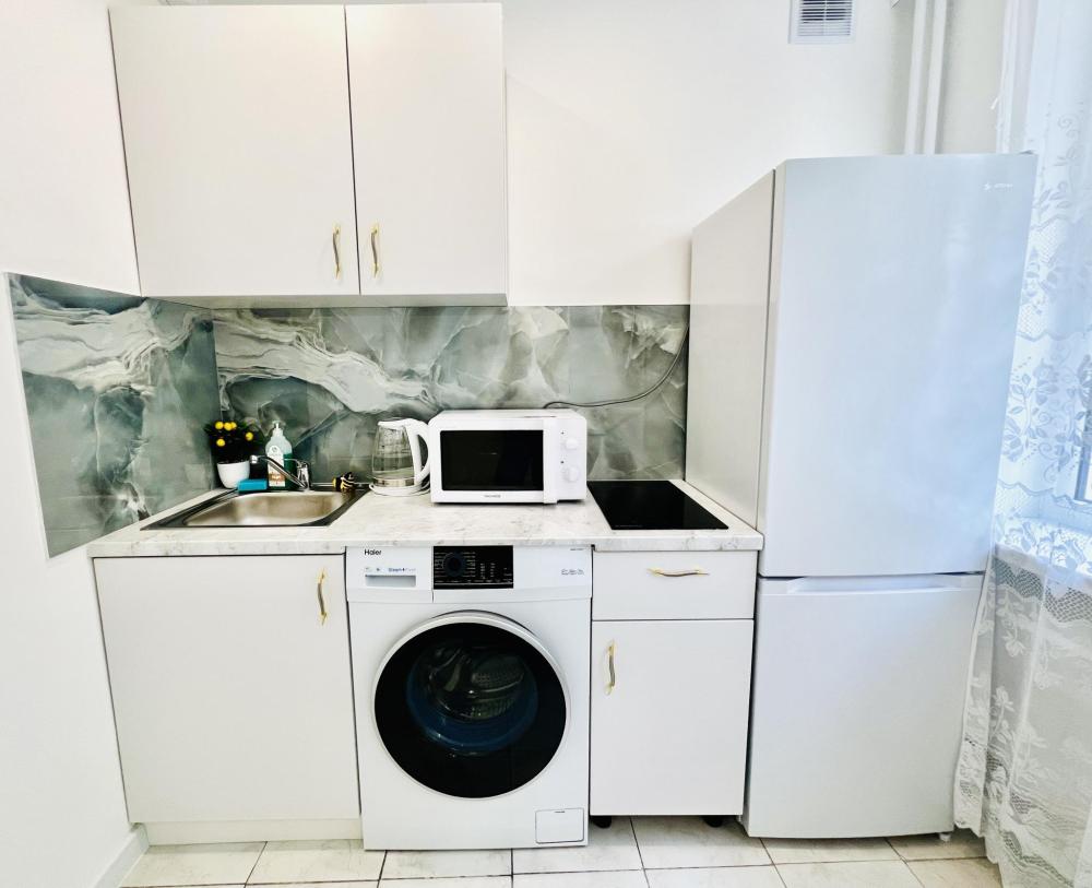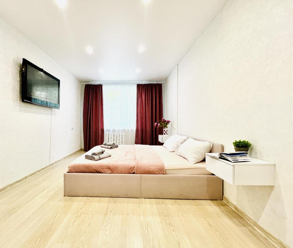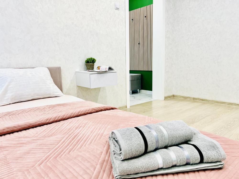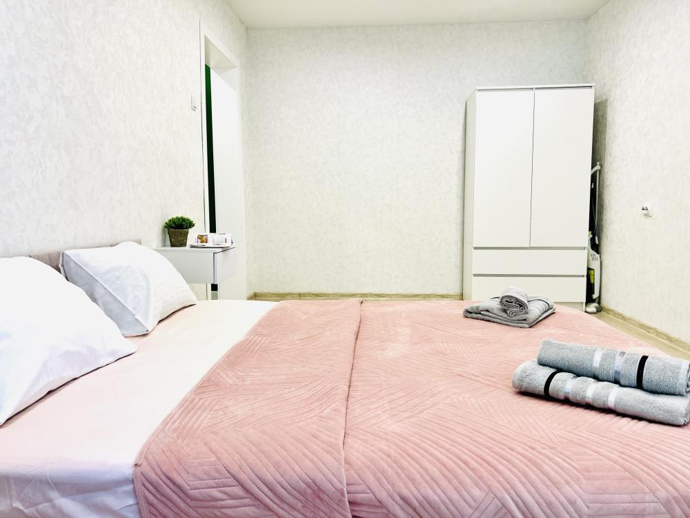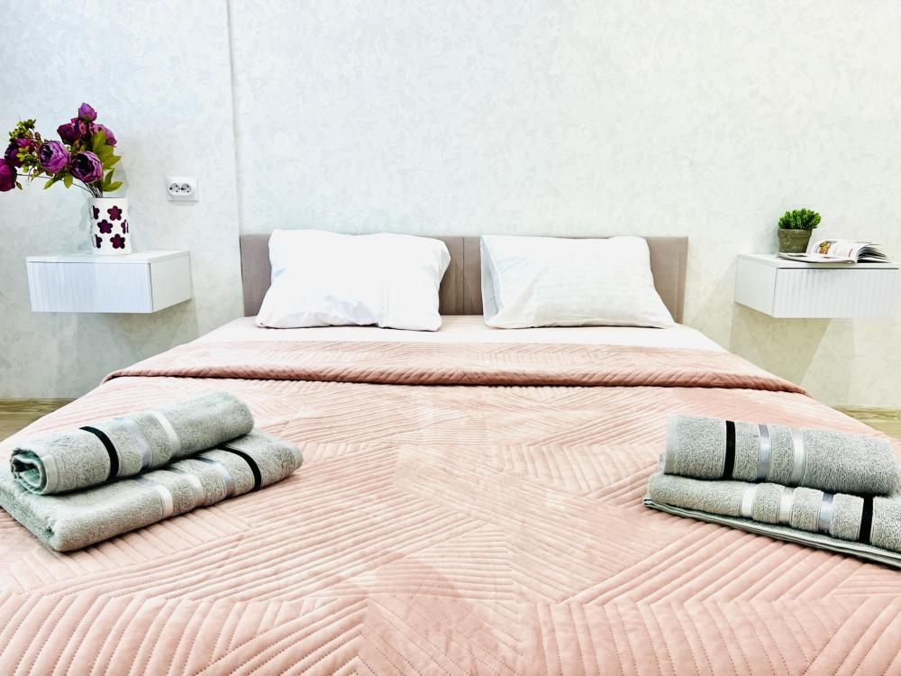 Уютные апартаменты для 2 гостей. Спальные места: двуспальная кровать. В квартире есть все необходимое для проживания: постельное белье и полотенца, посуда, средства гигиены, интернет и ТВ, а также микроволновая печь, чайник, плита и холодильник.