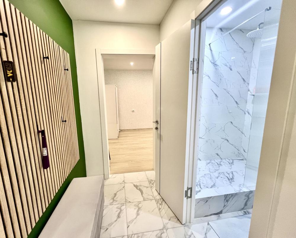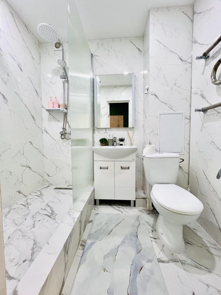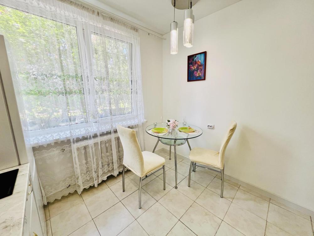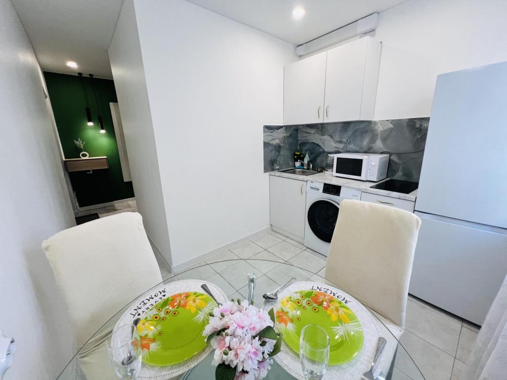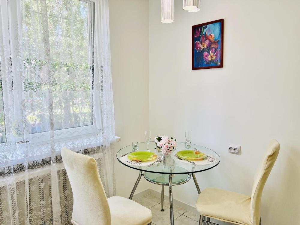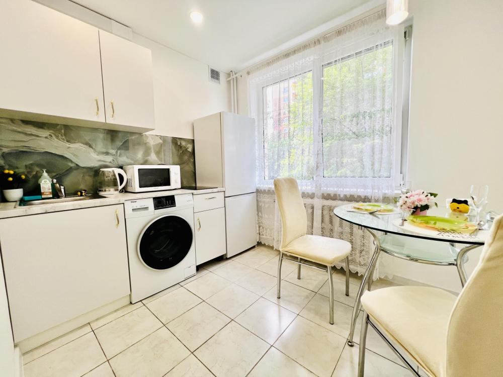 Уютные апартаменты для 2 гостей. Спальные места: двуспальная кровать. В квартире есть все необходимое для проживания: постельное белье и полотенца, посуда, средства гигиены, интернет и ТВ, а также микроволновая печь, чайник, плита и холодильник.