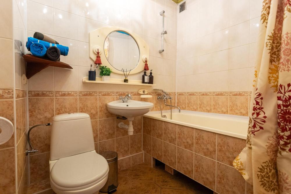 В апартаментах есть все необходимое для проживания: раскладной диван 160х200, ролотенца— белоснежные, хрустящие, свежие. Интерьер — стильный, изящный. Каждая деталь декора подобрана с любовью, чтобы подарить вам атмосферу гармонии и уюта. Полноценная кухня с посудой и необходимой техникой. Телевизор с доступом к популярным стриминговым сервисам — идеально для вечерних просмотров фильмов и сериалов. Высокоскоростной Wi-Fi — для работы, учебы или общения с близкими. Гигиенические принадлежности и фен