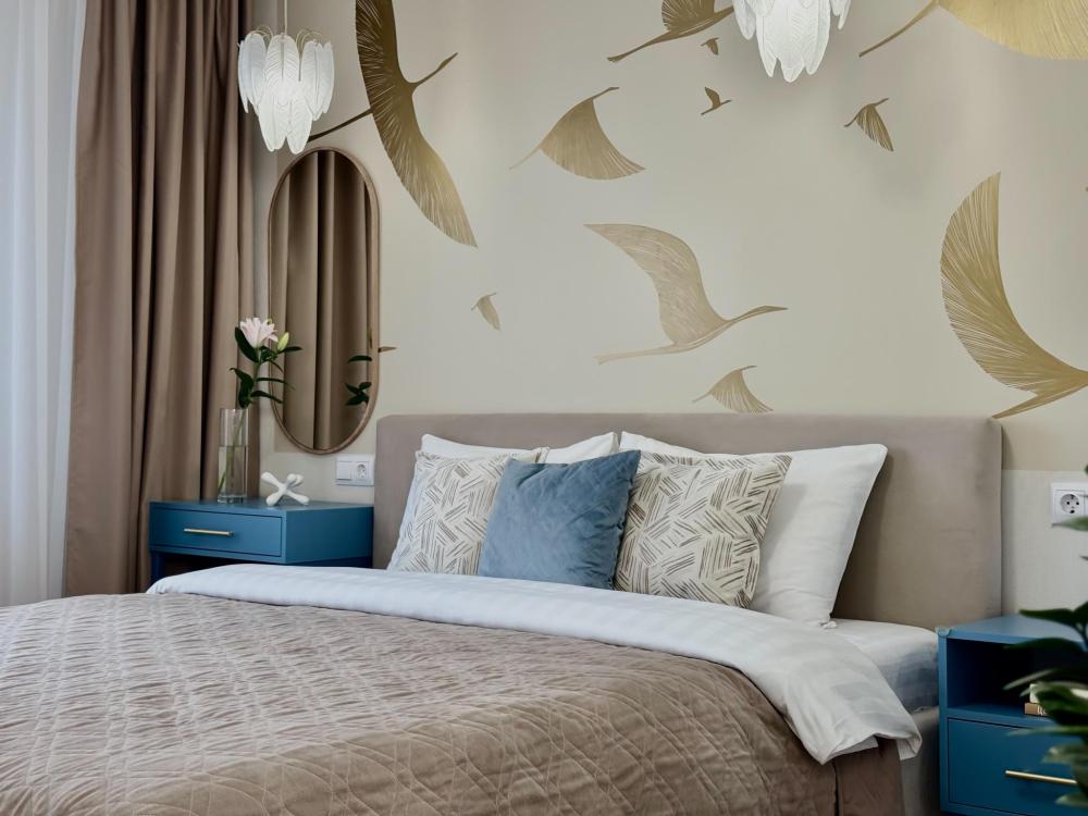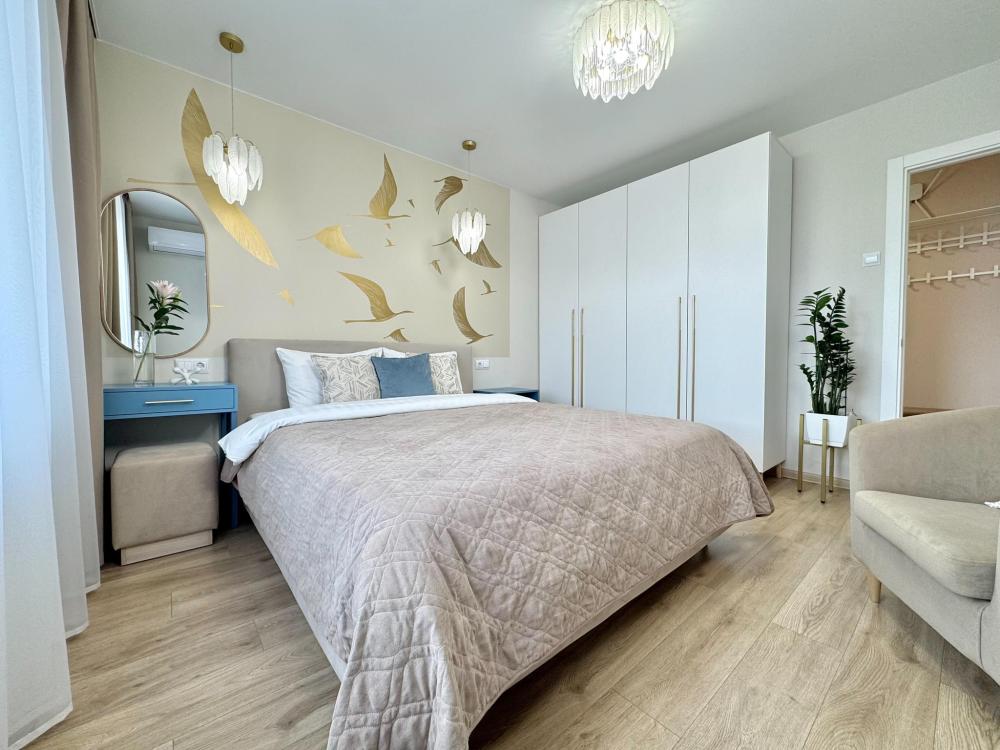 Двухкомнатная квартира с изолированными спальнями для 6 человек. Две комфортных двуспальных кровати 160 × 200 см и раскладной диван 160 × 200 см. Есть солнечная лоджия с хорошим видом с 7 этажа. Wi-Fi и техника (кондиционеры, телевизоры со Smart TV, стиральная машина, холодильник, плита, микроволновая печь, электрочайник, фен, утюг); Посуда и кухонные принадлежности для приготовления и приема пищи;