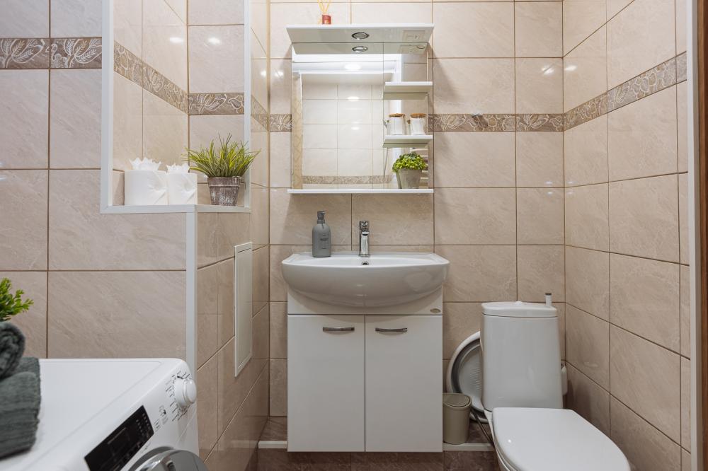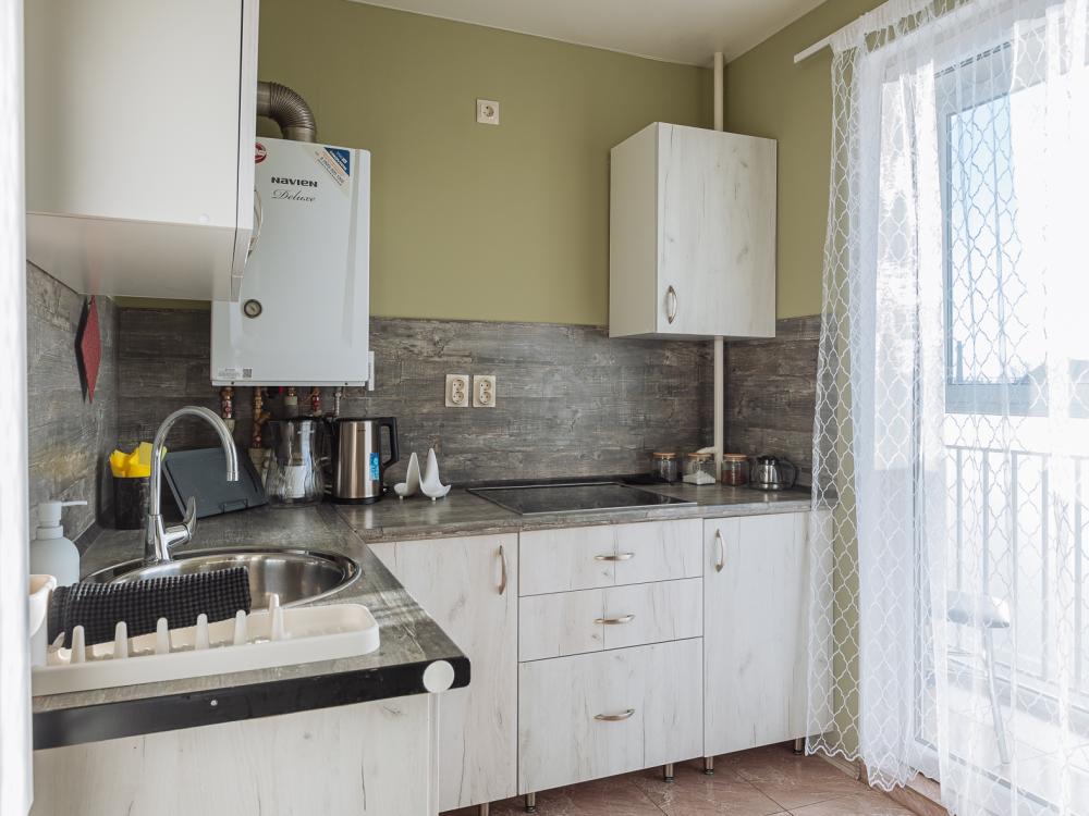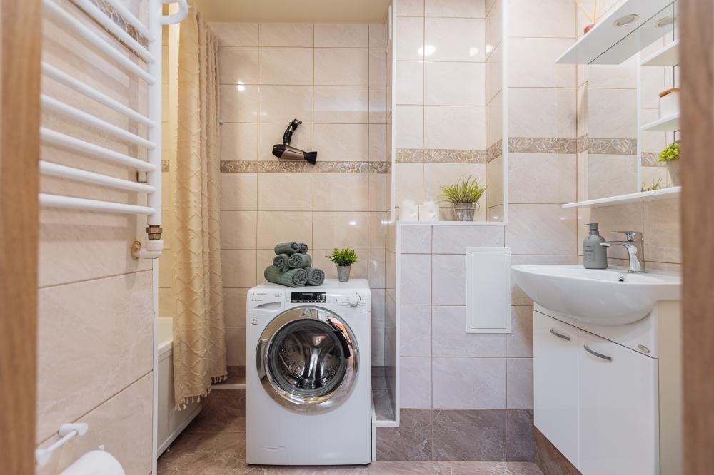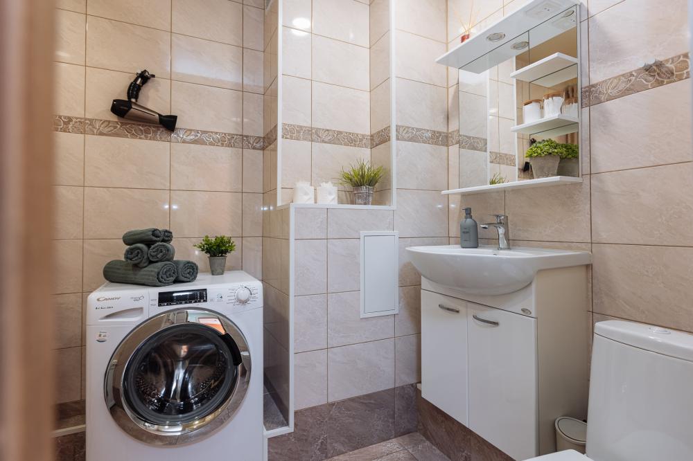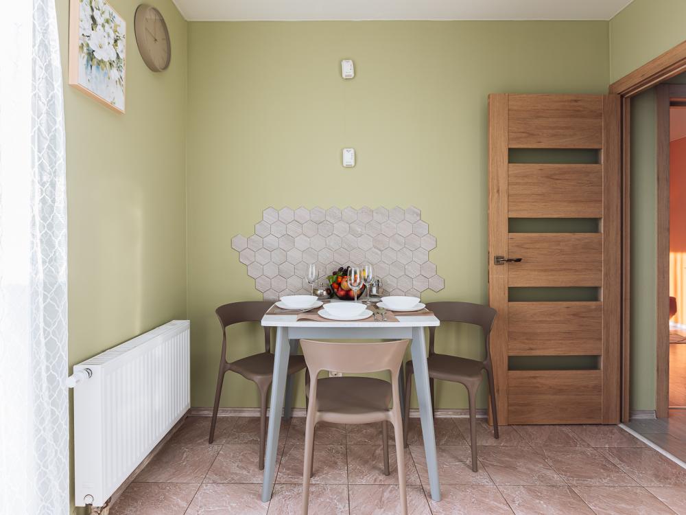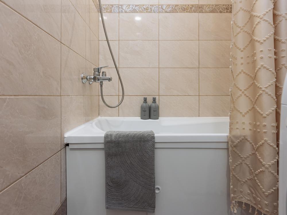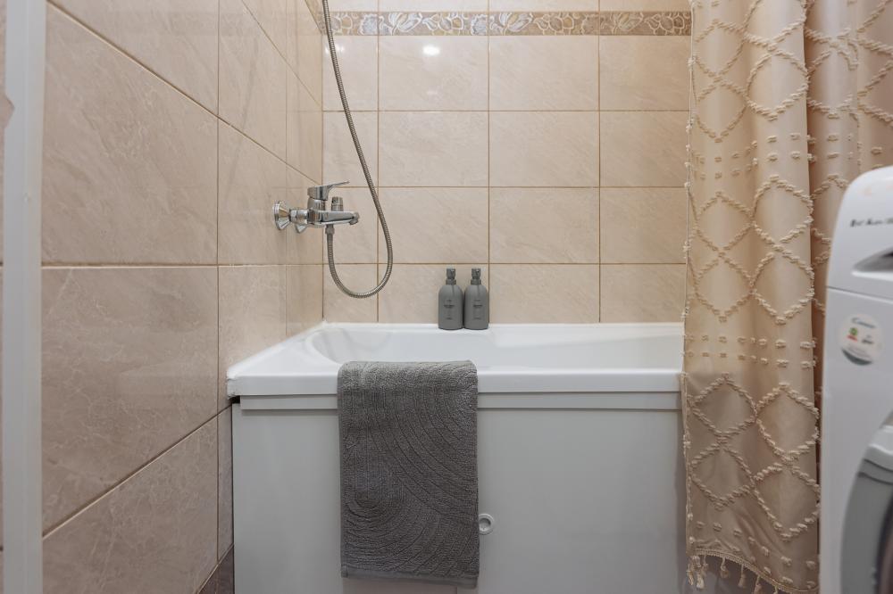 В апартаментах возможно размещение 4 человек, спальные места: двуспальная кровать, раскладной диван. На кухне необходимая посуда и техника: холодильник, плита, микроволновая печь, чайник. К услугам гостей также WiFi, телевизор, стиральная машина, постельное бельё, полотенца, средства гигиены.