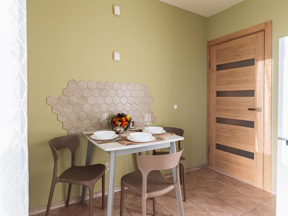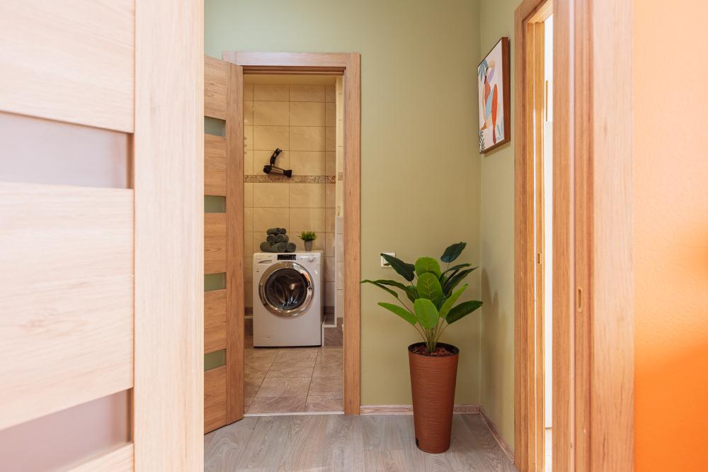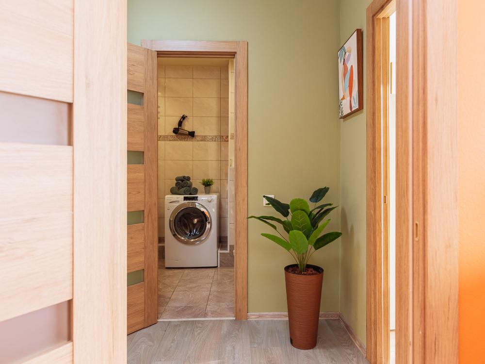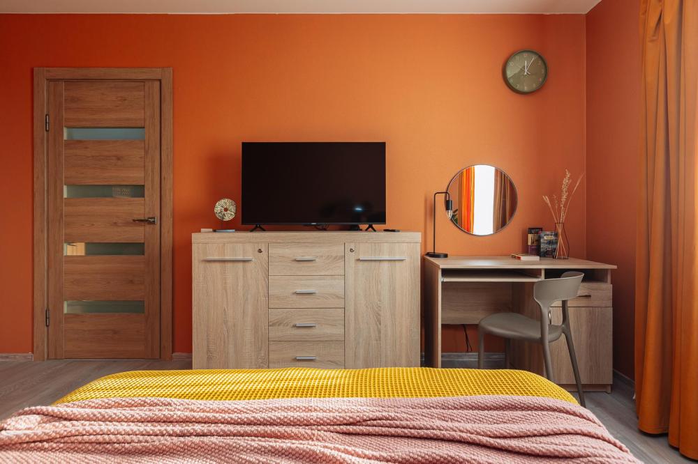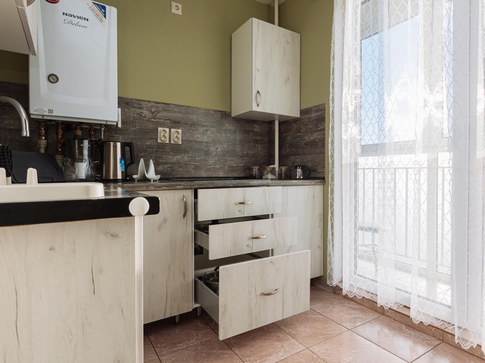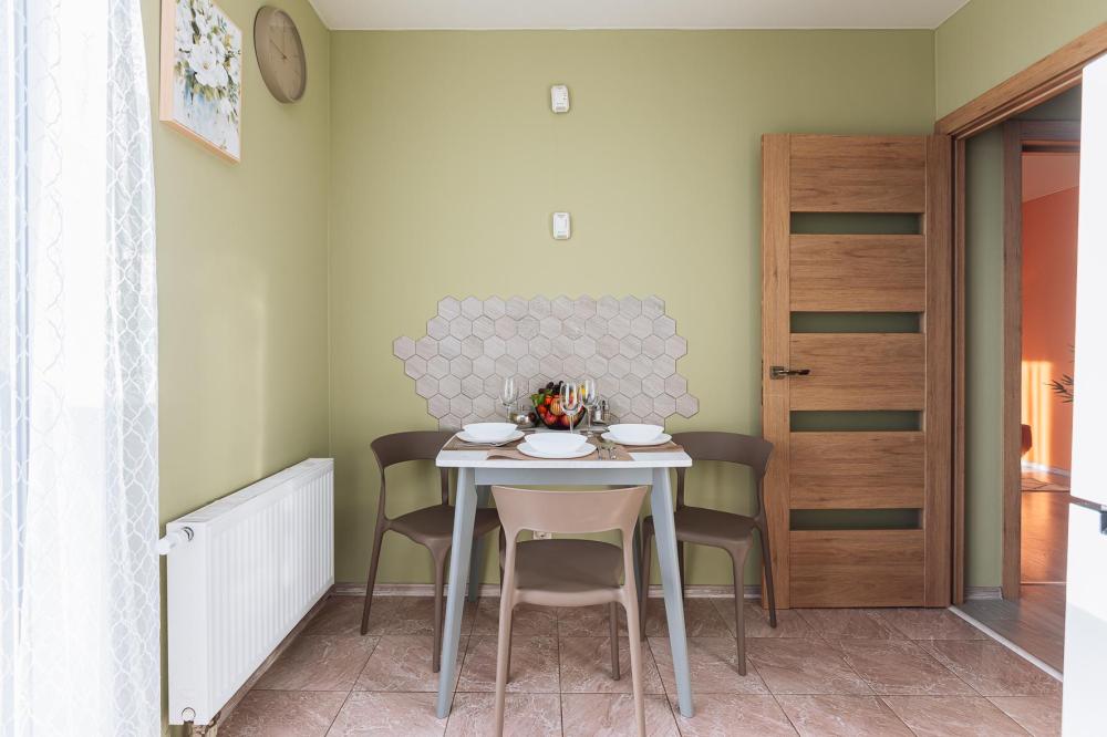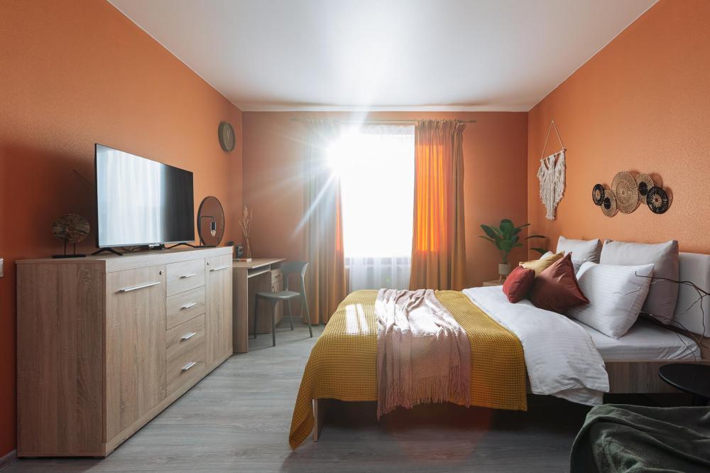 В апартаментах возможно размещение 4 человек, спальные места: двуспальная кровать, раскладной диван. На кухне необходимая посуда и техника: холодильник, плита, микроволновая печь, чайник. К услугам гостей также WiFi, телевизор, стиральная машина, постельное бельё, полотенца, средства гигиены.