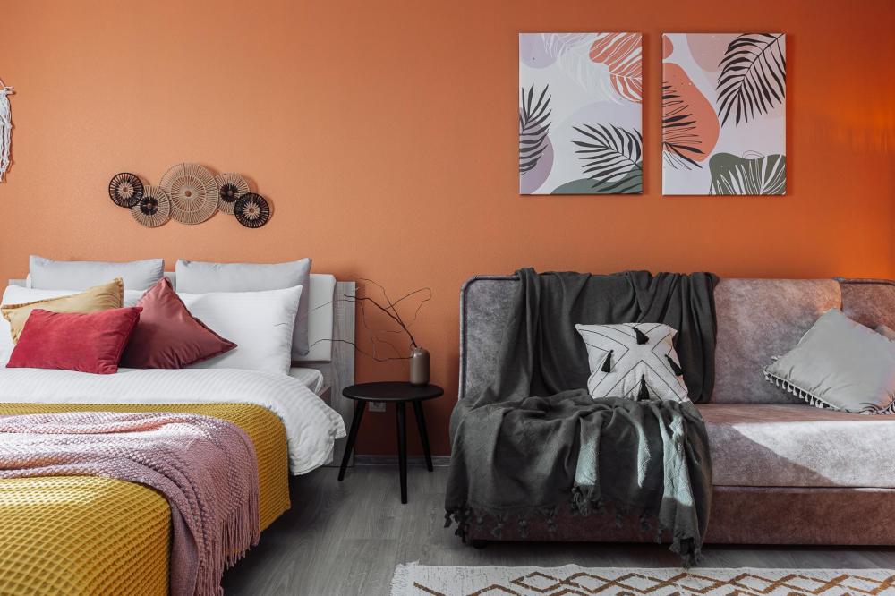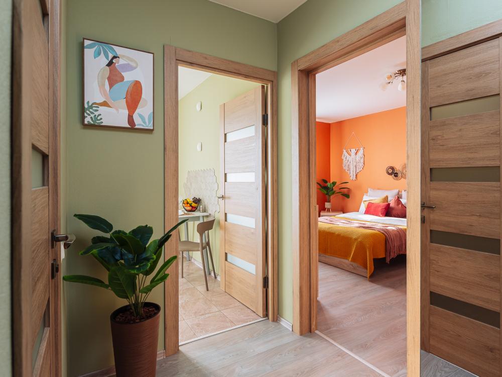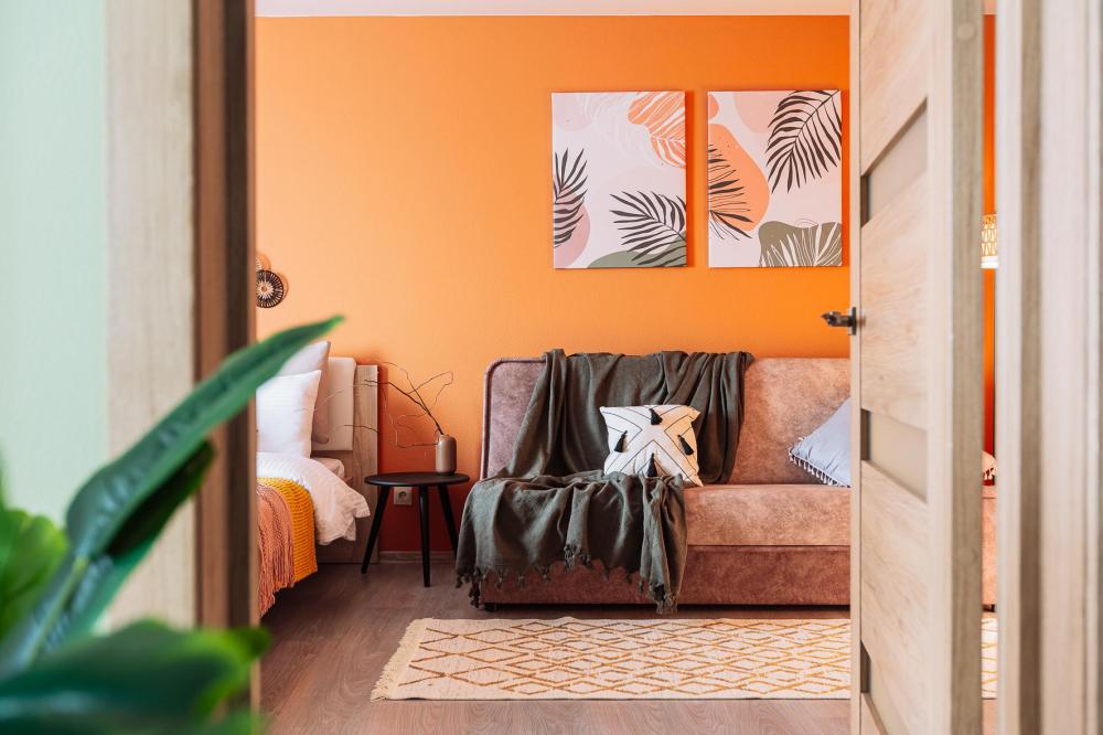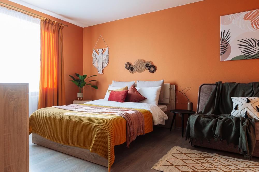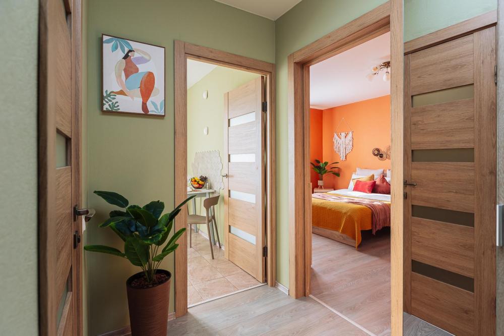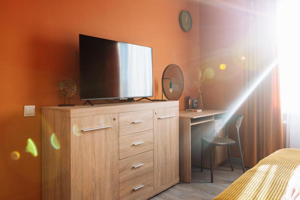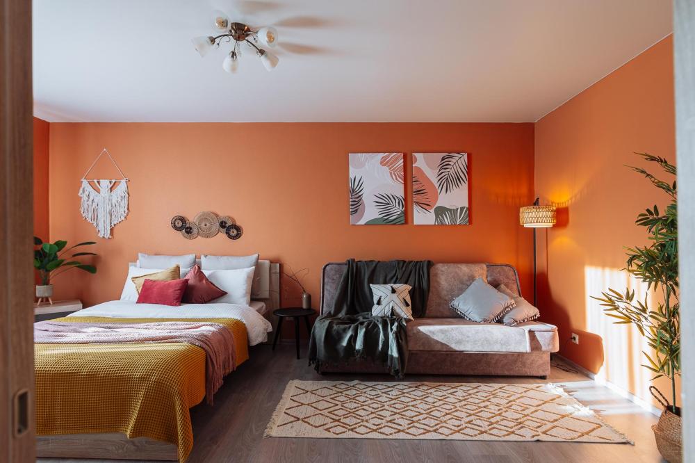 В апартаментах возможно размещение 4 человек, спальные места: двуспальная кровать, раскладной диван. На кухне необходимая посуда и техника: холодильник, плита, микроволновая печь, чайник. К услугам гостей также WiFi, телевизор, стиральная машина, постельное бельё, полотенца, средства гигиены.