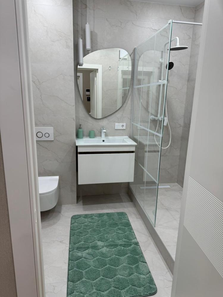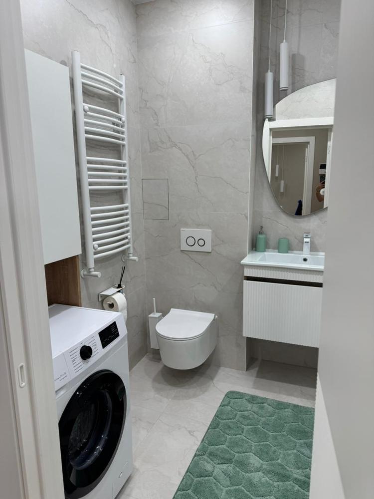 Круглосуточное заселение Бесплатная парковка В пешей доступности: станция электрички до побережья и в центр Калиннграда (2 минуты пешком); Green Market- лучший рынок продуктов, в том числе европейских (1 минута пешком); ТЦ "Экватор" - одежда, кинотеатр, детский центр (3 минуты пешком); Фитнес центр (1 минута пешком); Аэропорт Храброво (20 минут на автомобиле). Рядом расположены кафе/рестораны, супермаркет. В квартире для удобного проживания имеется современная мебель и техника: Одна большая двуспальная кровать (160*200см), двухспальный диван длиной 2м, бытовая техника, скоростной WI-FI, ТВ, кондиционер, стиральная машина, гладильная доска, утюг, сушка, оборудованная кухня, полный комплект посуды для приготовления и приёма еды, полотенца для лица и тела, шампунь/мыло (на 1 сутки проживания), тапочки. Квартира комфортна для проживания 1-4 человек; После каждого выезда гостей проводим генеральную дезинфекцию жилья; Постельные принадлежности стираются/гладятся прачечной компанией; Фото квартиры полностью соответствуют действительности; Заселение в течение 10 минут (круглосуточно) Расчетные часы: Заезд с 15:00 Выезд до 12:00 По согласованию ранний заезд и поздний выезд. Запрещено: Проводить шумные мероприятия; Небережно относиться к имуществу квартиры; Курение внутри квартиры.