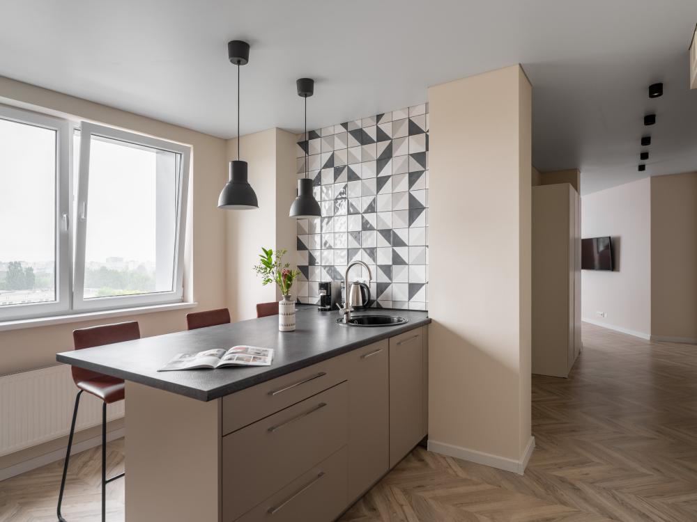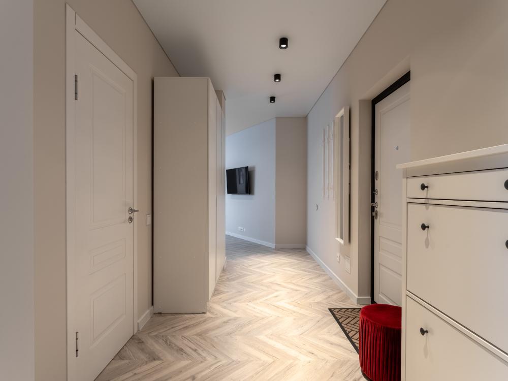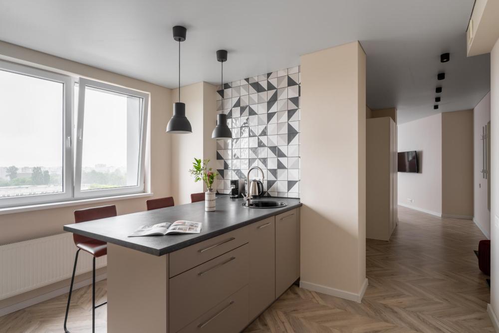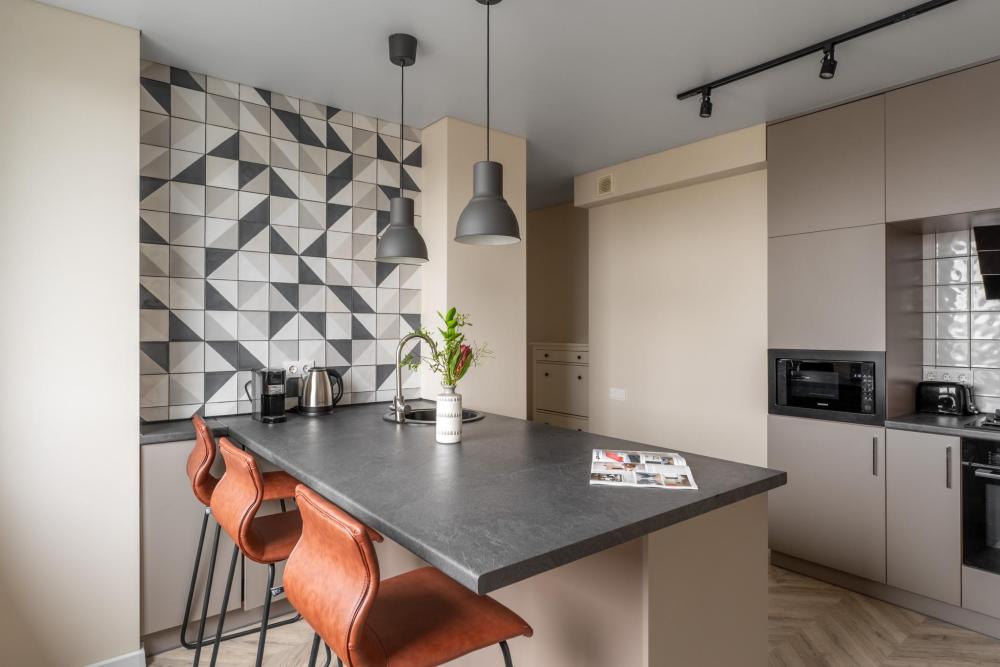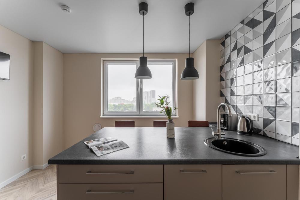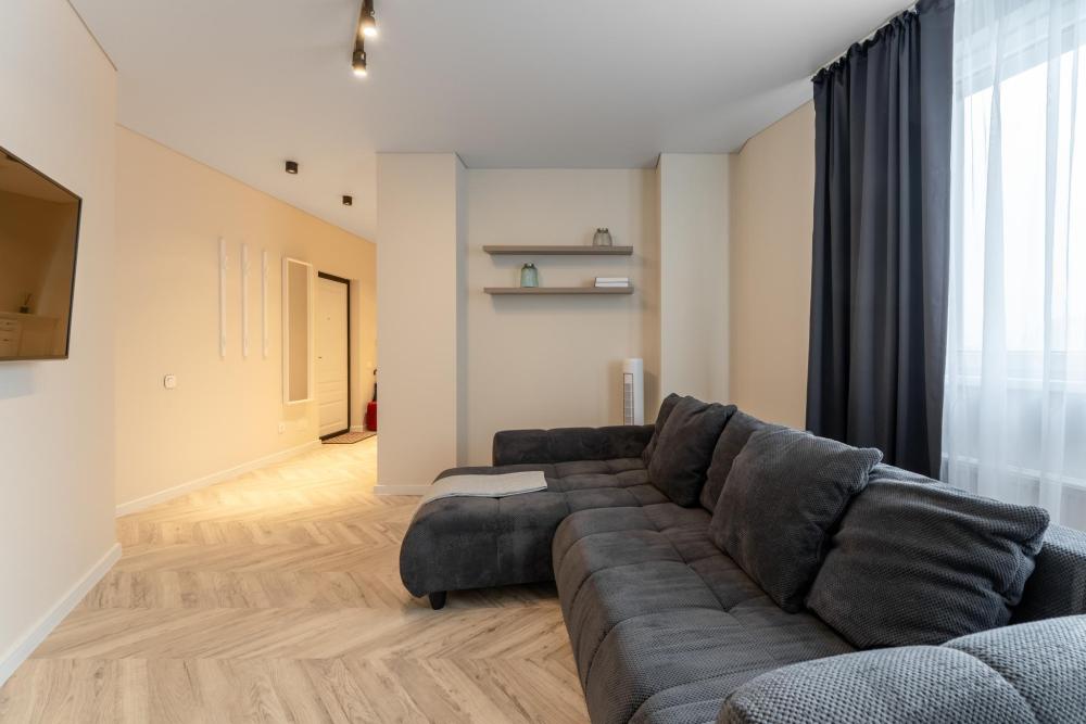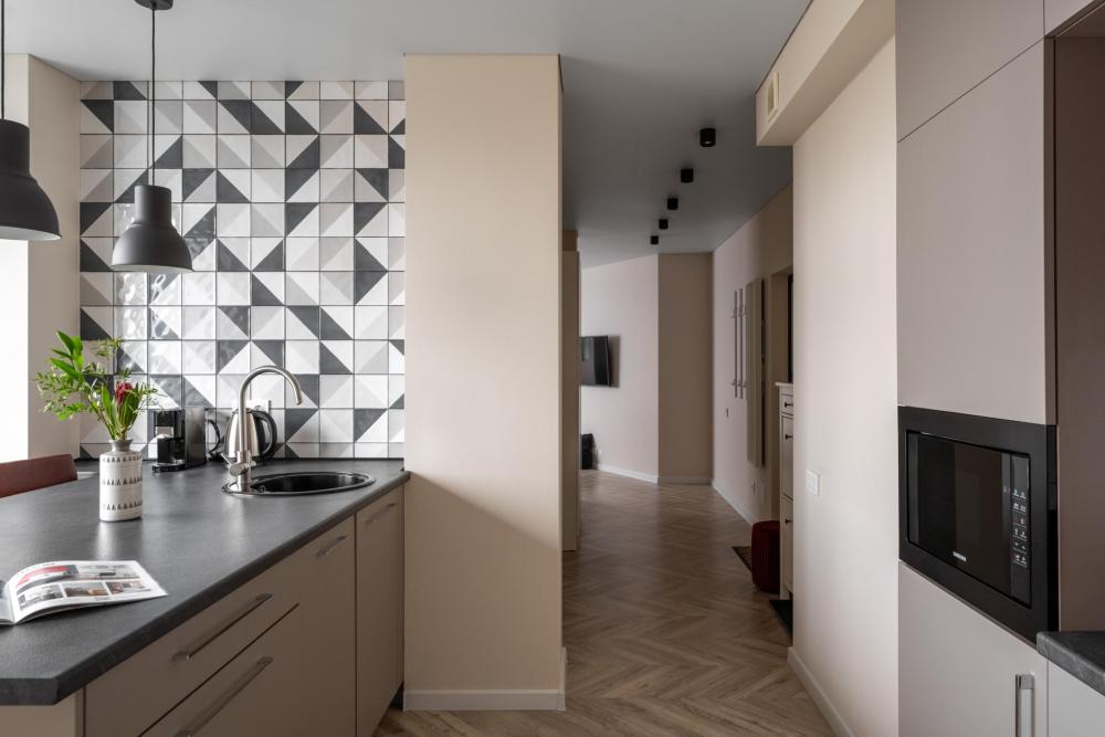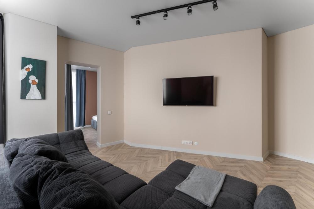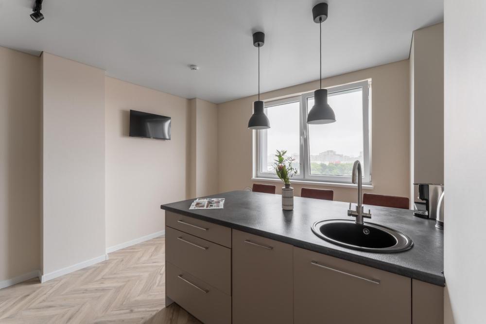 Апартаменты Pavlov "Горизонт" — 49 м², до 3 гостей. Светлая, удобная квартира для комфортного проживания в районе Сельма, Калининград. Подходит для пары, командировки или семьи с ребёнком. В квартире: двуспальная кровать 160×200; раскладной диван 140×200; кухня с газовой плитой, холодильником, микроволновкой, кофемашиной, посудомоечной машиной, фильтром для воды; душевая, стиральная машина; телевизор, пылесос.