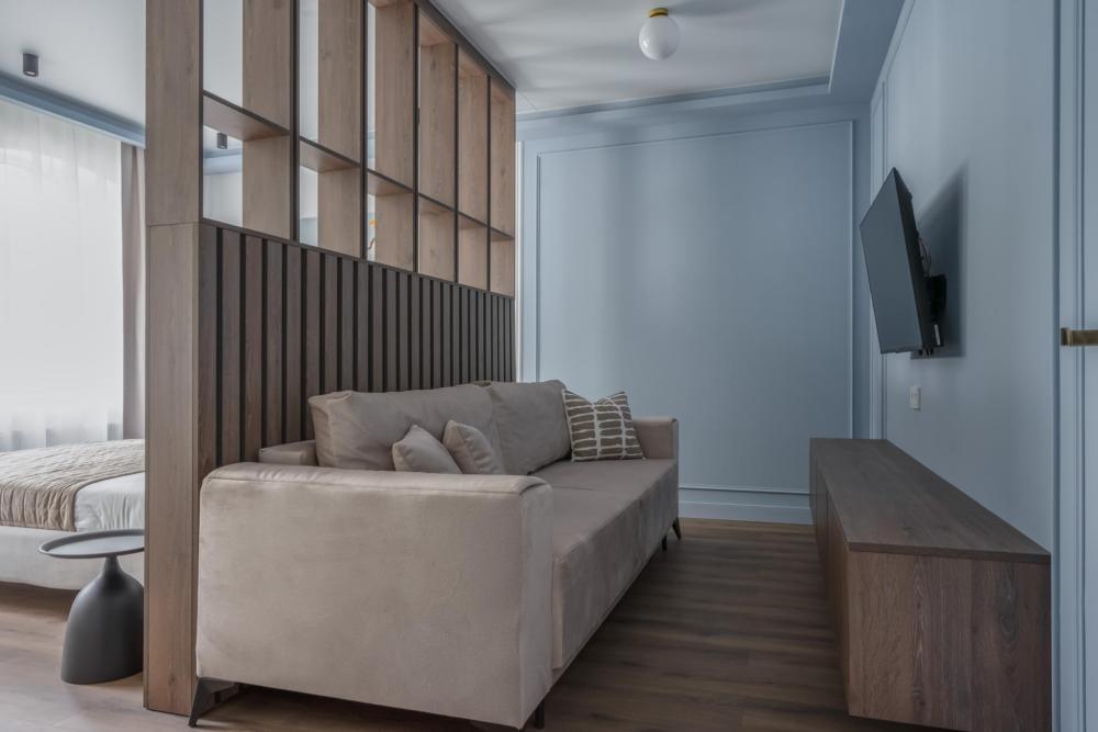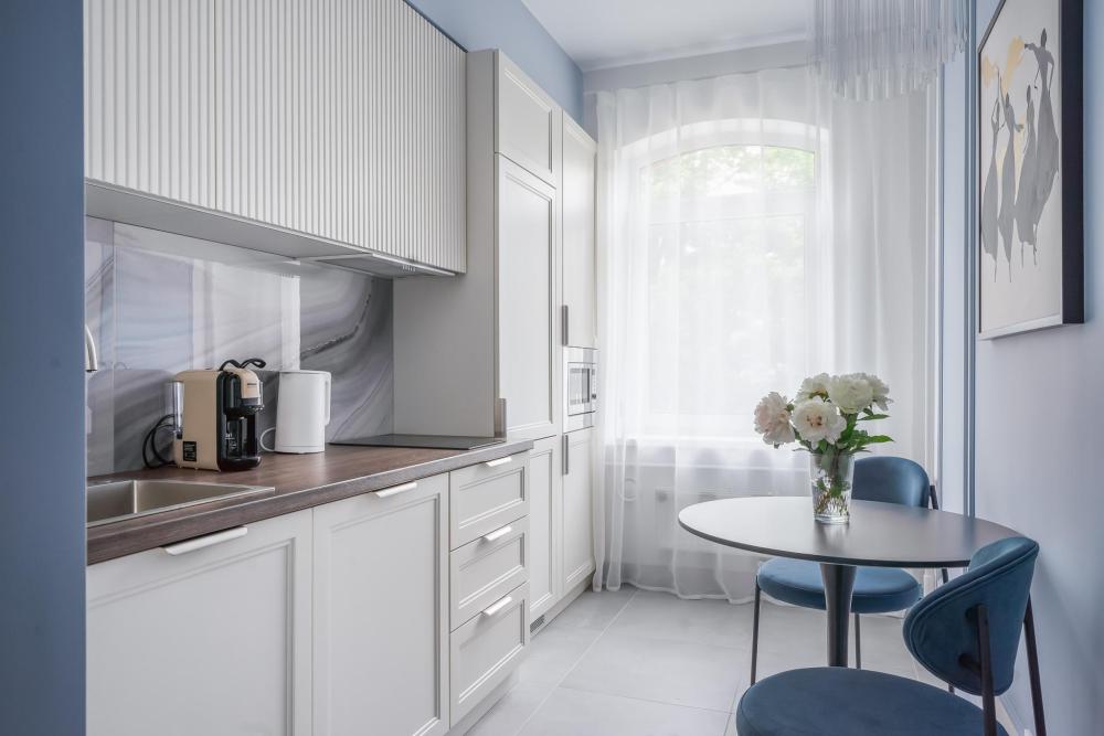 Уютные апартаменты Pavlov "Альтштадт" — однокомнатная квартира для комфортного размещения до 3 человек. Подходит для пары, семьи с ребёнком или небольшой компании. В квартире: двуспальная кровать 160×200; односпальный раскладной диван; кухня с индукционной плитой, микроволновкой, посудой; стиральная машина; душевая кабина; окна выходят на улицу, но в квартире тихо благодаря хорошей шумоизоляции. Интерьер в светлых, спокойных тонах. Есть всё необходимое для комфортного отдыха или длительного проживания.
