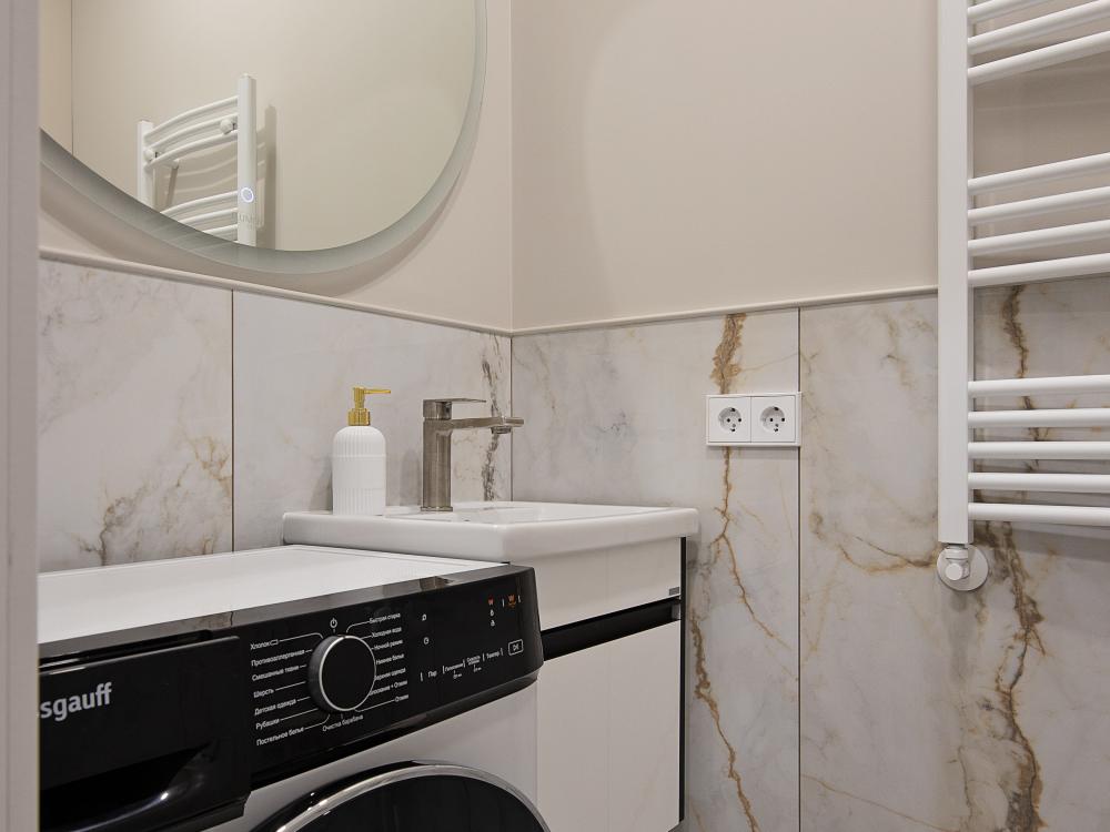 Дизайнерская евродвушка с балконом • 50 м² • до 4 гостей Апартаменты Pavlov «Палаццо» — стильная и просторная квартира с новым дизайнерским ремонтом. Подойдёт для комфортного проживания семьи или компании до 4 человек. В квартире: - спальня с двуспальной кроватью 160×200; - кухня-гостиная с диваном-кроватью 160×200 (еврокнижка); - ванная и два санузла; - кухня с техникой: индукционная плита, посудомойка, микроволновка, холодильник, кофемашина; - стиральная машина; - кондиционер, Wi-Fi, телевизор; - открытый балкон с видом во двор. О комплексе и районе: Апартаменты расположены в жилом комплексе бизнес-класса «Русская Европа». Территория закрытая и благоустроенная: зелёные зоны, фонтан, современные детские площадки, двор без машин. Район тихий и спокойный, при этом до центра Калининграда удобно добираться и на авто, и на общественном транспорте. Pavlov «Палаццо» — это сочетание уюта, современного комфорта и атмосферы отдыха. Бронируйте уже сегодня и почувствуйте Калининград в особенном ритме!