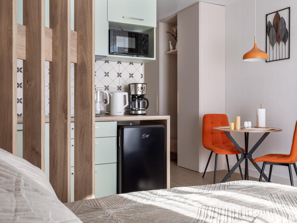 History Apartments – уютная студия на Дадаева 55. В квартире с комфортом могут разместиться два человека. Стоимость указана за одного гостя. Доплата за второго 400р! (Во избежание недоразумений указывайте нужное количество гостей) Финальная уборка – 800 руб. В квартире есть всё для комфорта: ✔ Дизайнерский евроремонт ✔ Стиральная машина, утюг, телевизор, пылесос, посудомоечная машина ✔ Лоджия Оснащенная кухня: * Варочная панель * Электрочайник * Посудомоечная машина, СВЧ-печь * Холодильник * Чай, кофе, сахар – всегда в наличии! Ванная комната: * Полноценная ванна * Совмещенный санузел Отличная локация: * Отличный, тихий двор * Уютная и теплая обстановка в квартире * Кафе и магазины – в шаговой доступности * 10 минут ходьбы до Верхнего озера * 10 минут на авто до центра Калининграда (Площадь Победы) Важно: Заселение – с 15:00 Выезд – до 11:00 Бесконтактный заезд 24/7 (электронная верификация по паспорту + договор) Ранний заезд / поздний выезд – обсуждается отдельно (+ оплата). Дополнительно: * Работаем с юрлицами (готовим документы для отчётности) Пишите! Отвечаем быстро и помогаем с заселением.