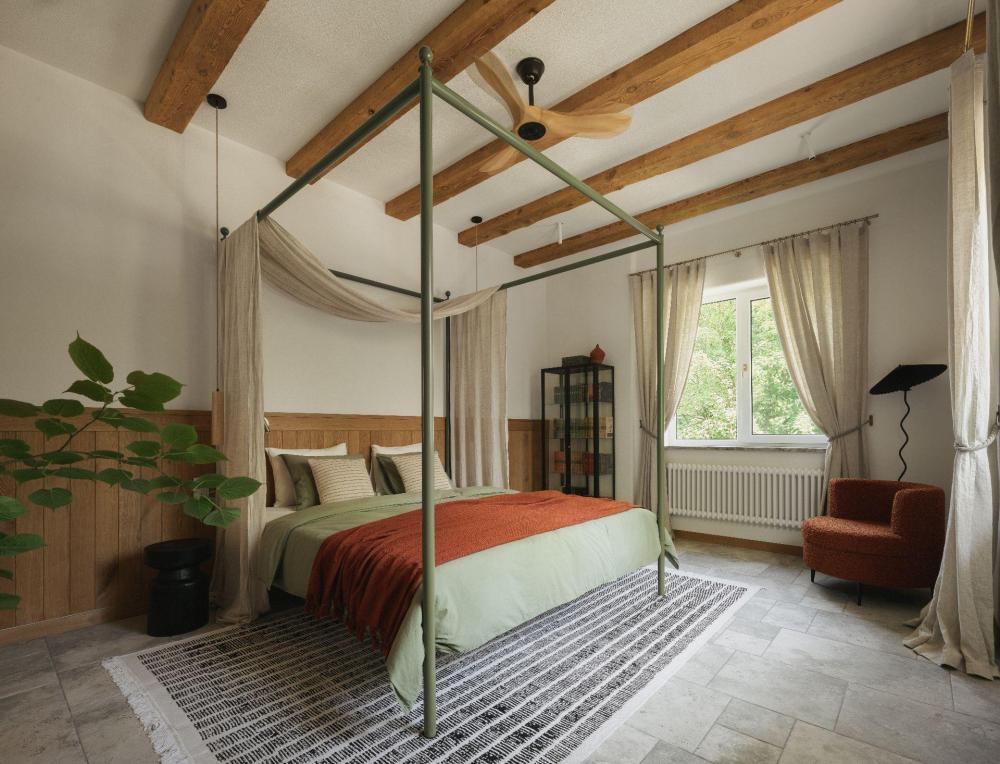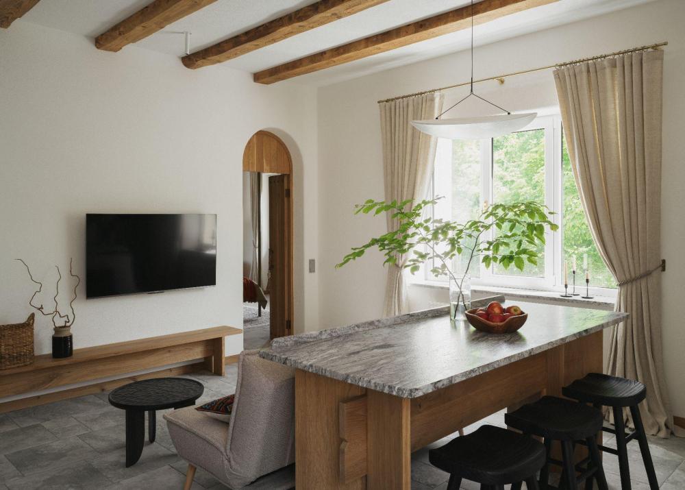 Стильные апартаменты в исторической вилле 1904 года, расположены в районе Амалиенау. Апартаменты расположены в вилле бургомистра Зигфрида Кёрте, построенной в 1904 году. Просторное светлое помещение с высокими потолками оформлено в авторском стиле: натуральные материалы, мебель из локального дуба и спокойные природные оттенки создают атмосферу уюта и гармонии. Гостей ждут очаровательный балкон с видом на парк, большая кровать с балдахином и современная кухня с островом, оснащённая всей необходимой техникой. Коллекция книг и «библиотека чая» дополняют ощущение спокойного, продуманного отдыха. Дом имеет исторический характер и спокойную жилую атмосферу, поэтому просьба соблюдать тишину после 22:00. Подъезд исторического дома аккуратный и ухоженный.